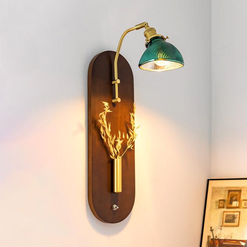مصباح حائط صيني تقليدي قابل للدوران بقاعدة بيضاوية من النحاس والحديد والخشب والزجاج لغرفة النوم