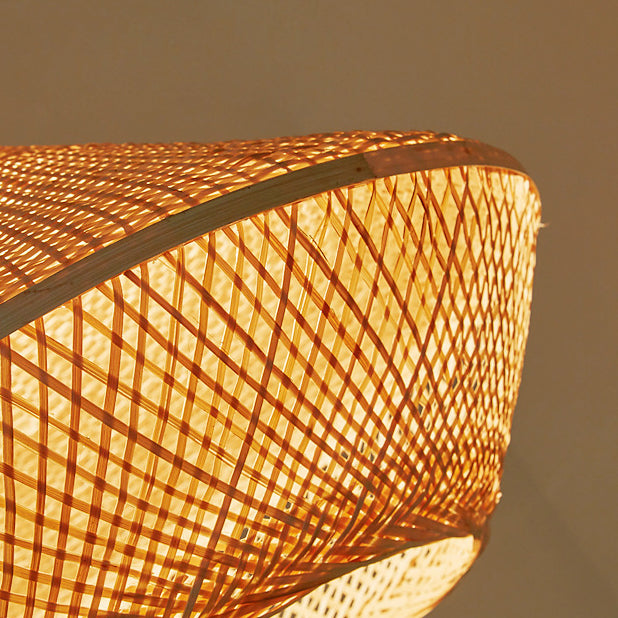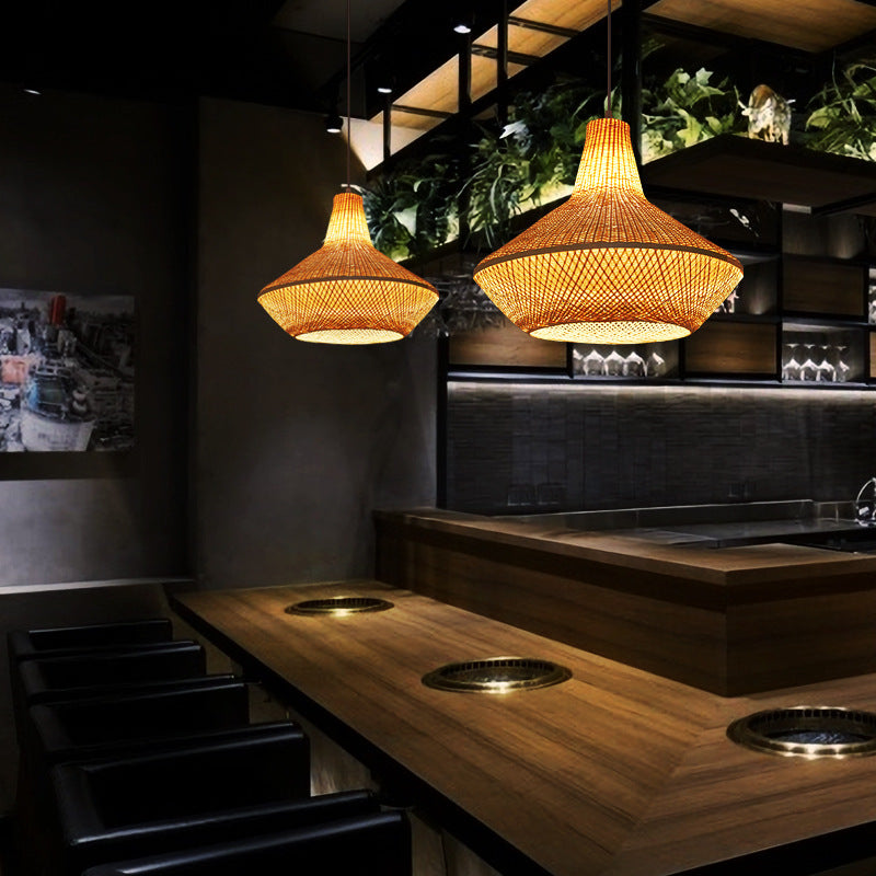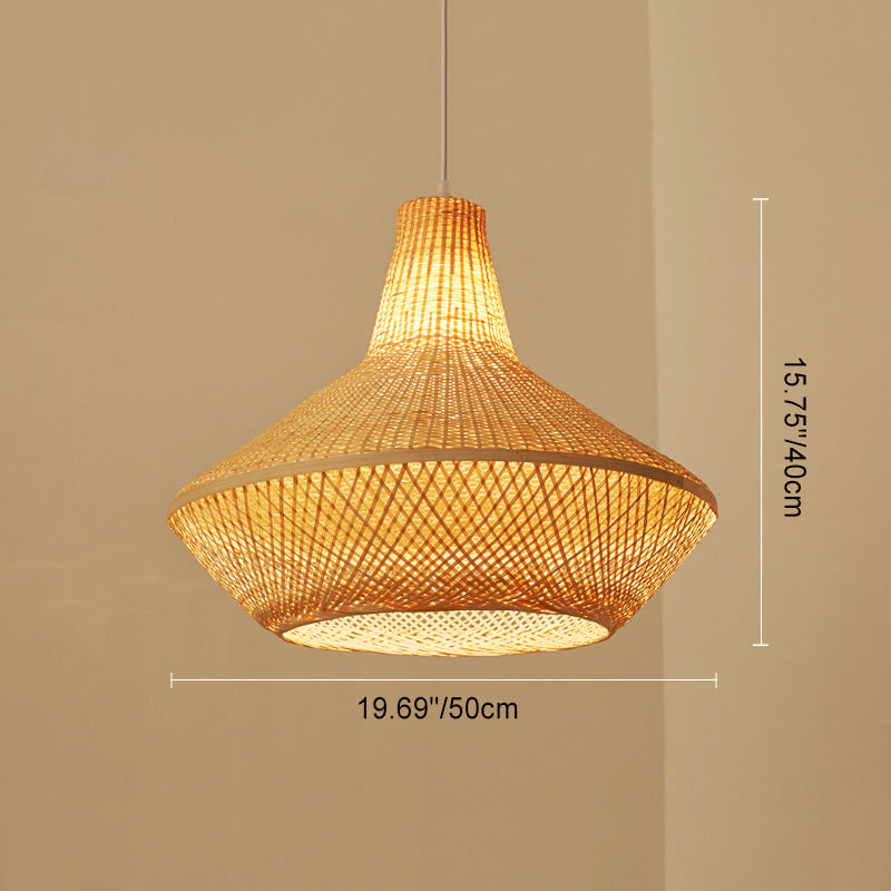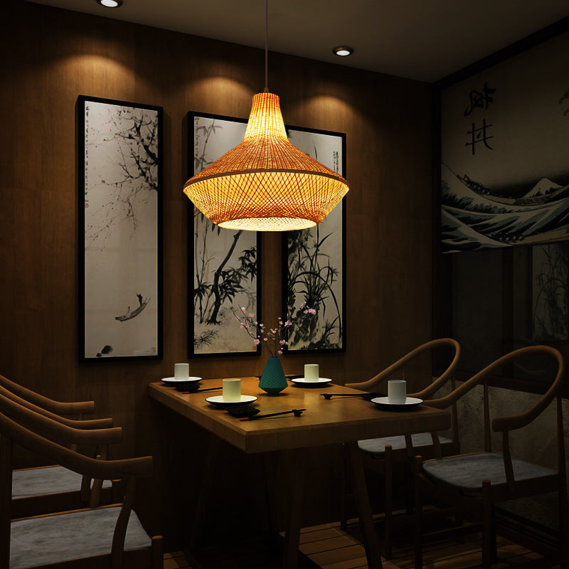 مصباح معلق صيني تقليدي دائري من الخيزران المنسوج، مزود بمصباح واحد، مناسب لغرف الترفيه