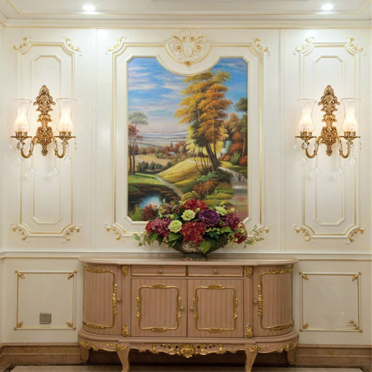 مصباح حائط زجاجي نحاسي أوروبي تقليدي بنصف ضوء لغرفة المعيشة