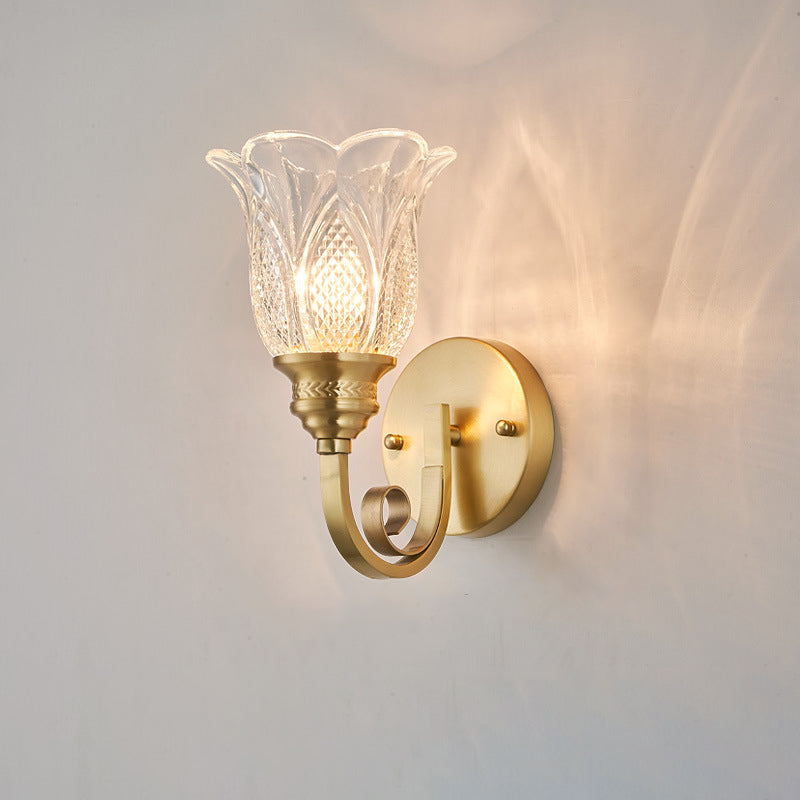 مصباح حائطي تقليدي أوروبي من النحاس والزجاج المنقوش بالزهور، نصف ضوء، للممر