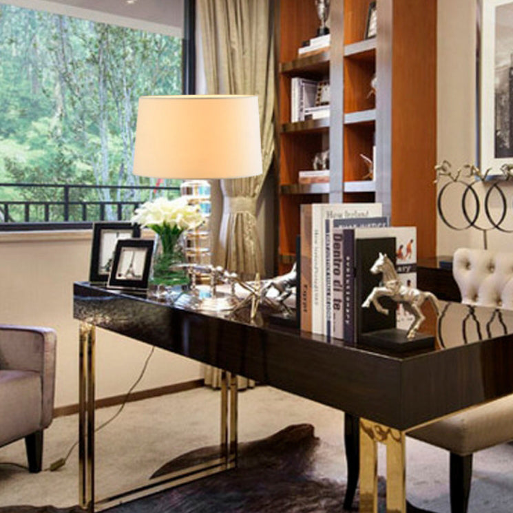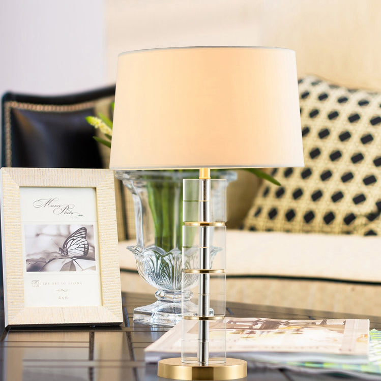 Traditional European Cylinder Crystal Metal Fabric 1-Light Table Lamp For Bedroom