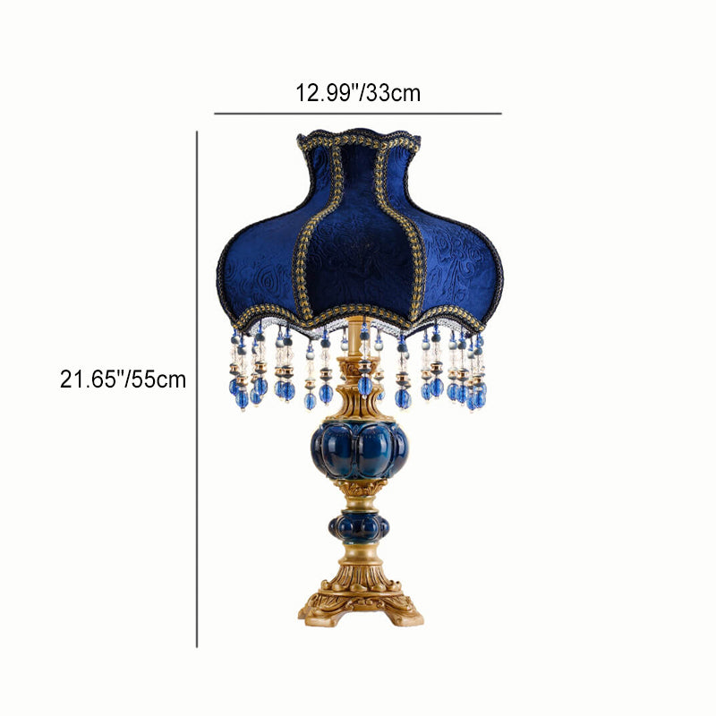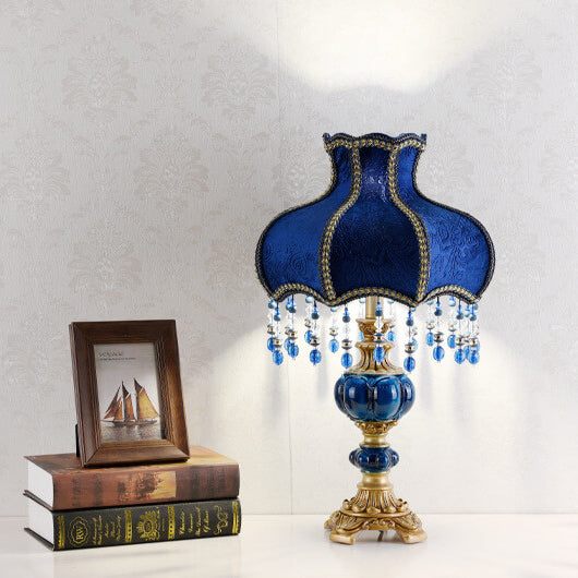 Traditional European Palace Decorative Design Fabric Shade 1-Light Table Lamp For Bedroom