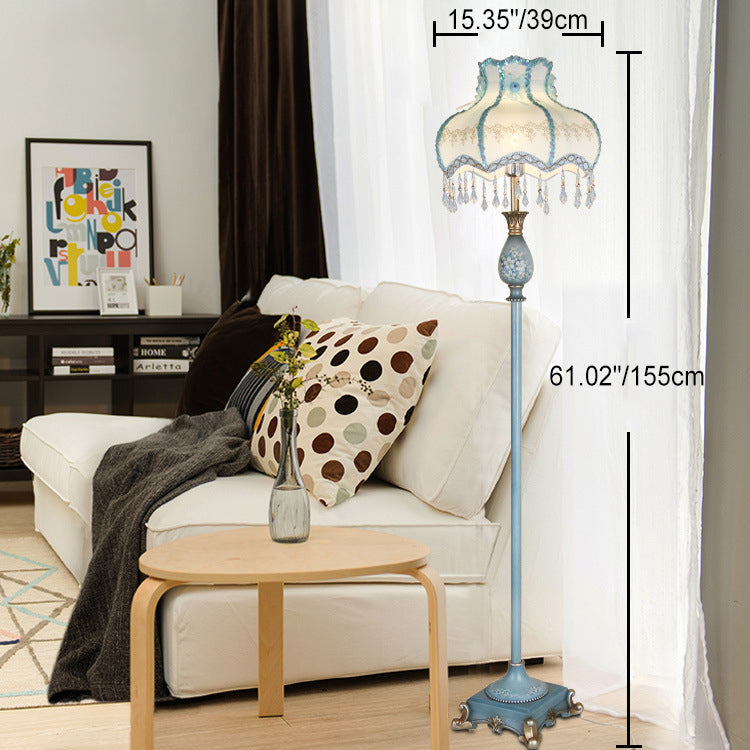 Traditional European Stained Resin Fabric Flower Dome 1-Light Standing Floor Lamp For Living Room