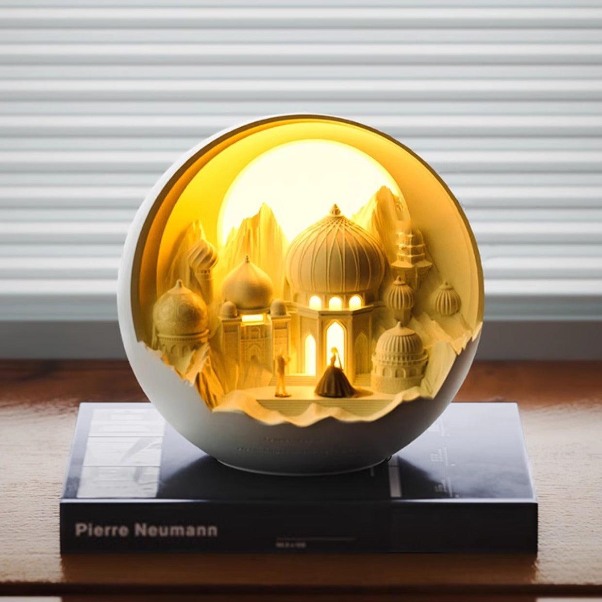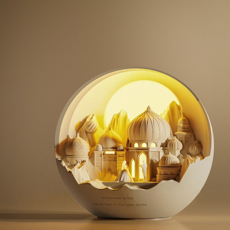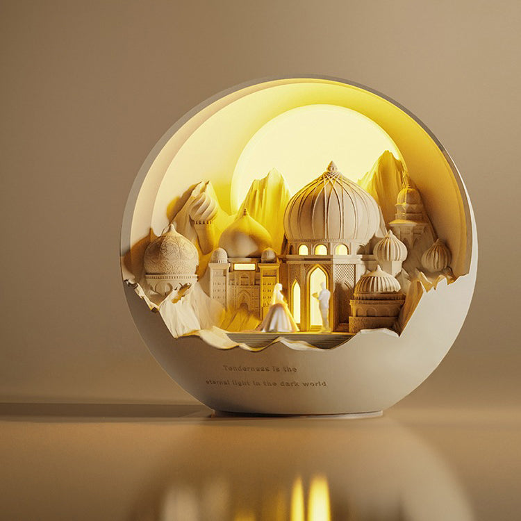 Traditional European USB Plaster Round Fairytale Castle Wedding LED Aromatherapy Table Lamp Night Light For Bedside