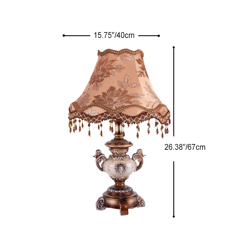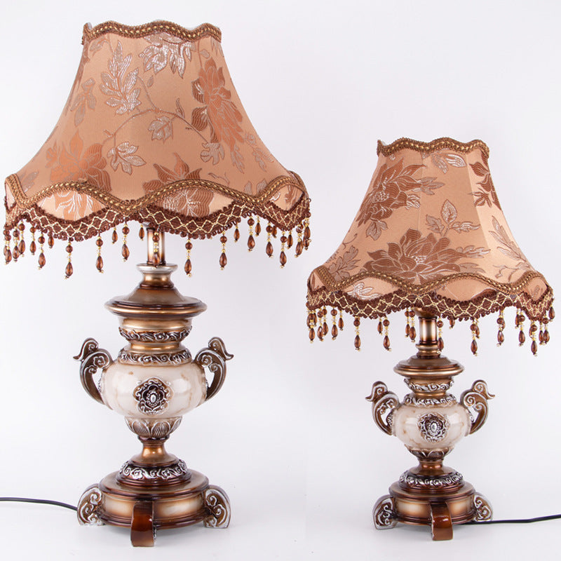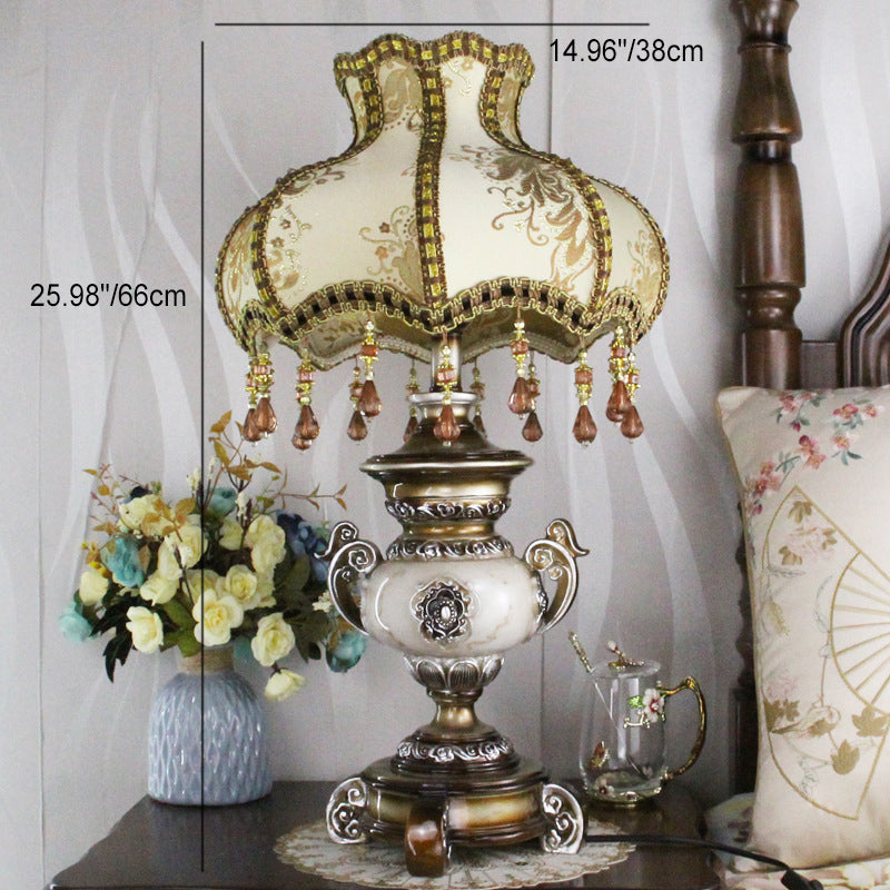 Traditional European Vase Base Resin Fabric 1-Light Table Lamp For Bedroom