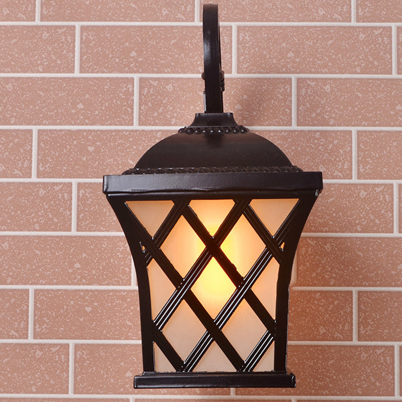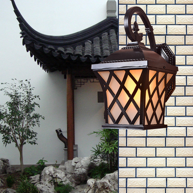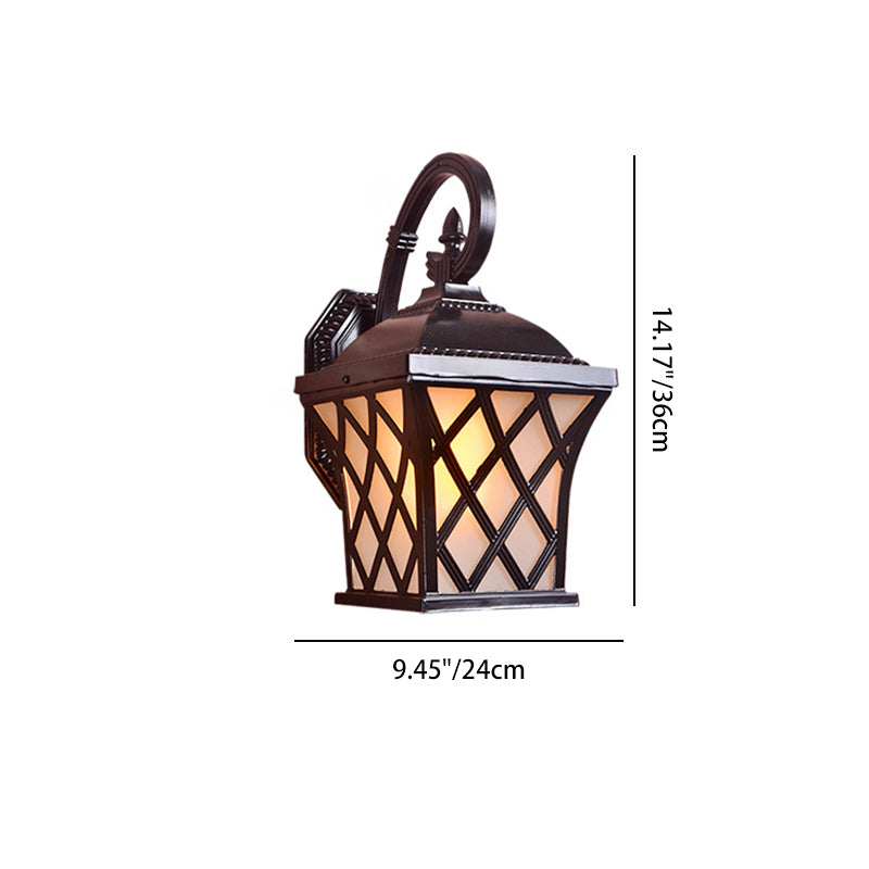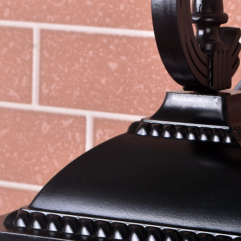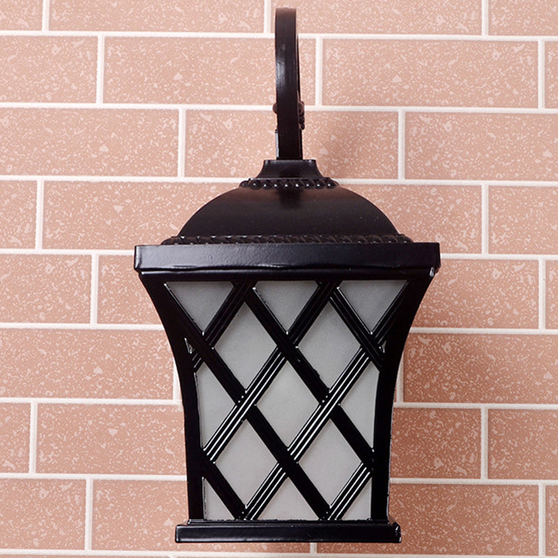 مصباح حائط تقليدي أوروبي مقاوم للماء مصنوع من الألومنيوم والزجاج على شكل فانوس، مزود بإضاءة واحدة، مناسب للفناء الخارجي والحديقة