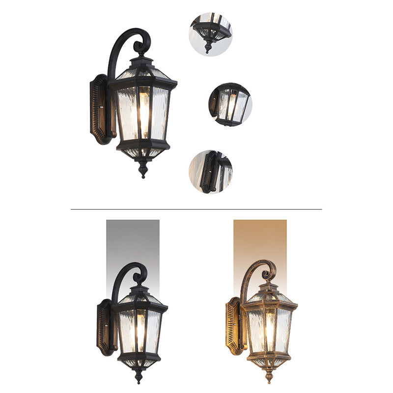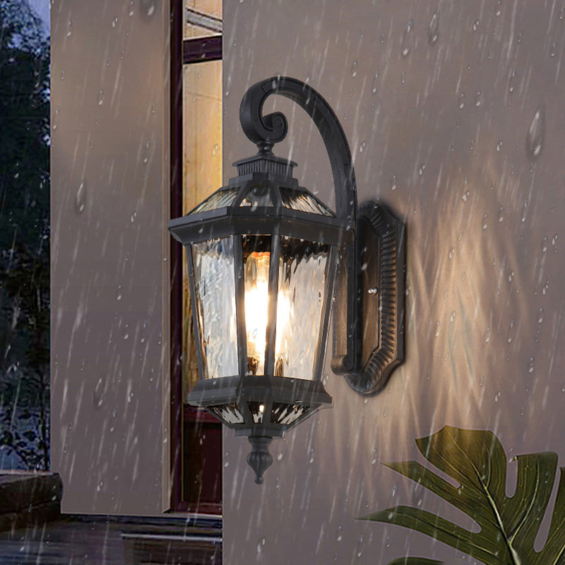 مصباح حائط أوروبي تقليدي مقاوم للماء مصنوع من الألومنيوم والزجاج ومثمن الشكل ومصباح حائطي واحد للحديقة