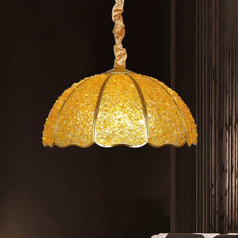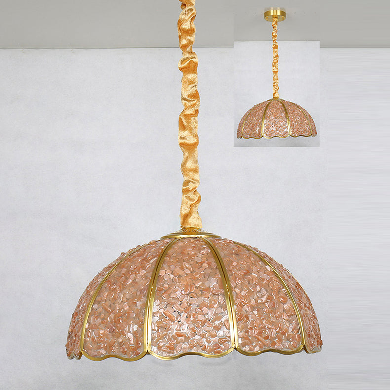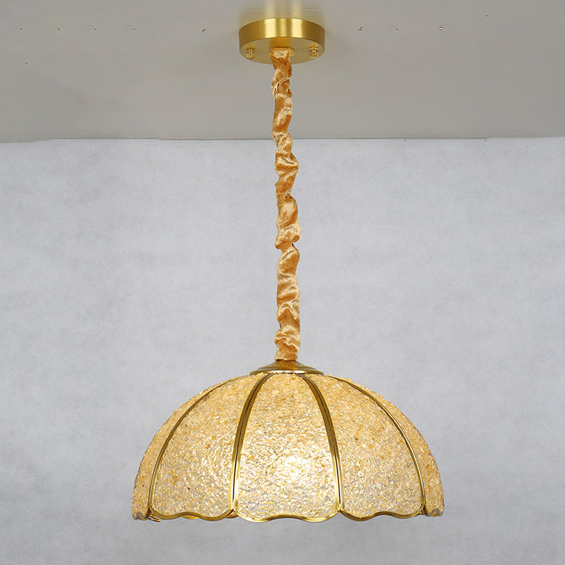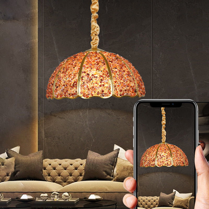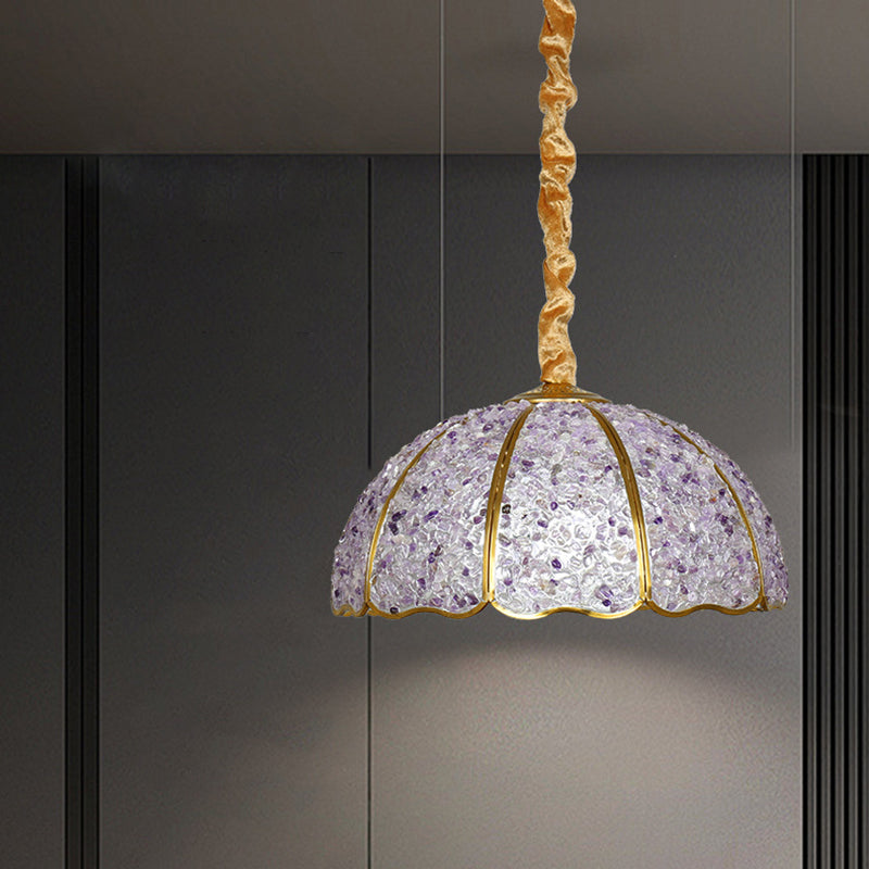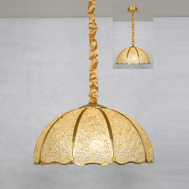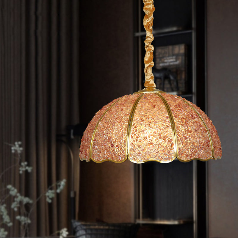 مصباح معلق فرنسي تقليدي على شكل قبة من الكريستال النحاسي نصف كروي مزود بمصباح واحد لغرفة المعيشة