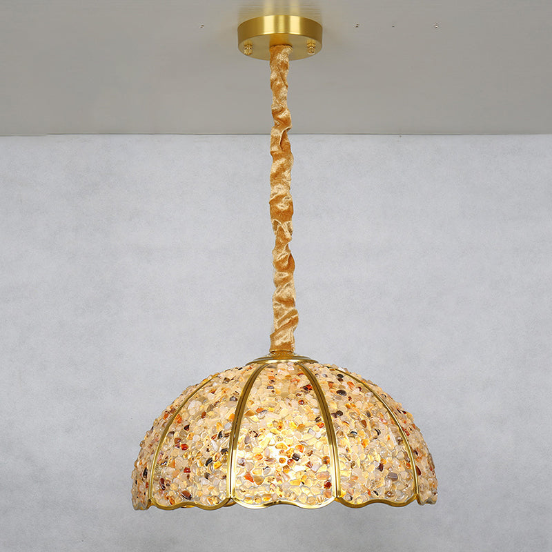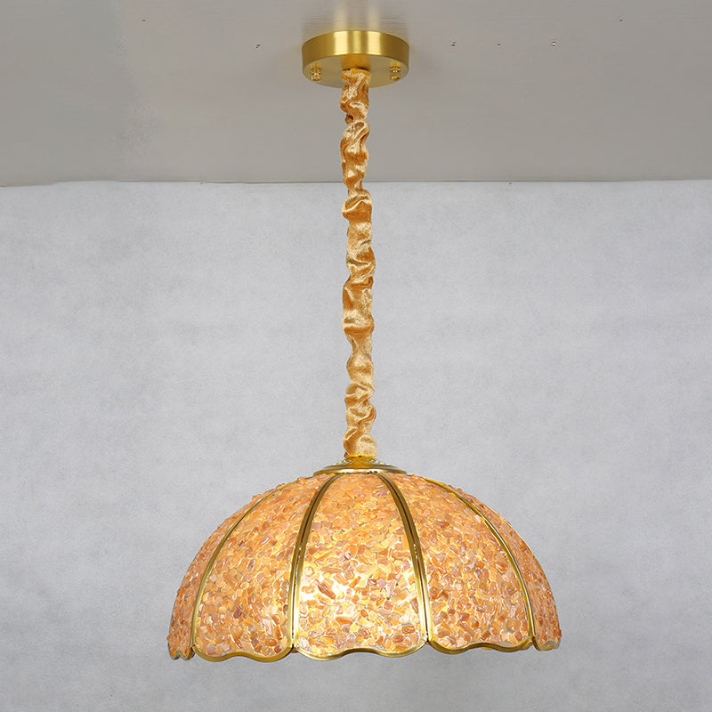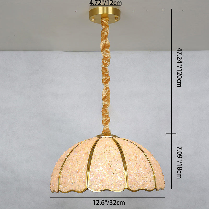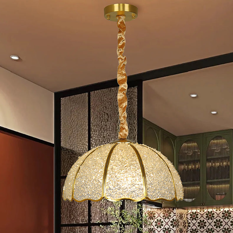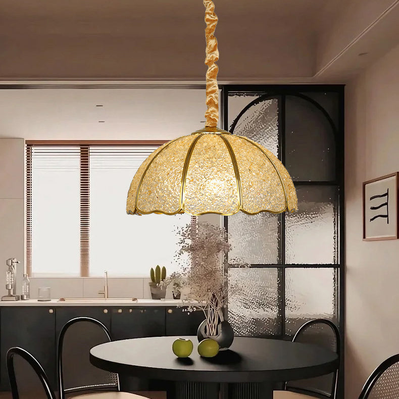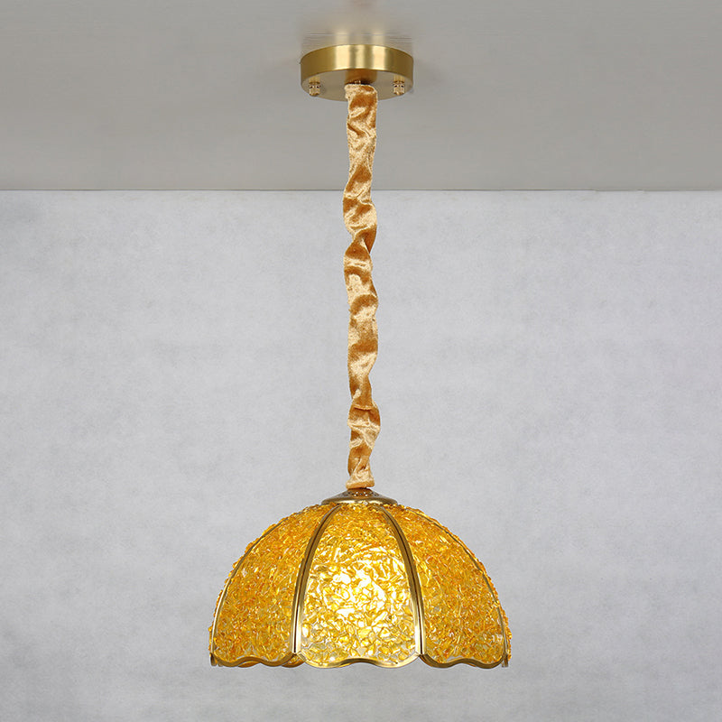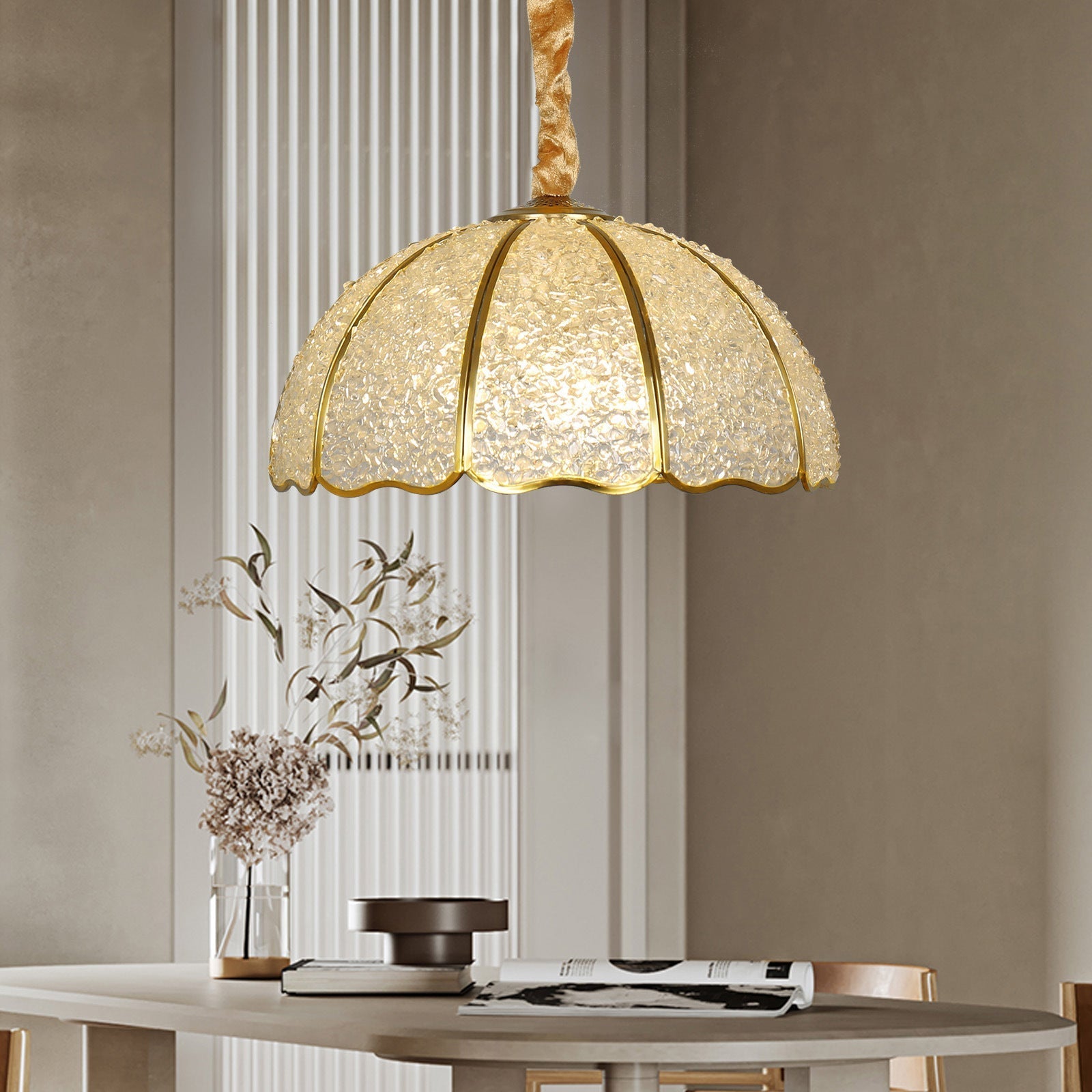 مصباح معلق فرنسي تقليدي على شكل قبة من الكريستال النحاسي نصف كروي مزود بمصباح واحد لغرفة المعيشة