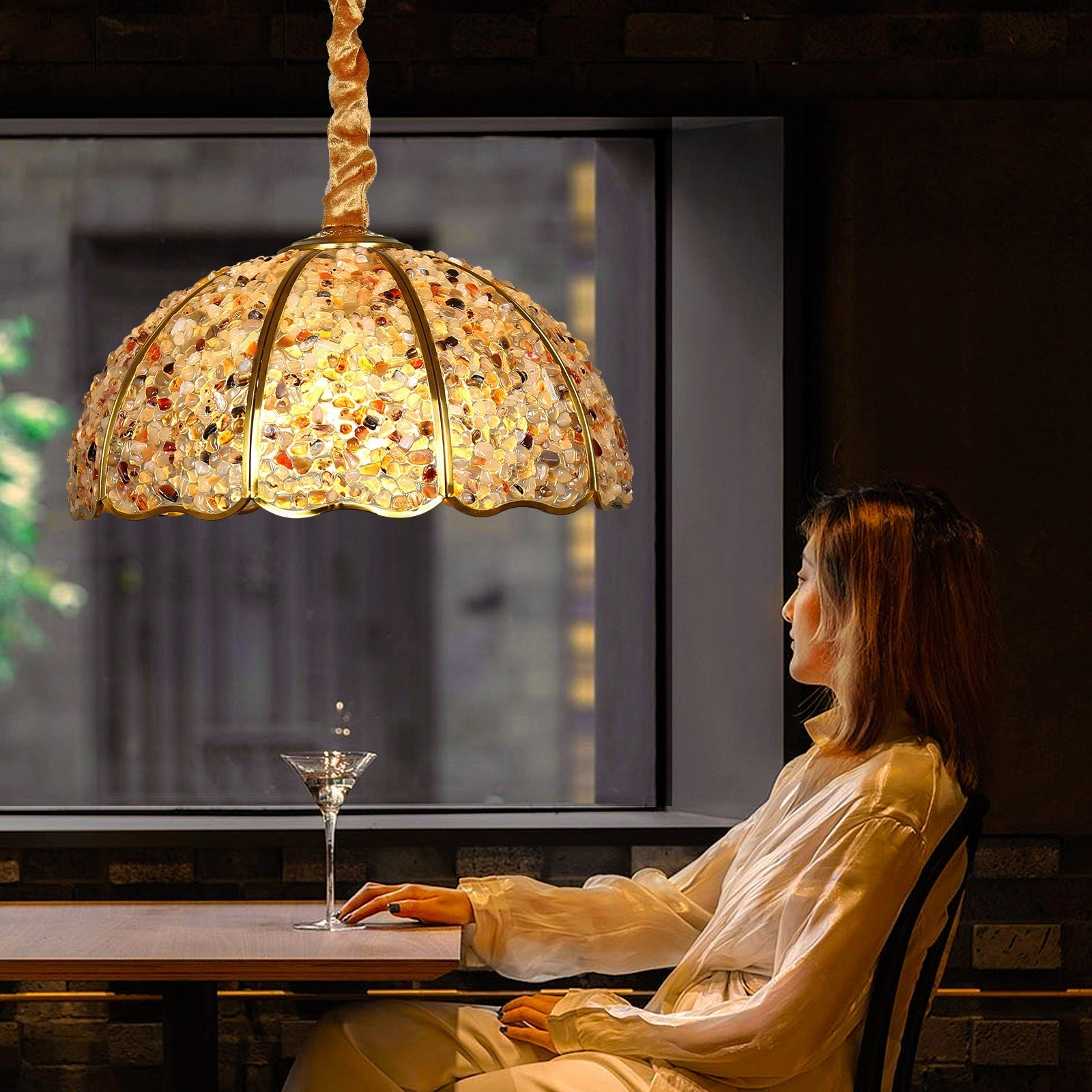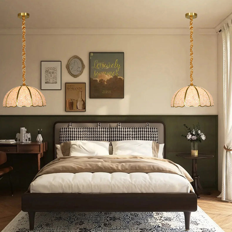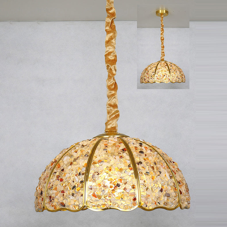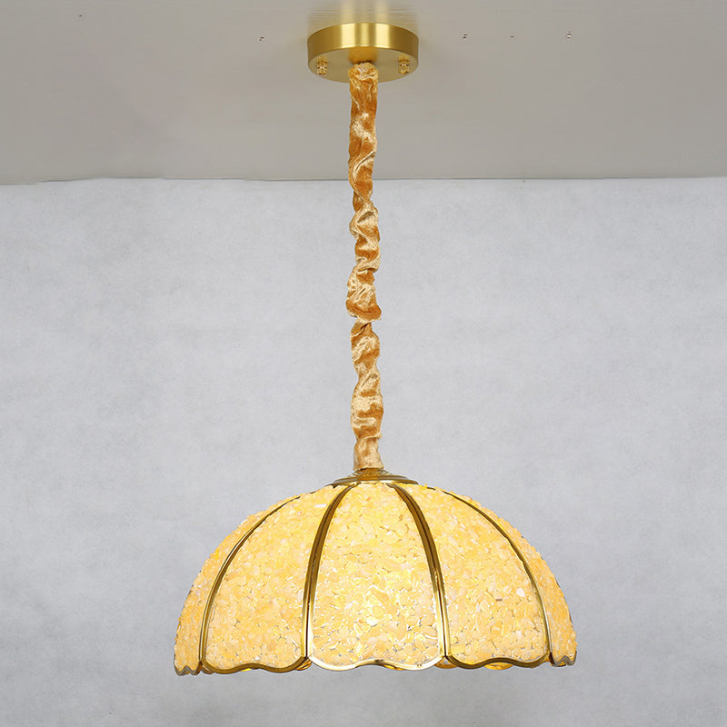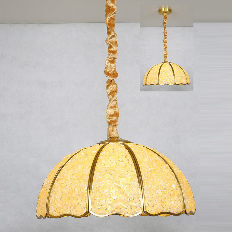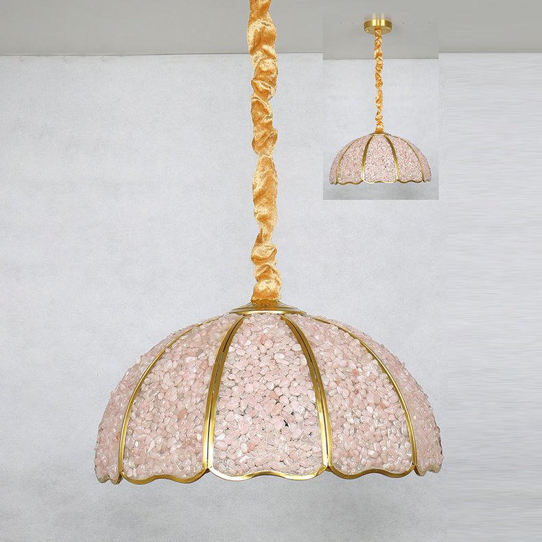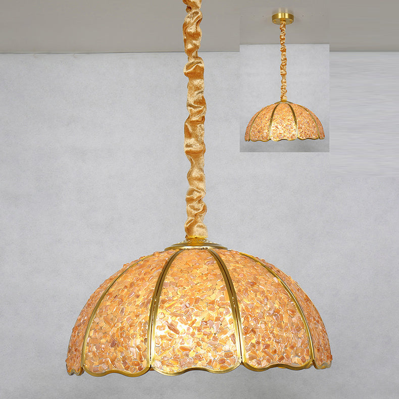 مصباح معلق فرنسي تقليدي على شكل قبة من الكريستال النحاسي نصف كروي مزود بمصباح واحد لغرفة المعيشة