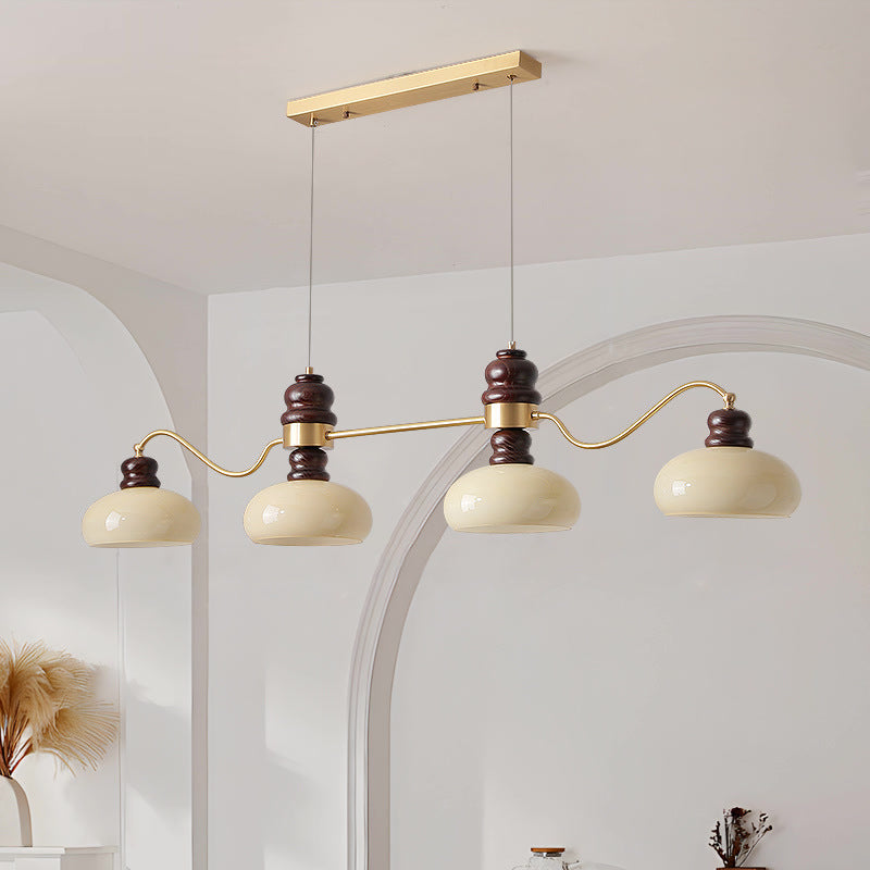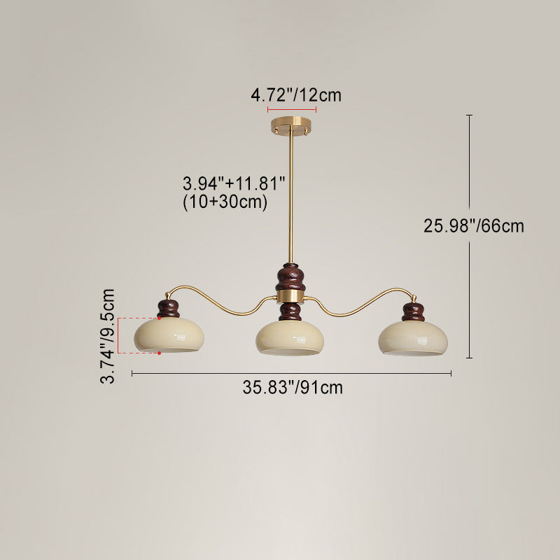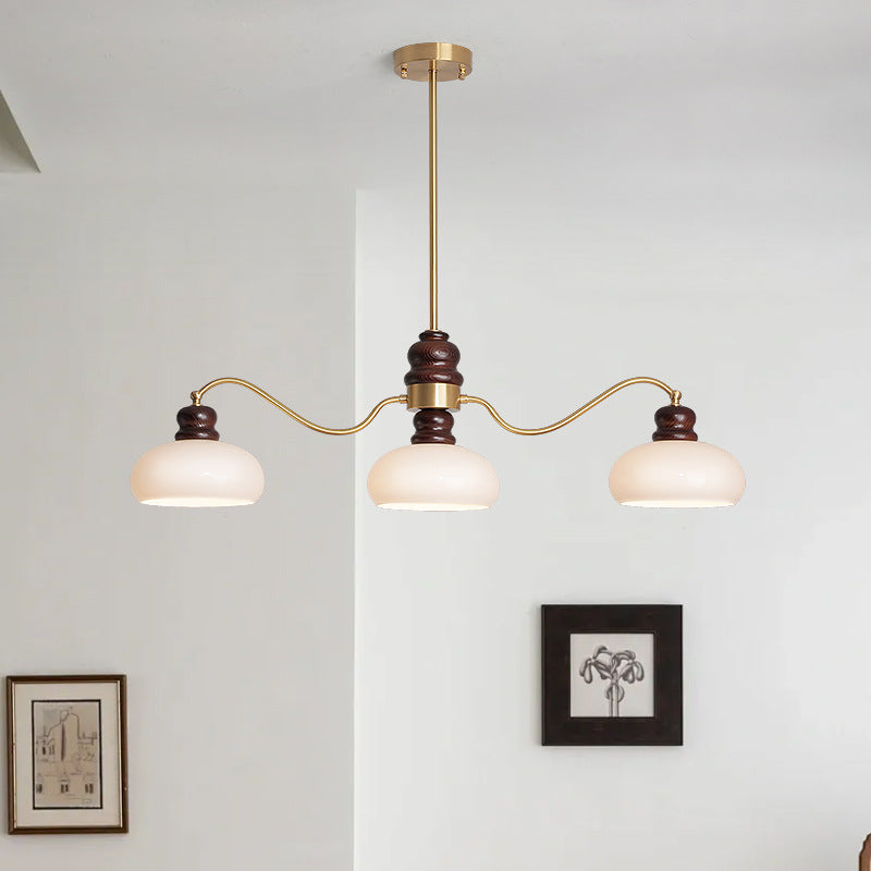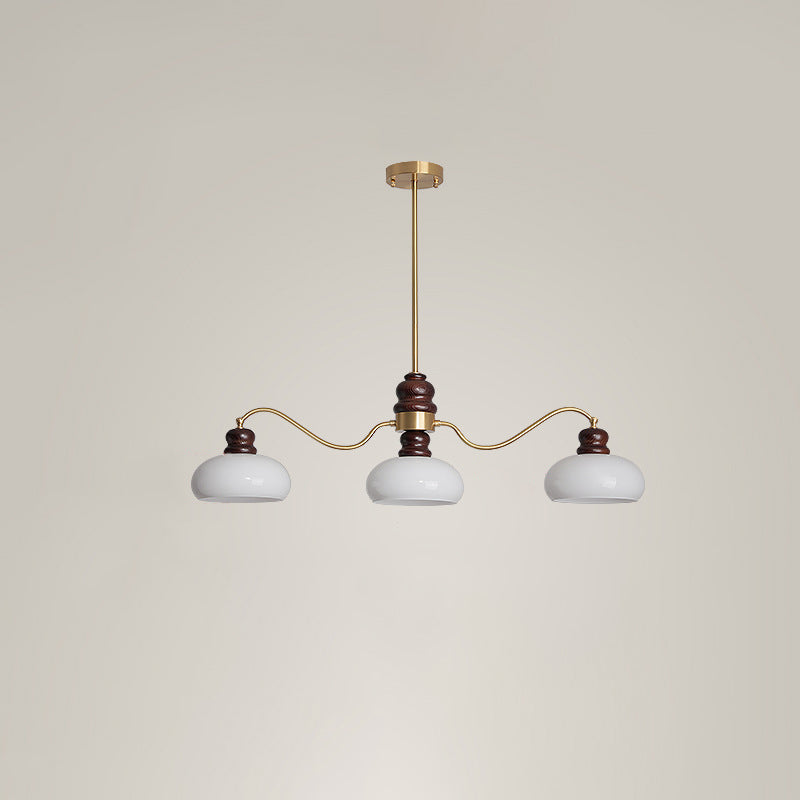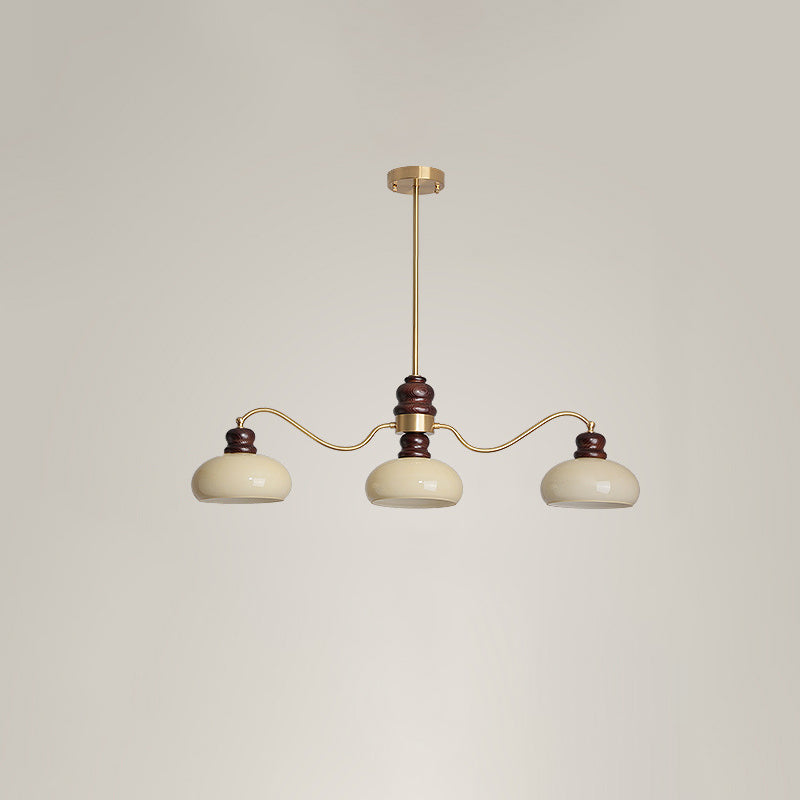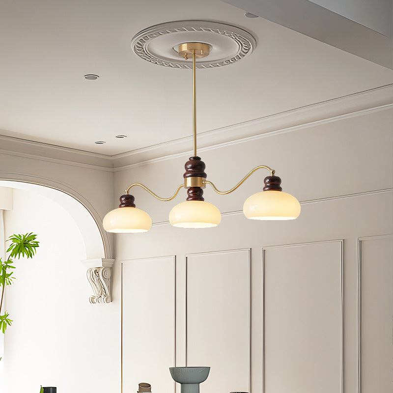 ثريات فرنسية تقليدية من النحاس والزجاج وخشب الدردار دائرية الشكل بثلاثة أرباع الضوء لغرفة الطعام
