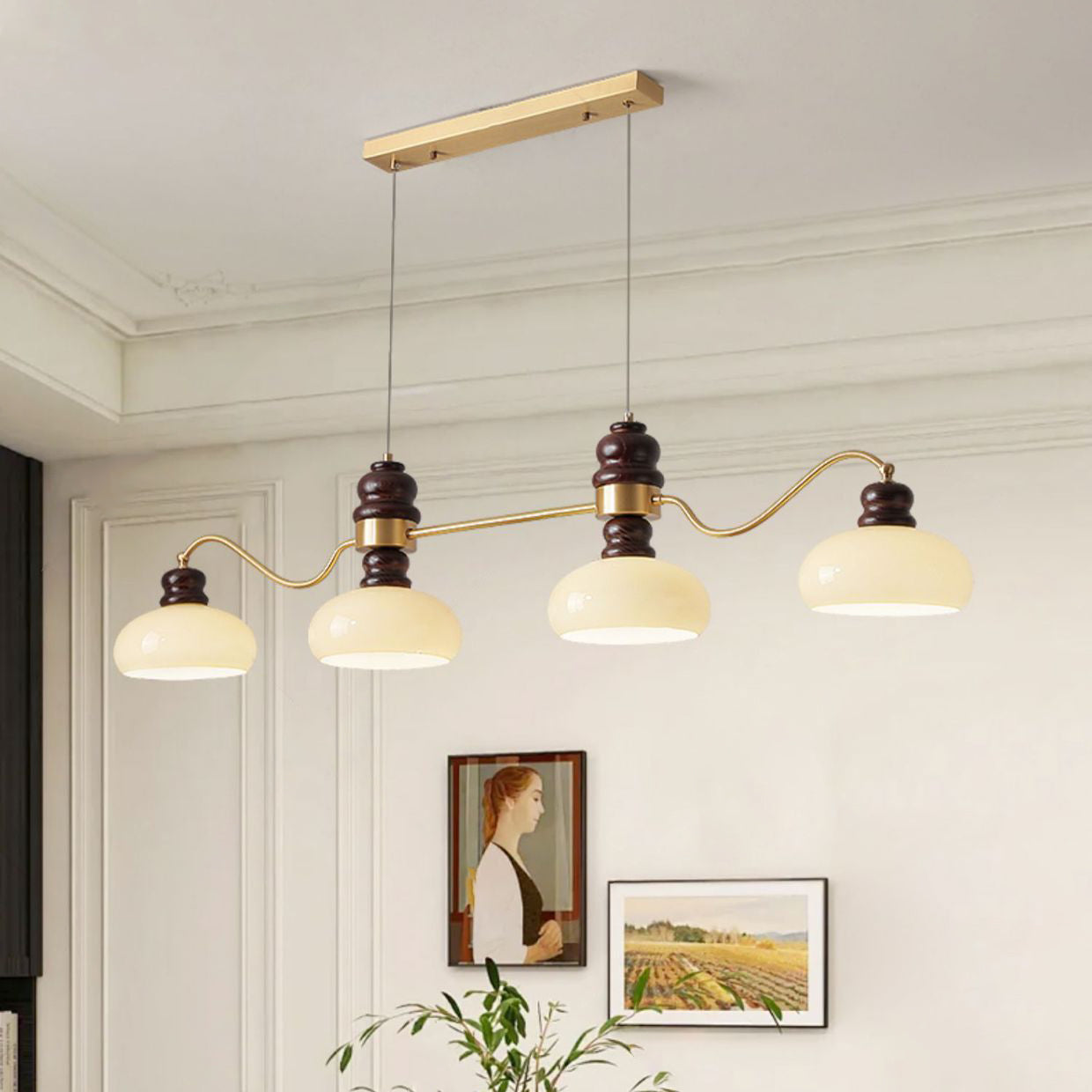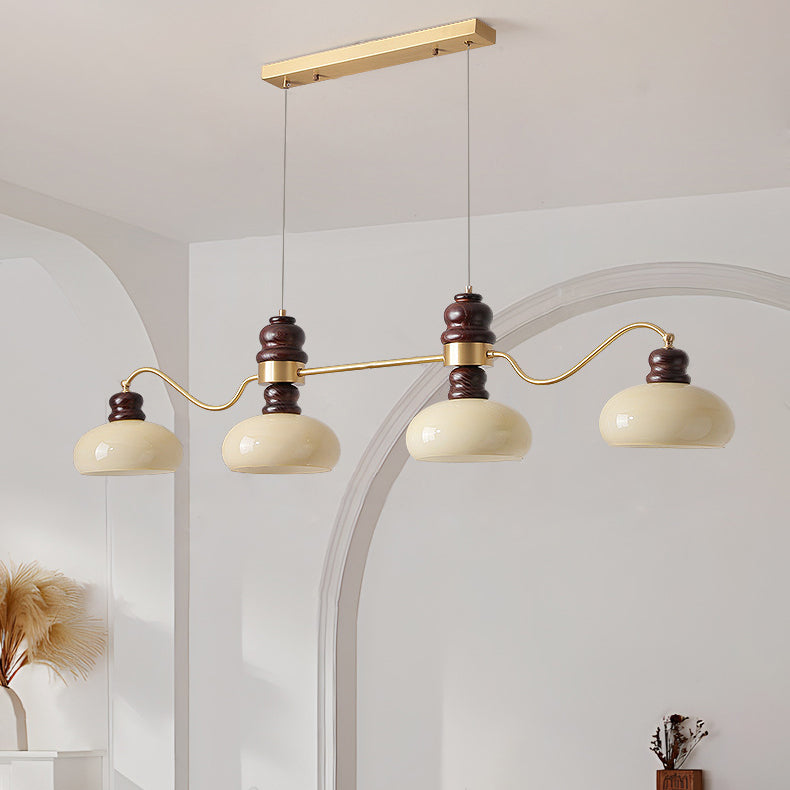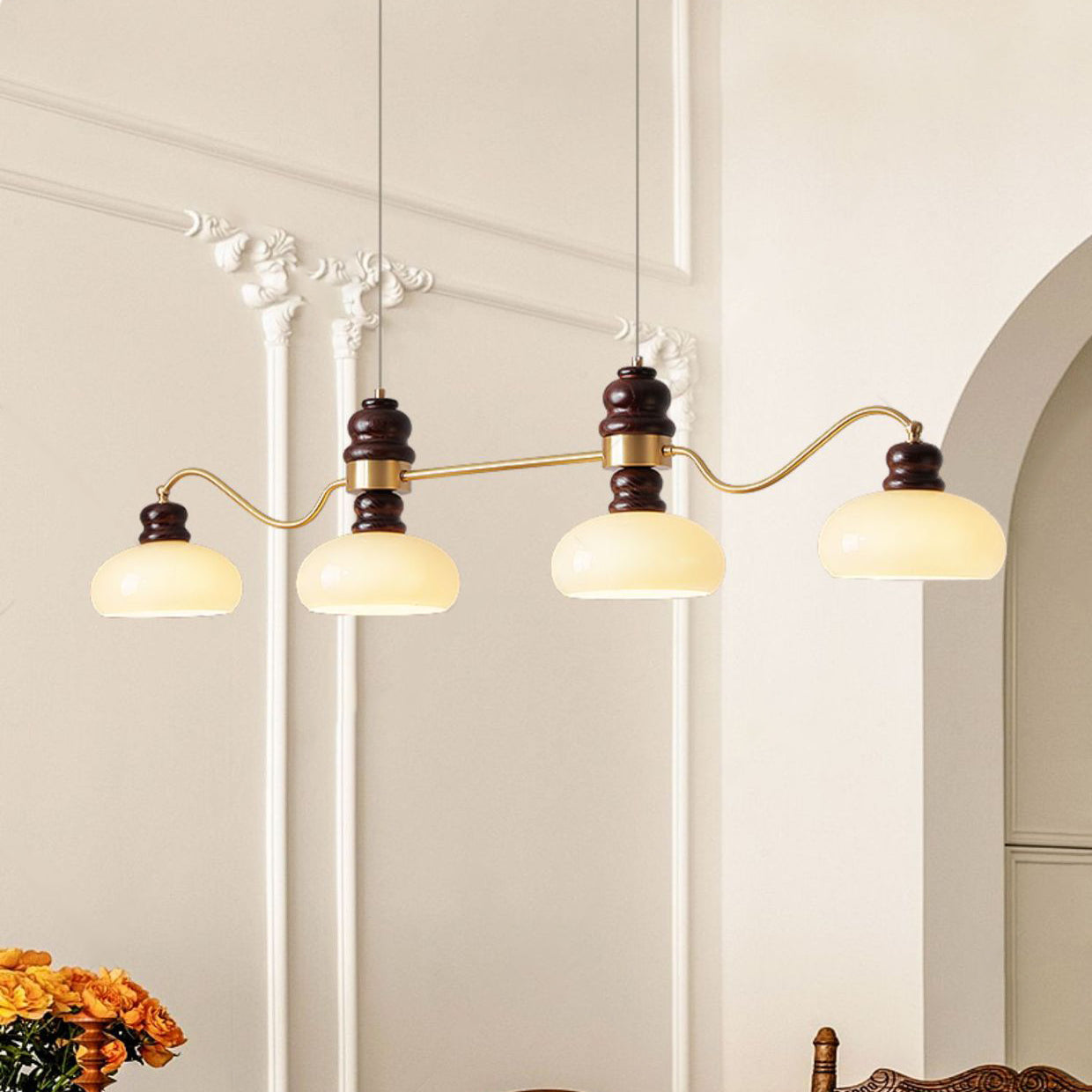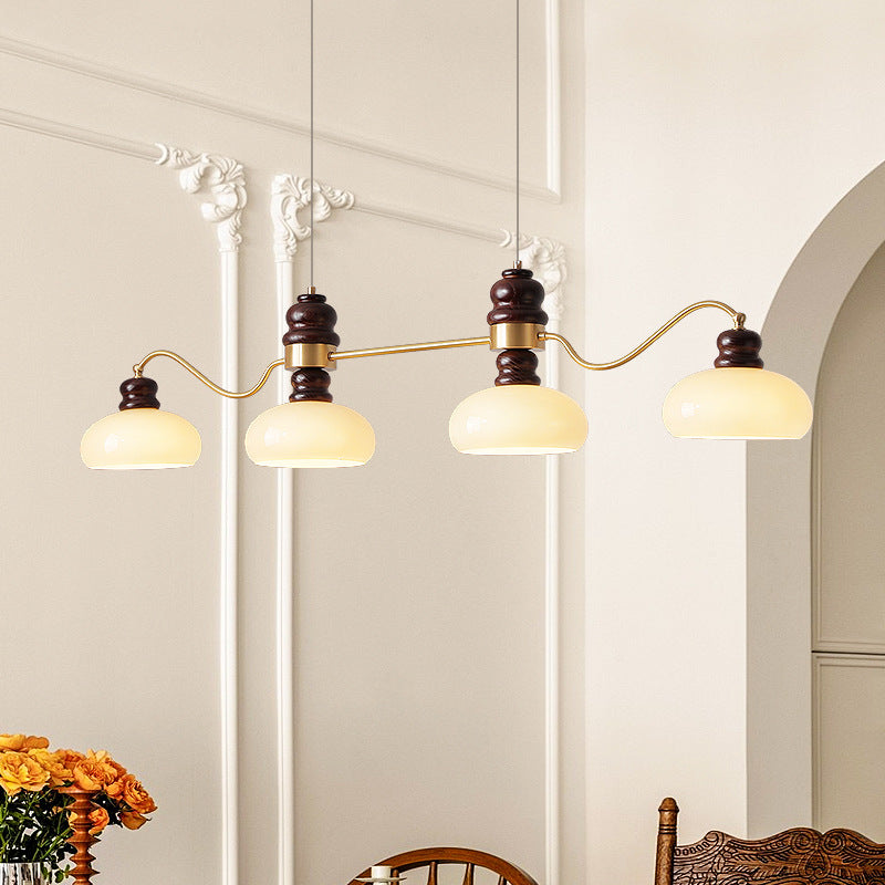 ثريات فرنسية تقليدية من النحاس والزجاج وخشب الدردار دائرية الشكل بثلاثة أرباع الضوء لغرفة الطعام