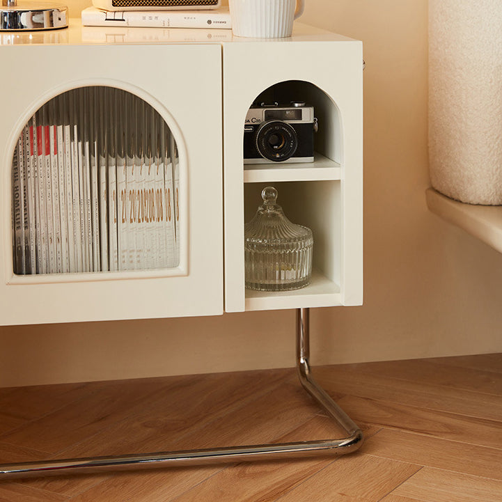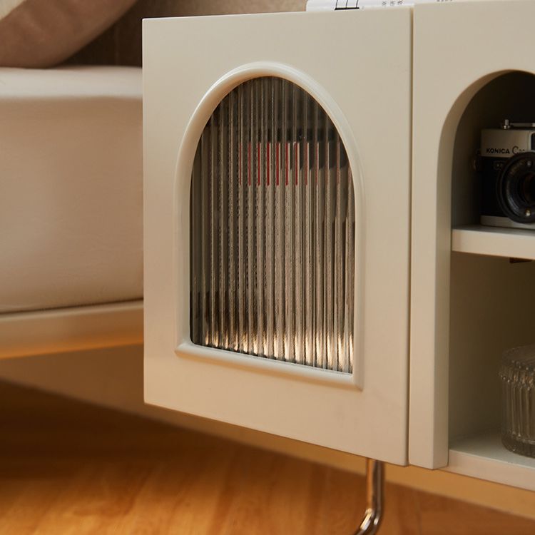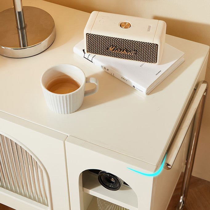 Traditional French Cream Square Density Plate Glass Stainless Steel Nightstand 1-Cabinet For Bedroom