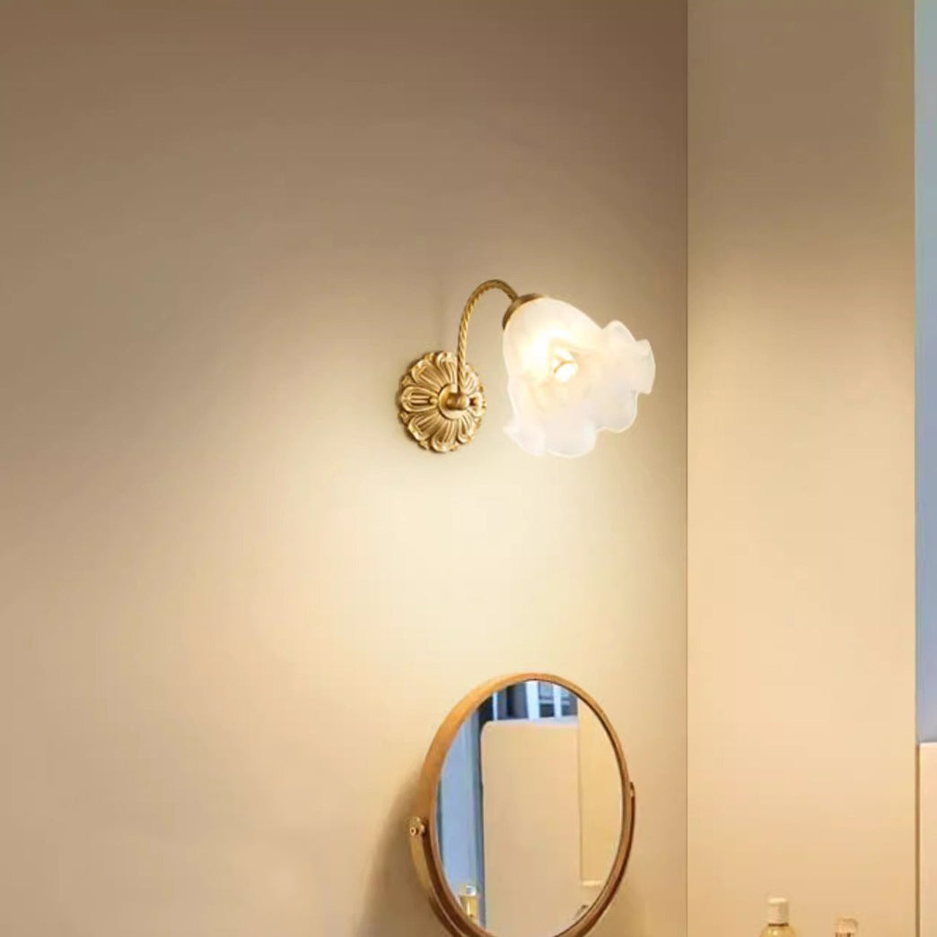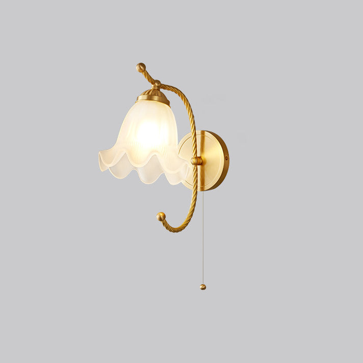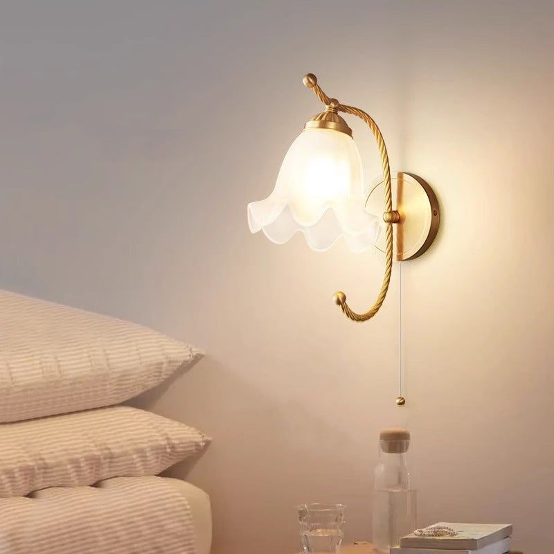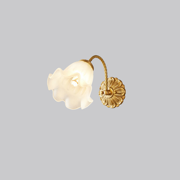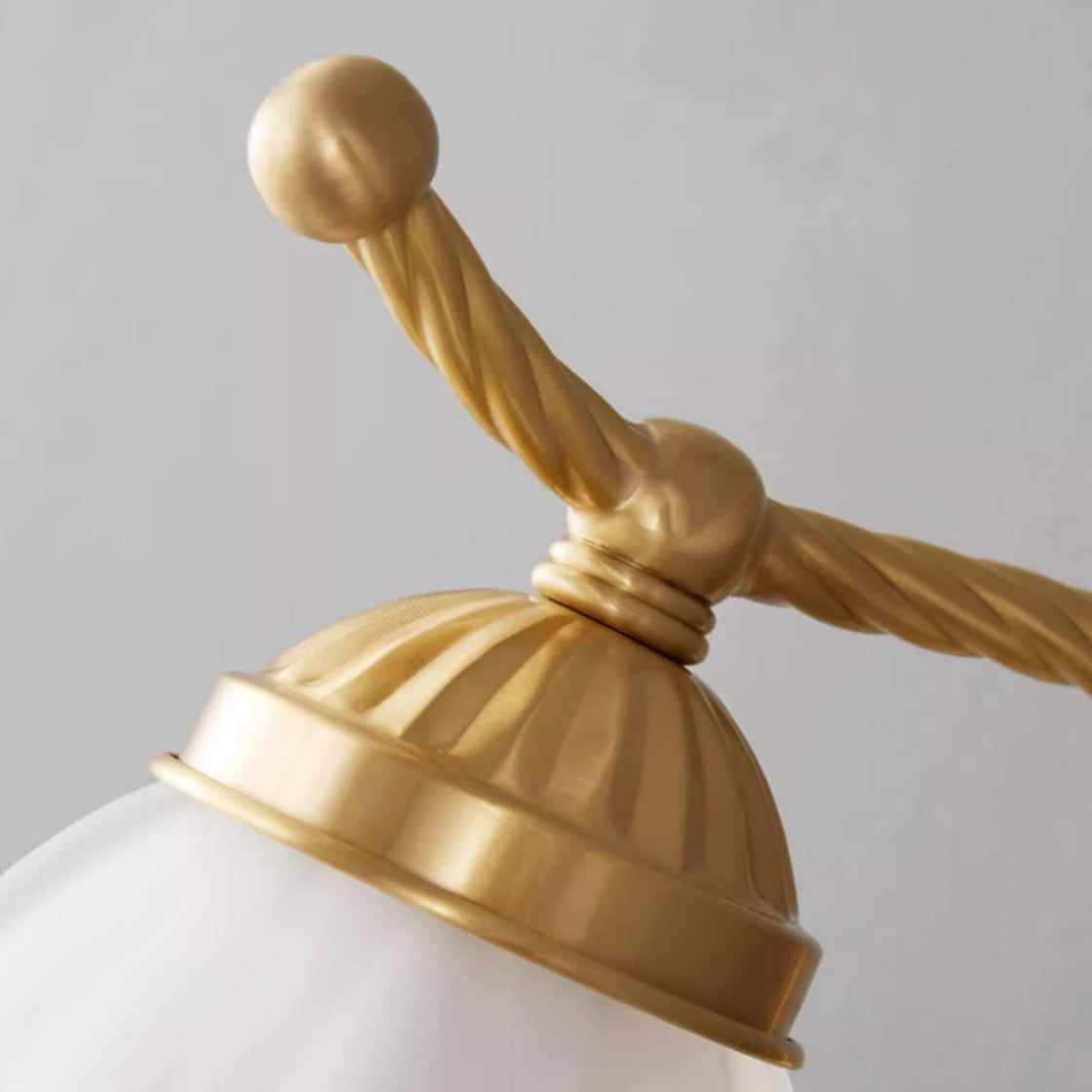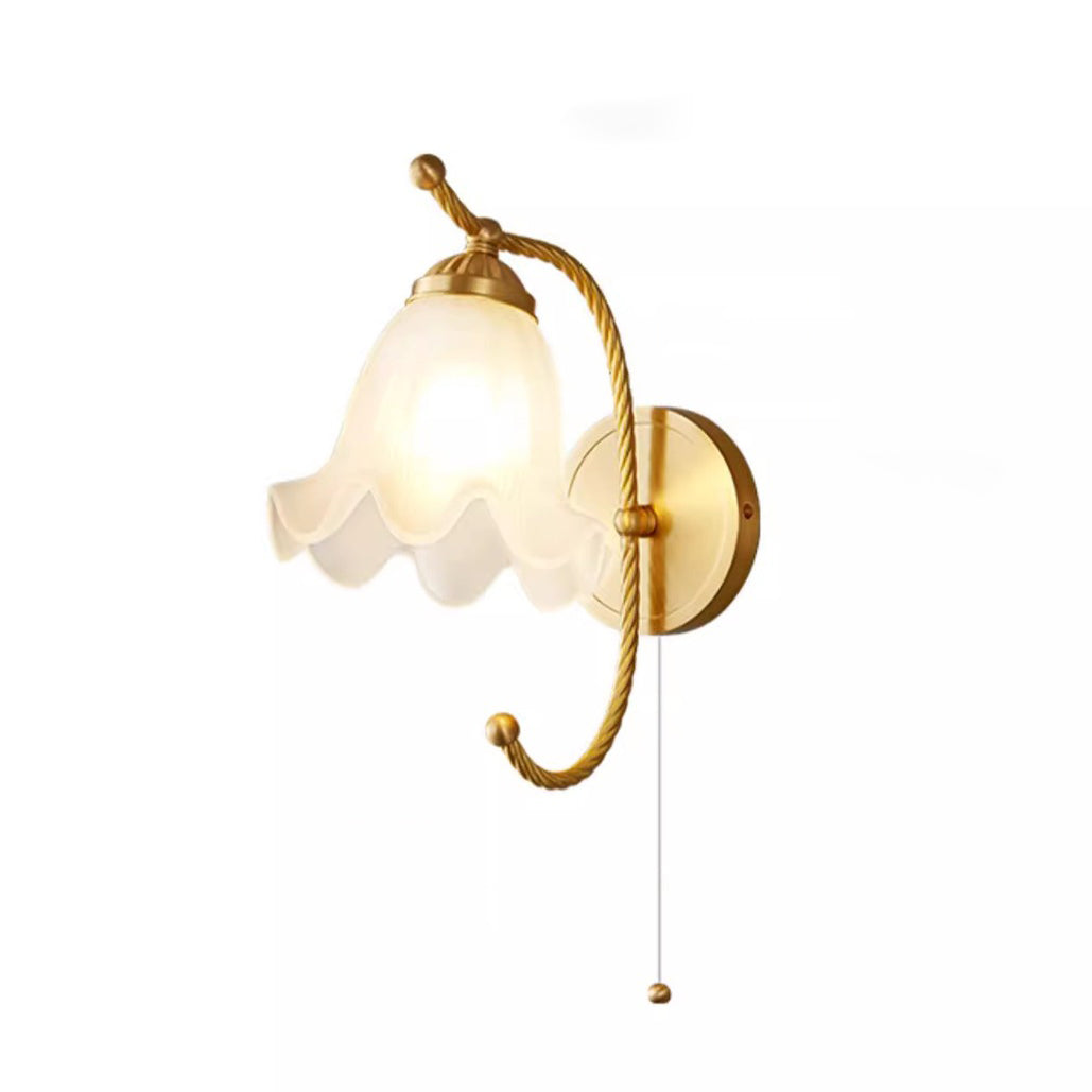 مصباح حائط فرنسي تقليدي منحني مستدير من الزجاج والنحاس لغرفة النوم