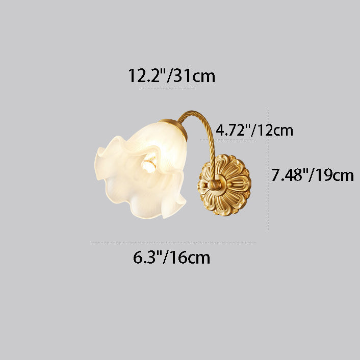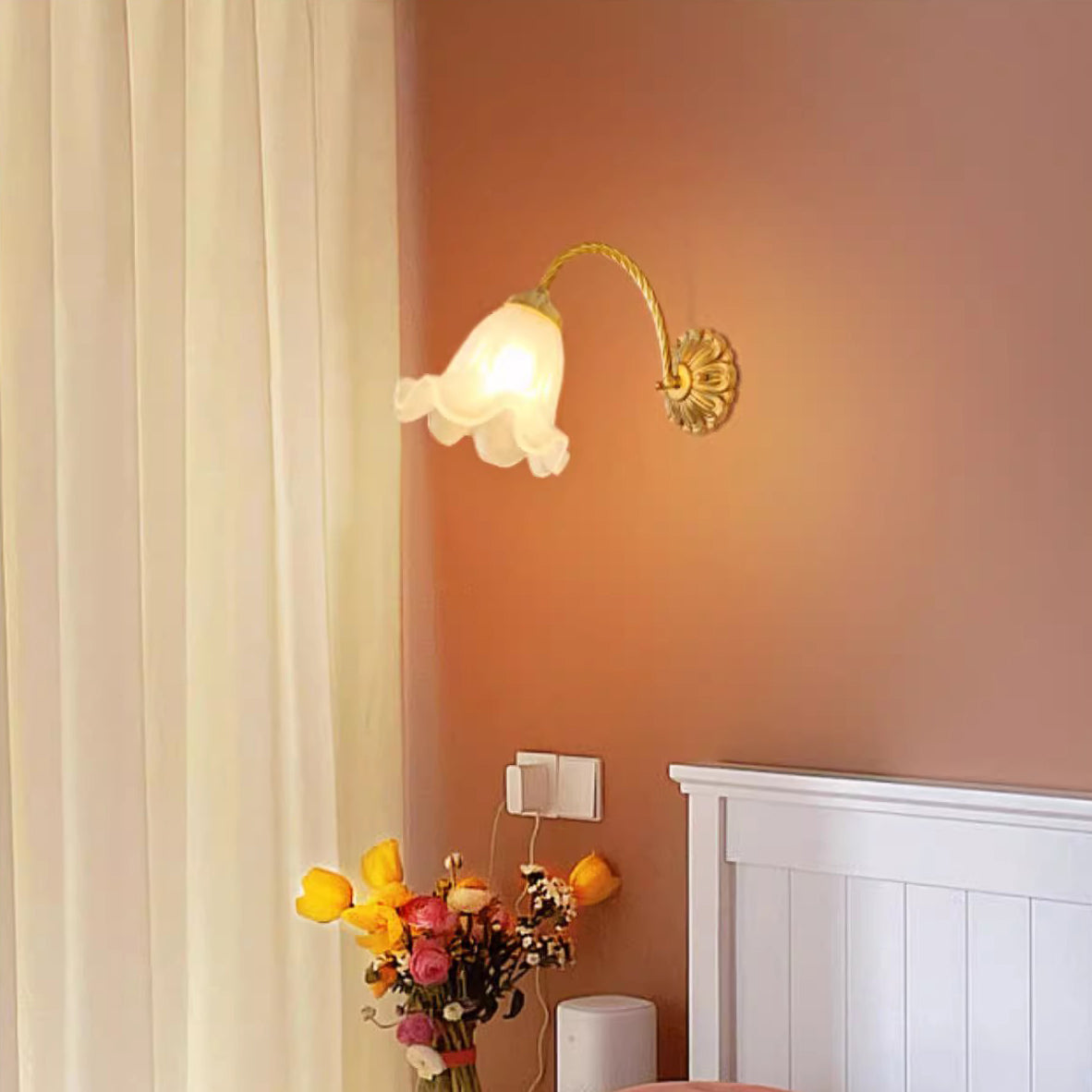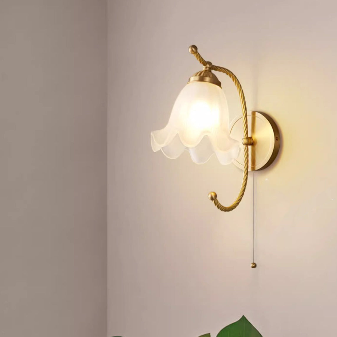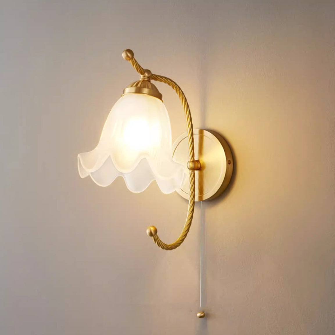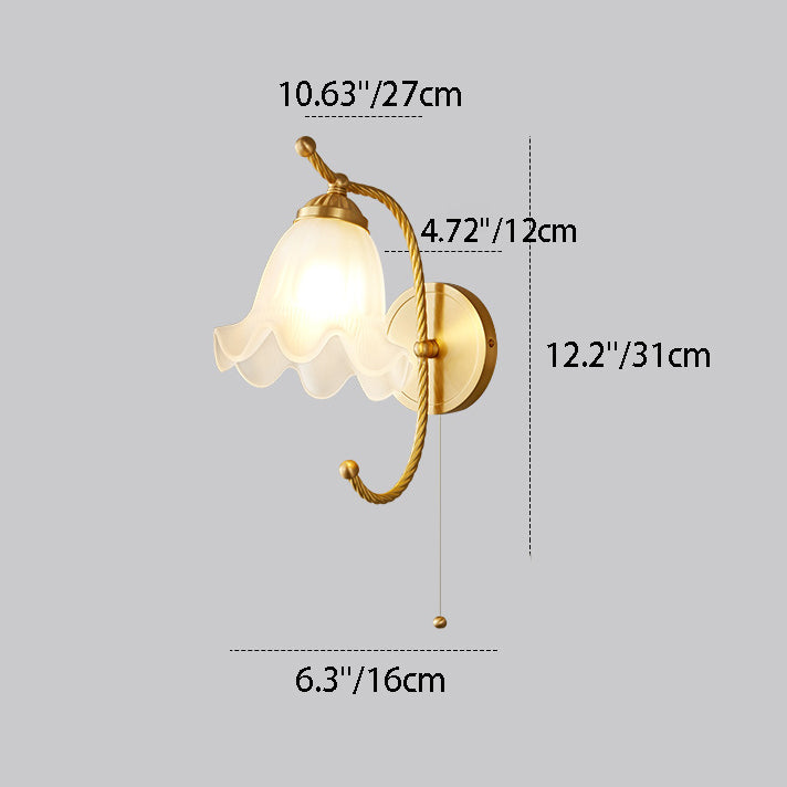 مصباح حائط فرنسي تقليدي منحني مستدير من الزجاج والنحاس لغرفة النوم