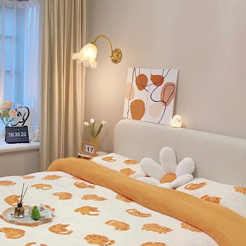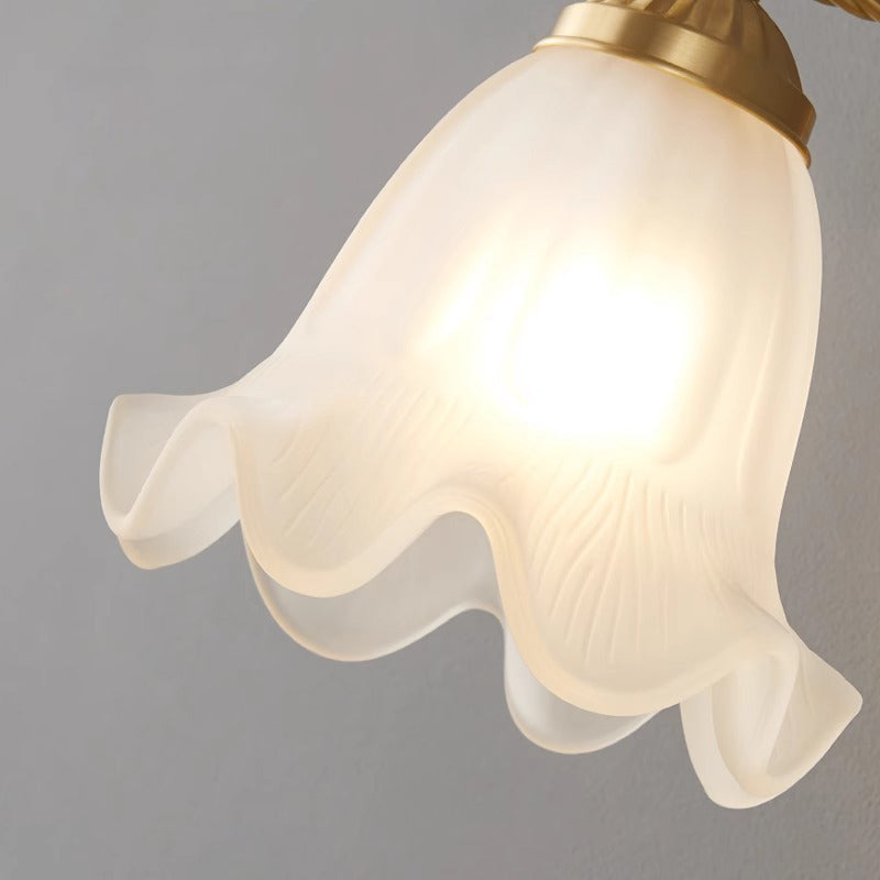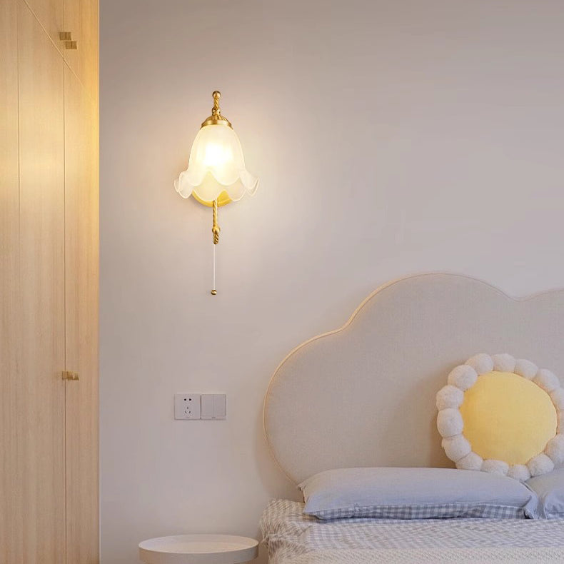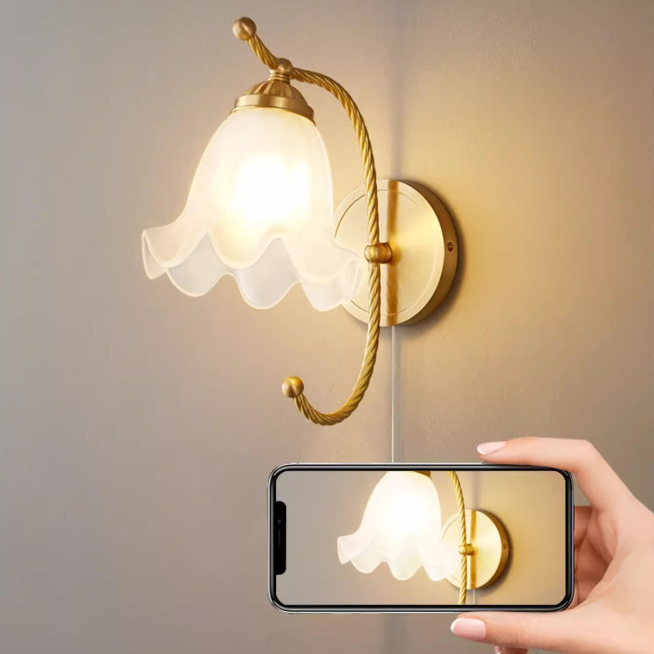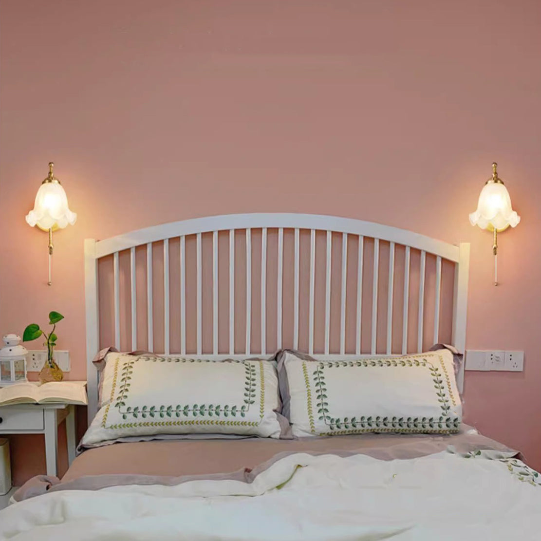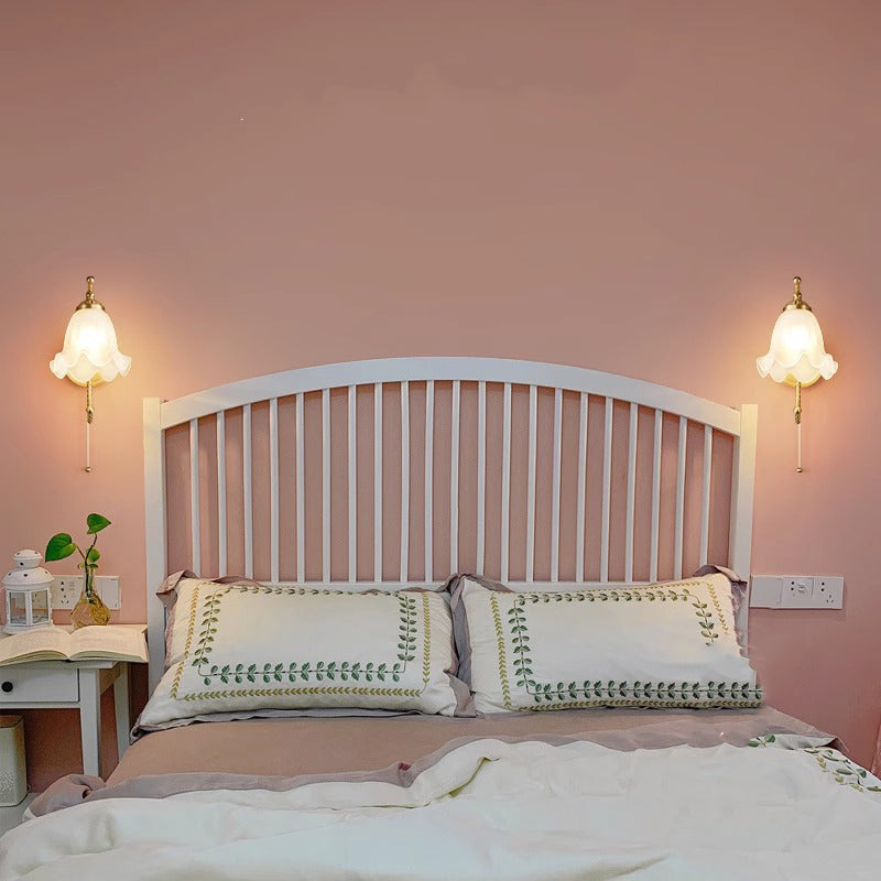 مصباح حائط فرنسي تقليدي منحني مستدير من الزجاج والنحاس لغرفة النوم