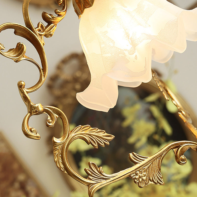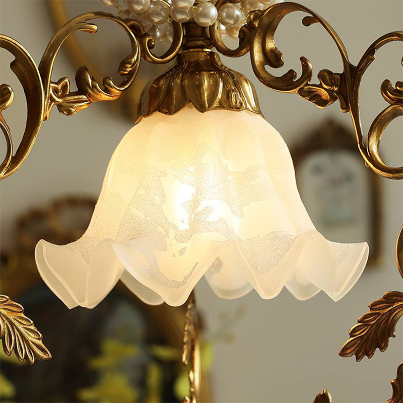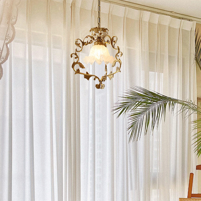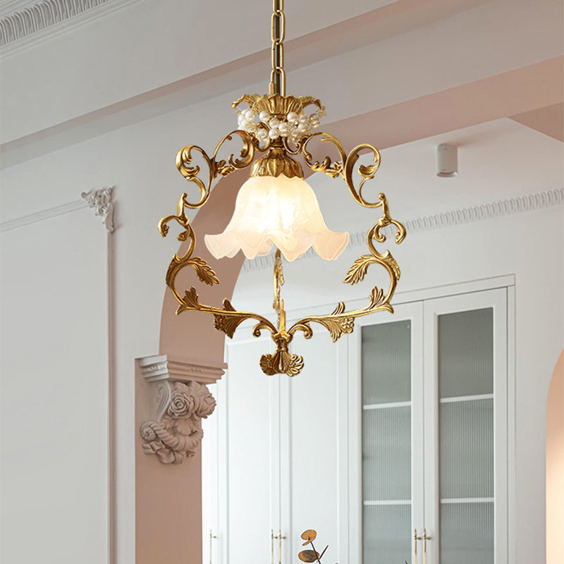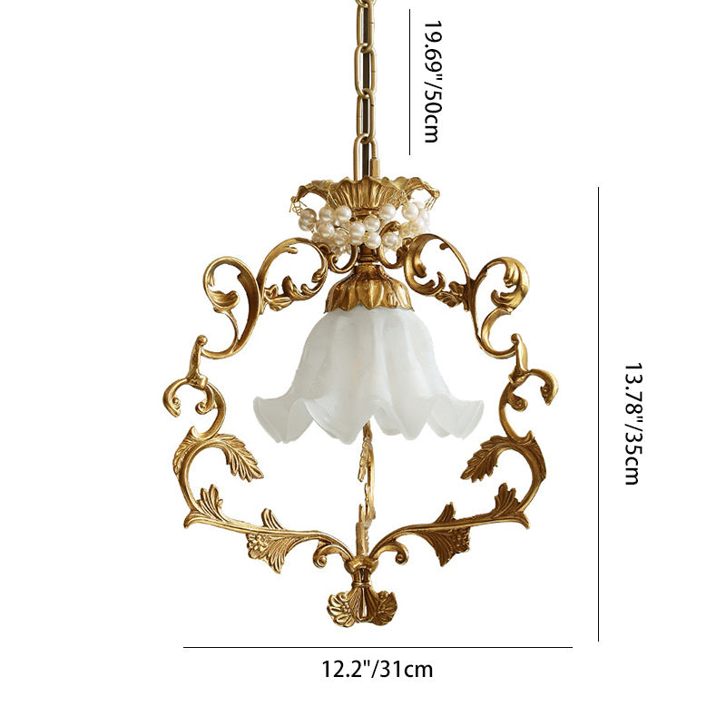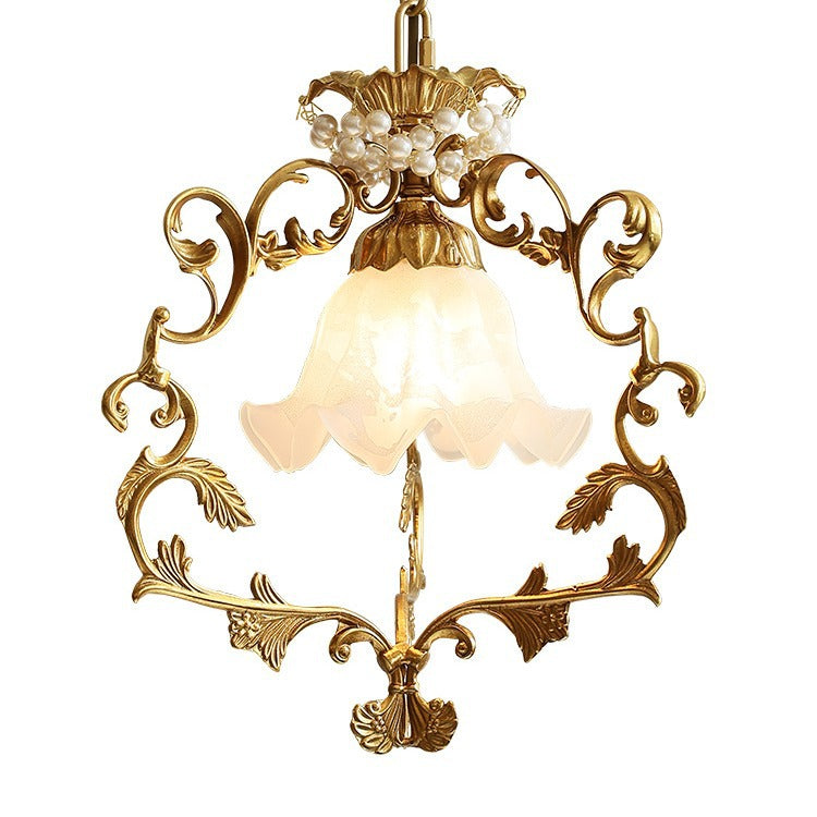 مصباح معلق فرنسي تقليدي مصنوع من النحاس بالكامل من لؤلؤة الصباح، مصنوع من الزجاج، 1 مصباح معلق لغرفة المعيشة