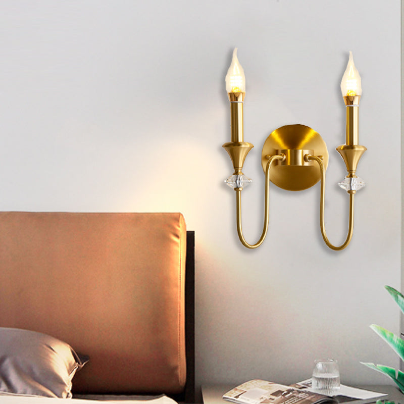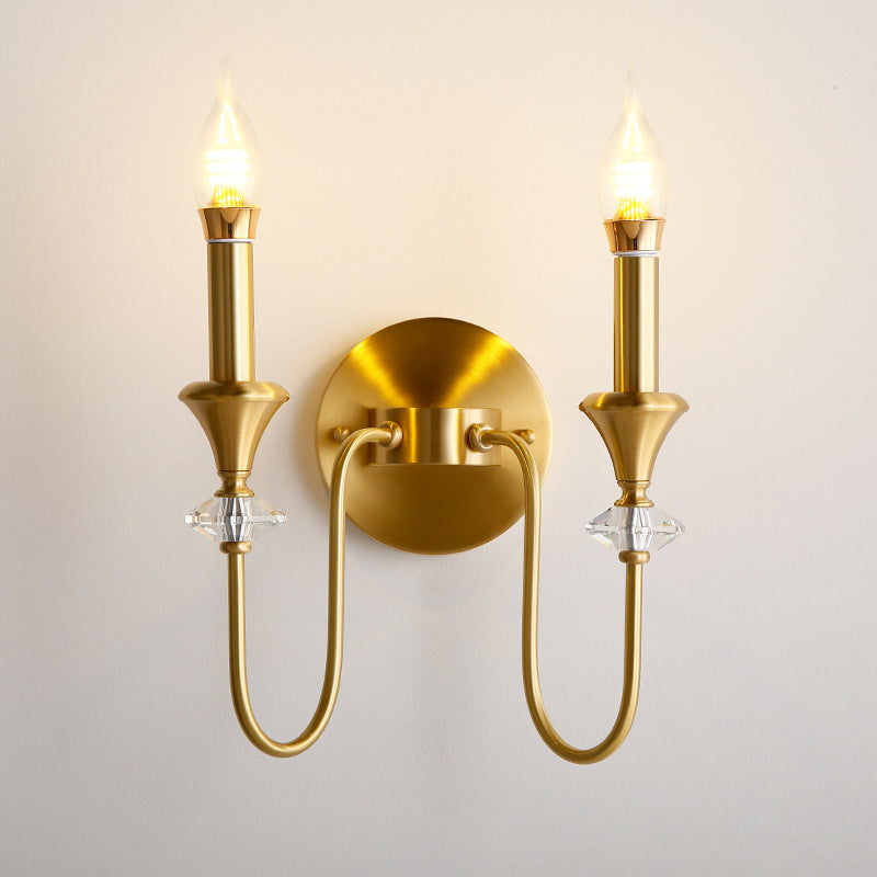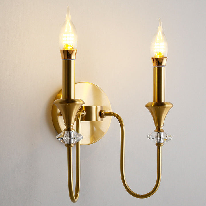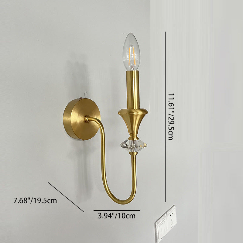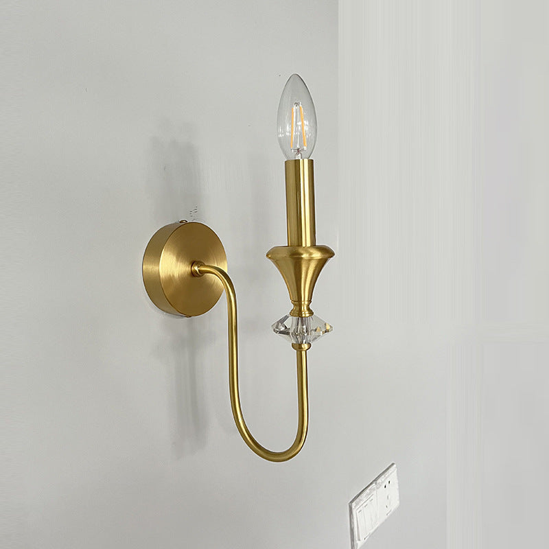 مصباح حائط فرنسي تقليدي مصنوع من النحاس والزجاج بشمعة واحدة لغرفة النوم