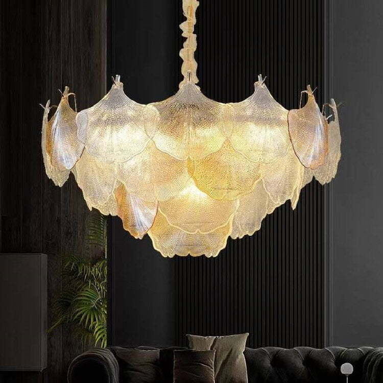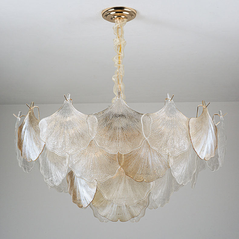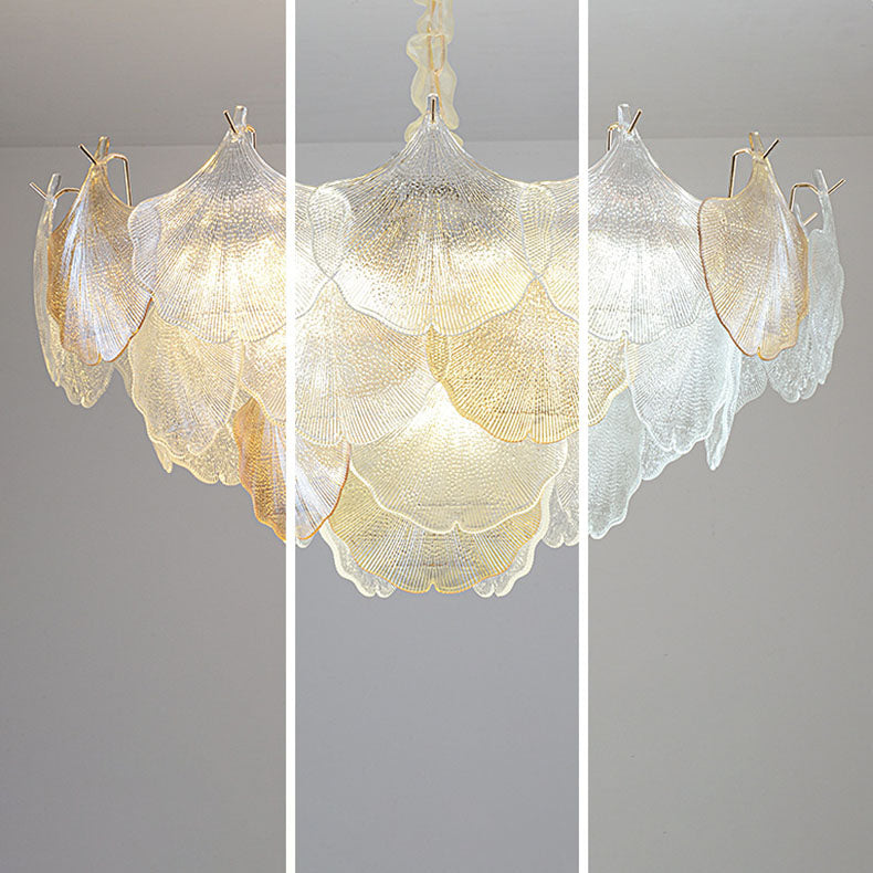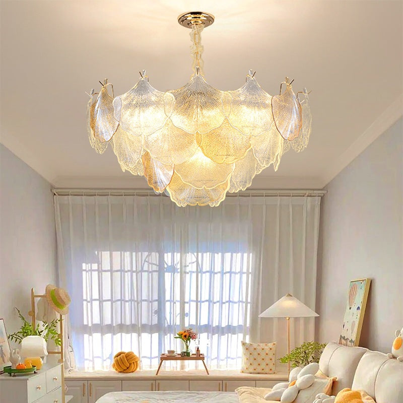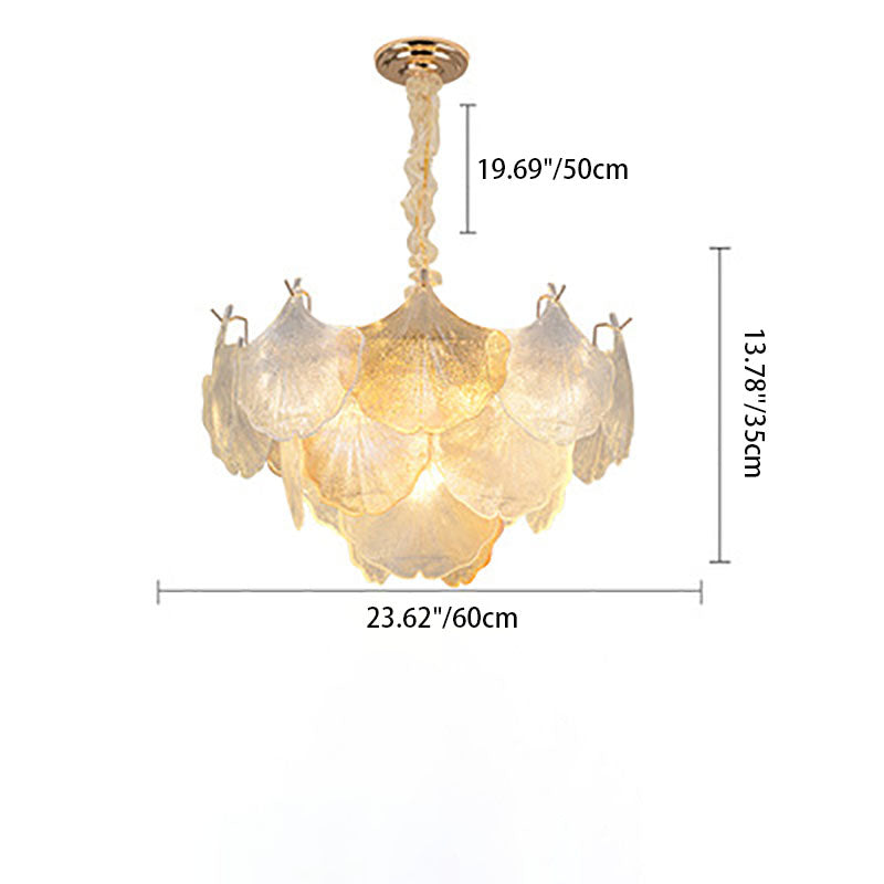 ثريا فرنسية تقليدية مصنوعة من أوراق الجنكة مصنوعة من الحديد والزجاج، 6/9 مصابيح لغرفة المعيشة