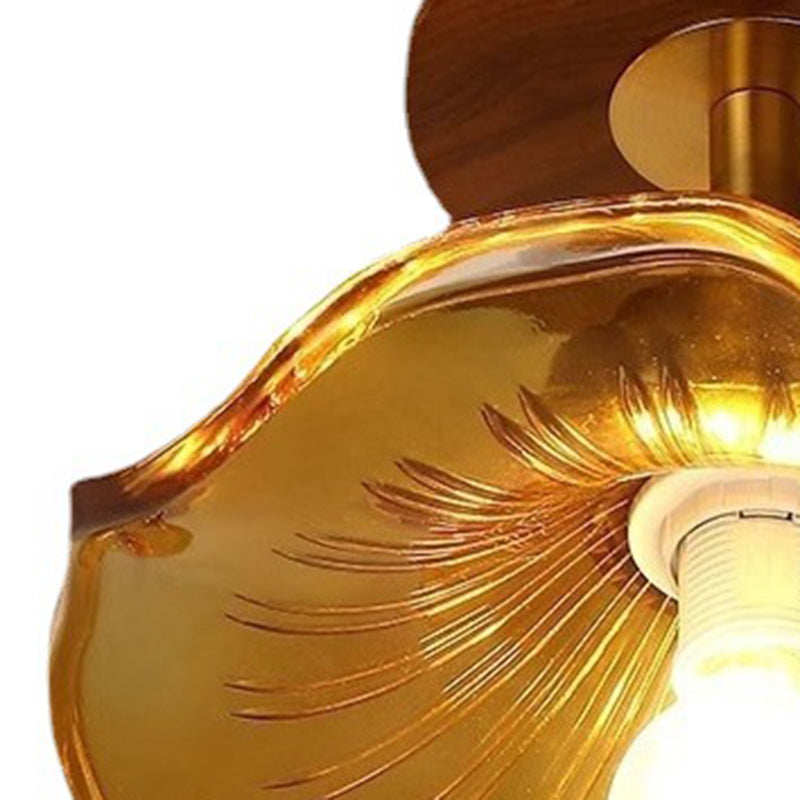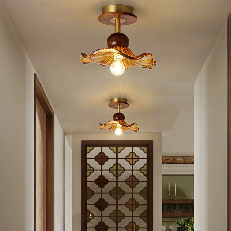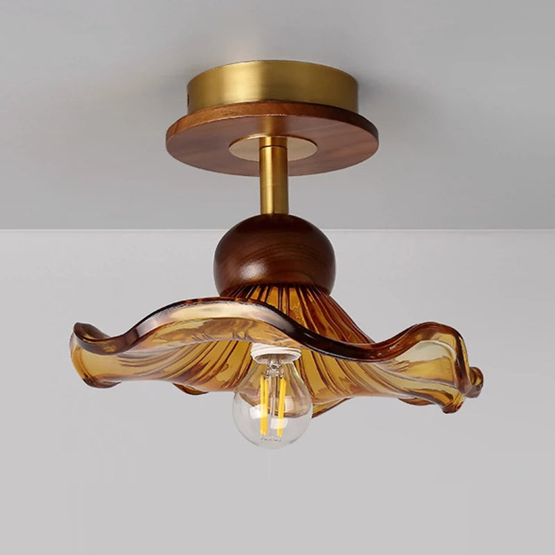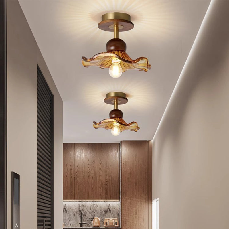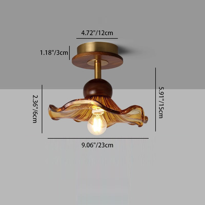 مصباح سقف فرنسي تقليدي من الحديد الزهري الزجاجي، مزود بمصباح واحد، مثبت بشكل نصف مسطح، لغرفة المعيشة