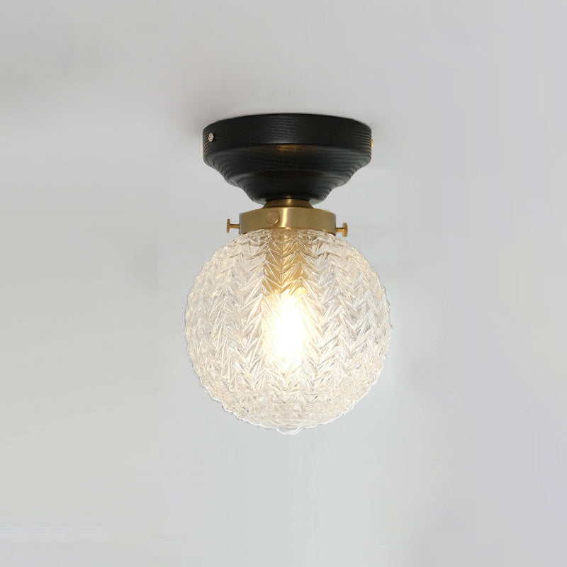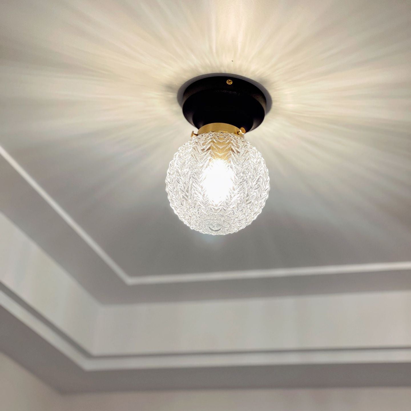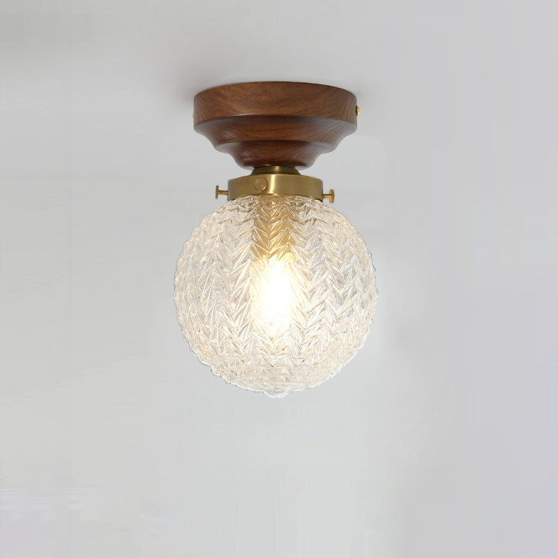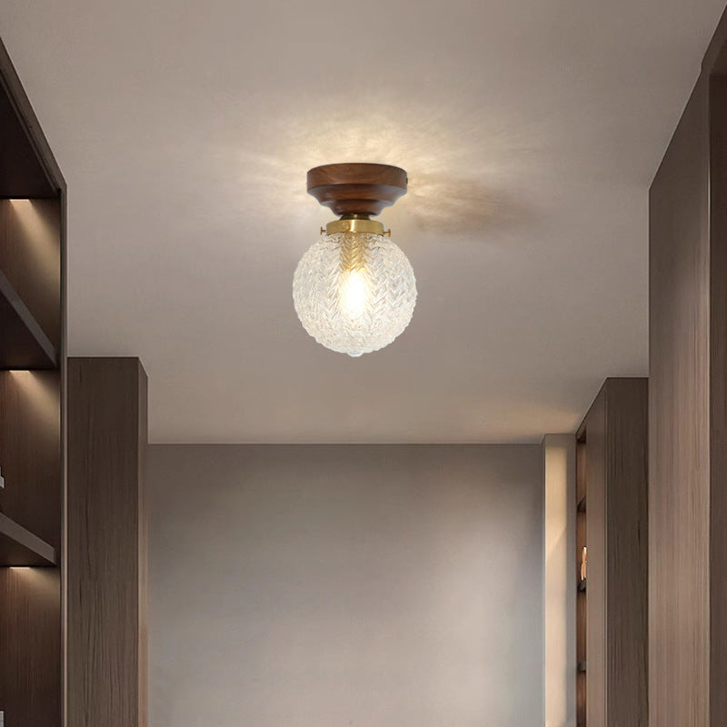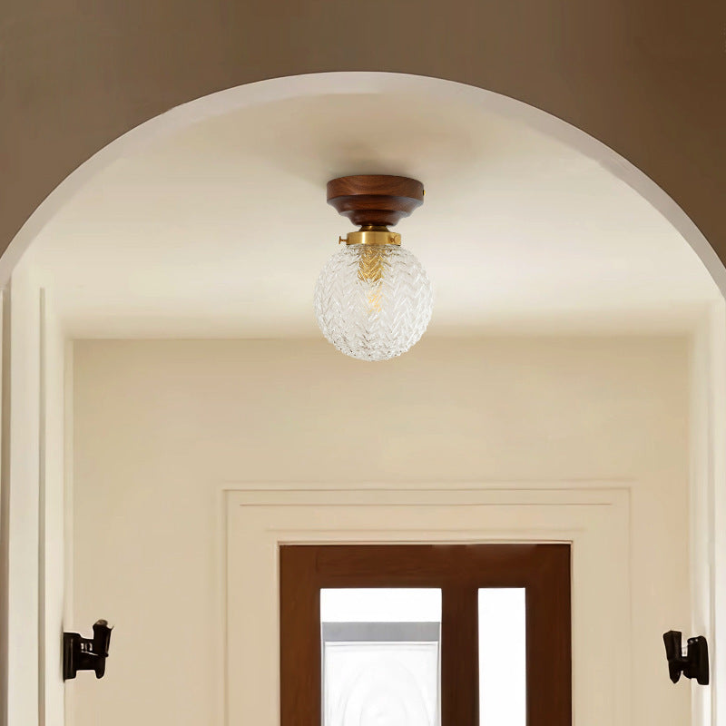 مصباح سقف فرنسي تقليدي مصنوع من خشب وزجاج وأوراق شجر، مزود بمصباح واحد، مثبت بشكل نصف مسطح، لغرفة المعيشة