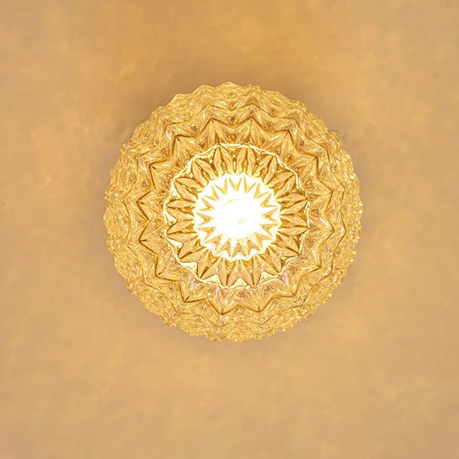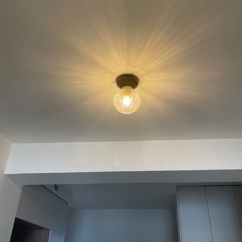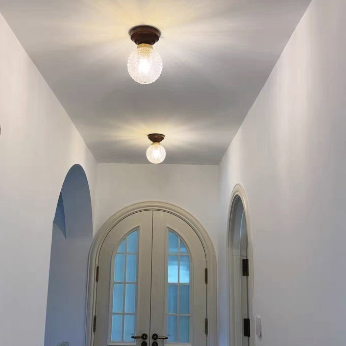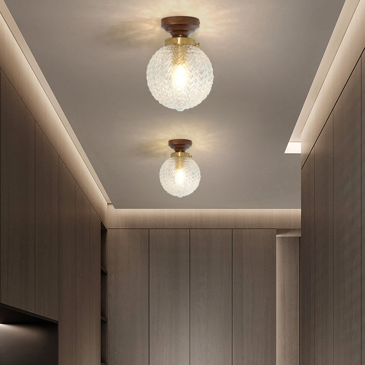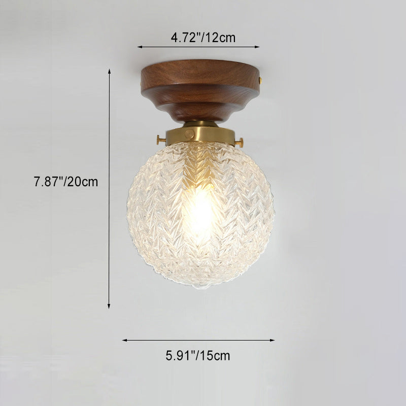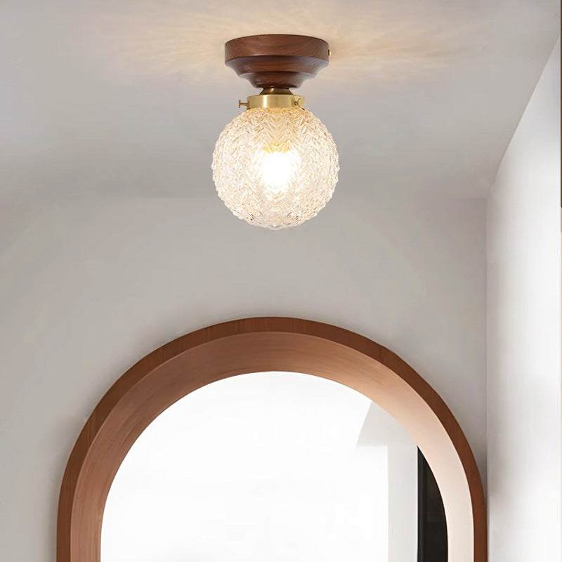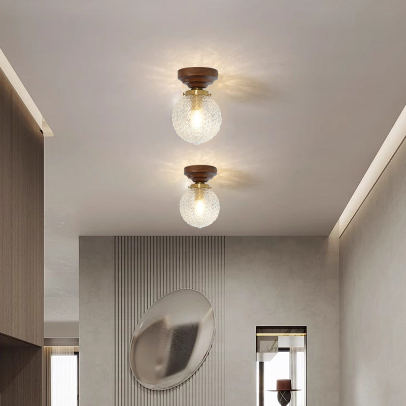 مصباح سقف فرنسي تقليدي مصنوع من خشب وزجاج وأوراق شجر، مزود بمصباح واحد، مثبت بشكل نصف مسطح، لغرفة المعيشة