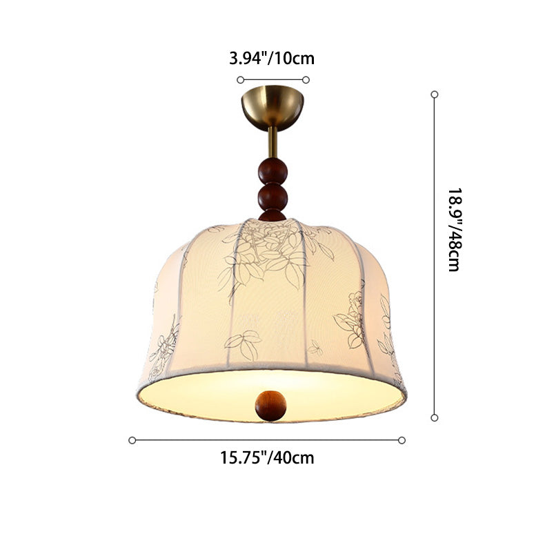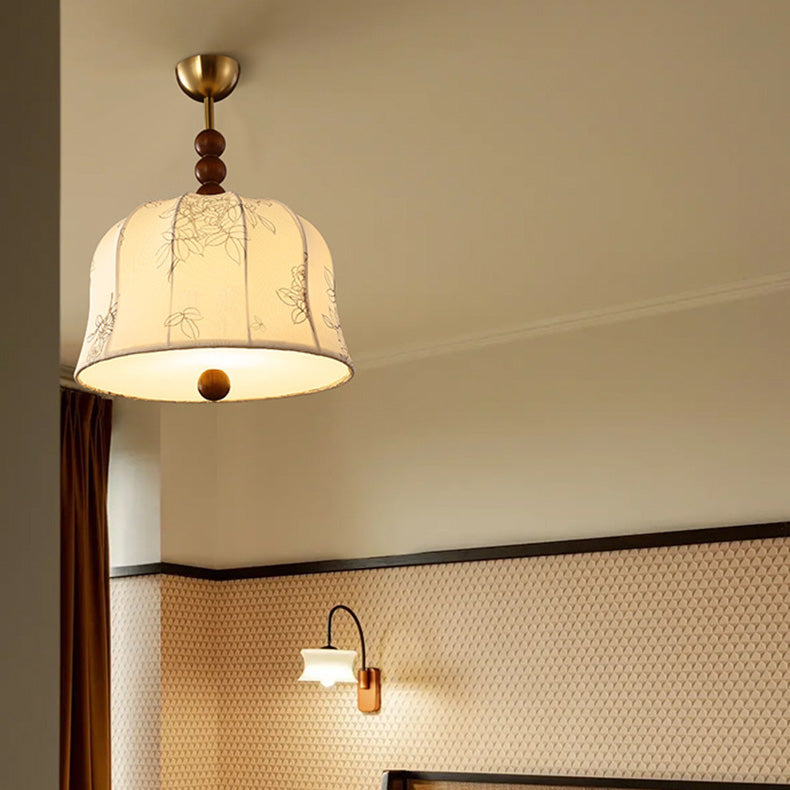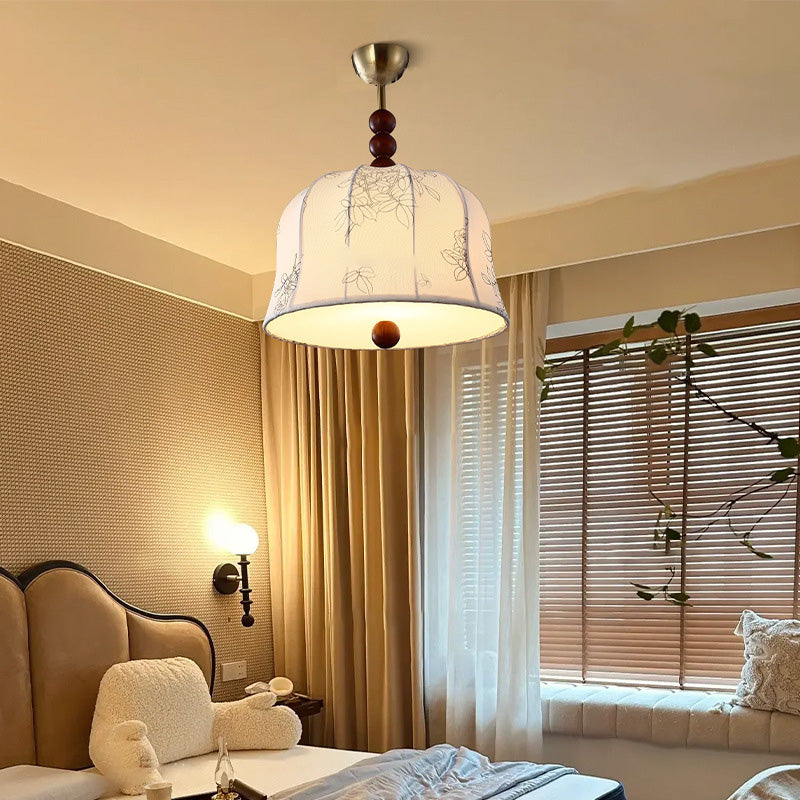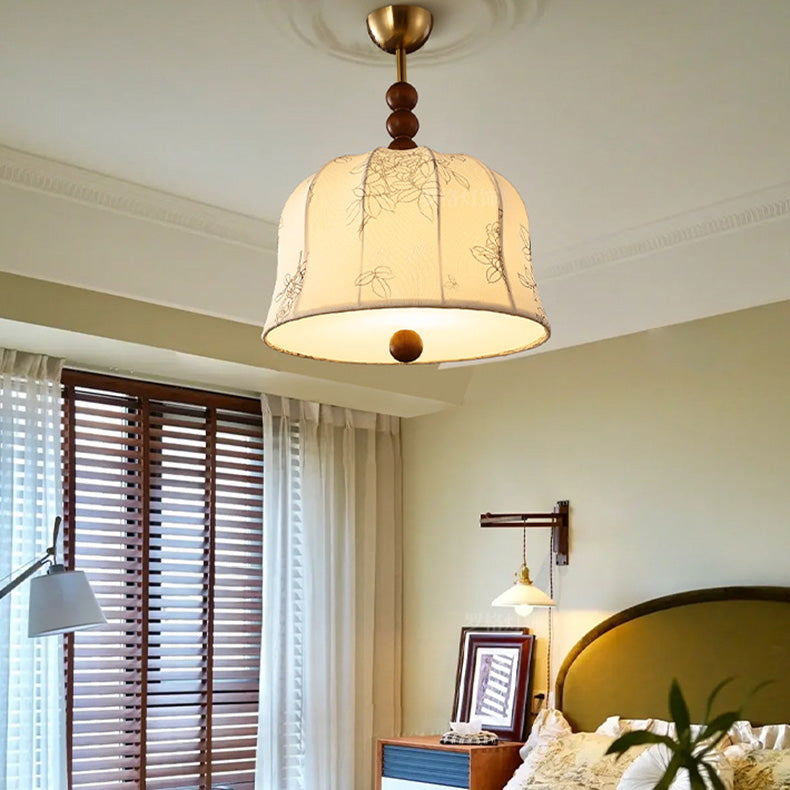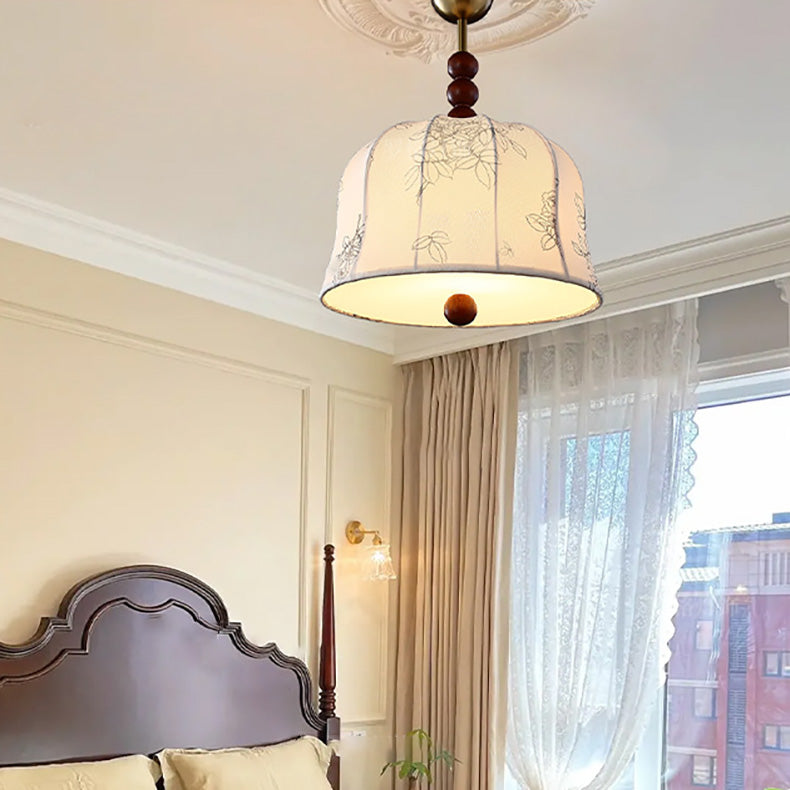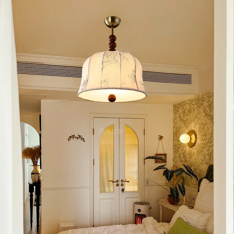 مصباح معلق دائري رومانسي فرنسي تقليدي مصنوع من القماش الخشبي والمعدني لغرفة النوم