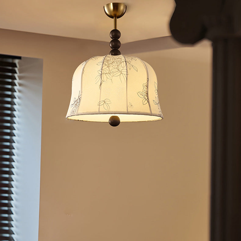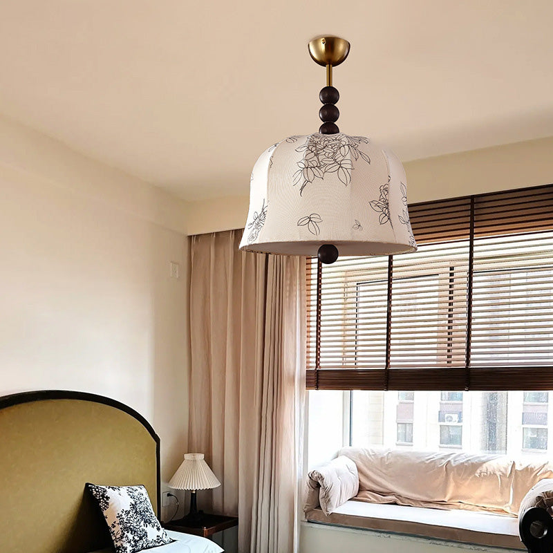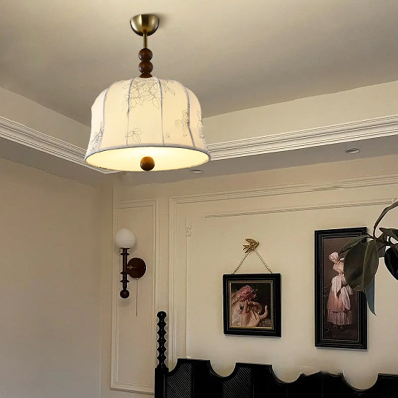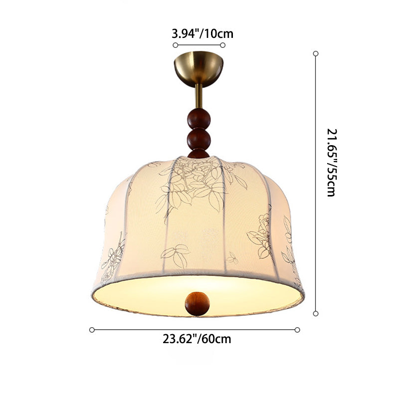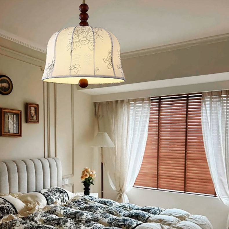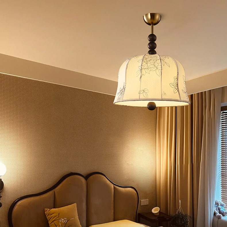 مصباح معلق دائري رومانسي فرنسي تقليدي مصنوع من القماش الخشبي والمعدني لغرفة النوم