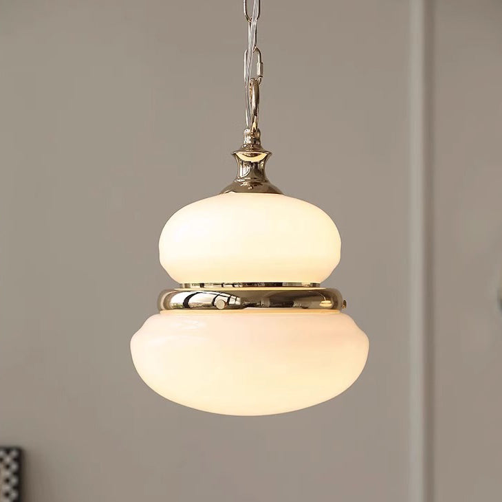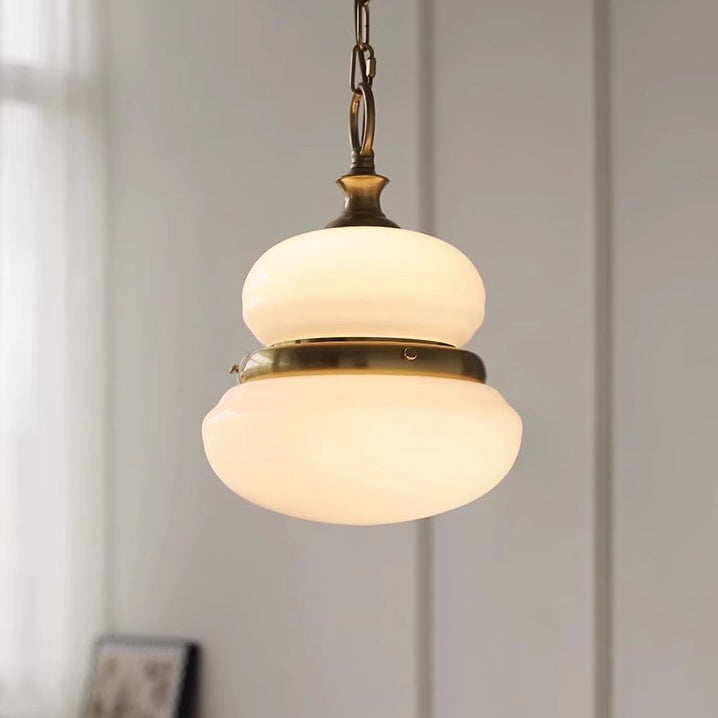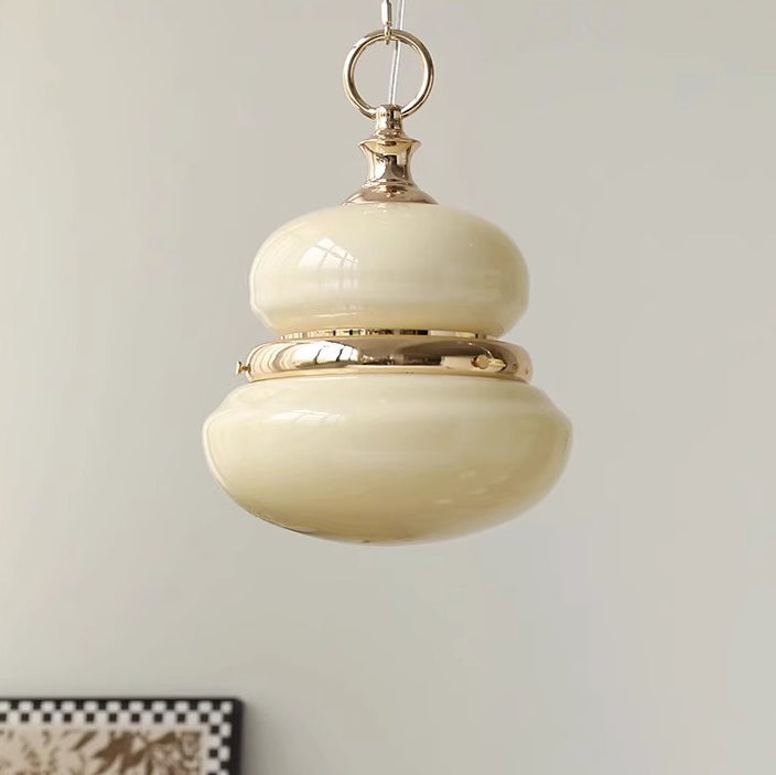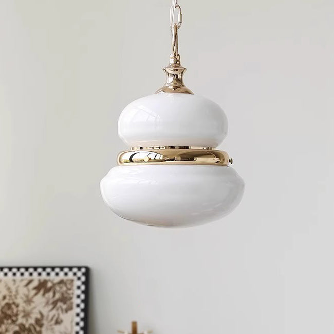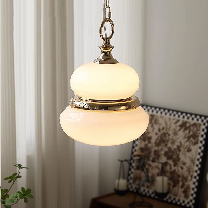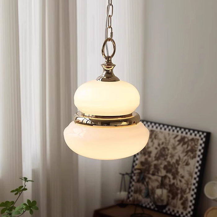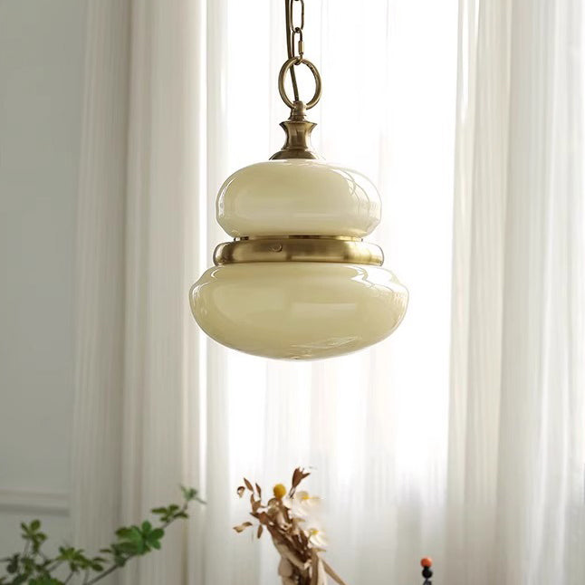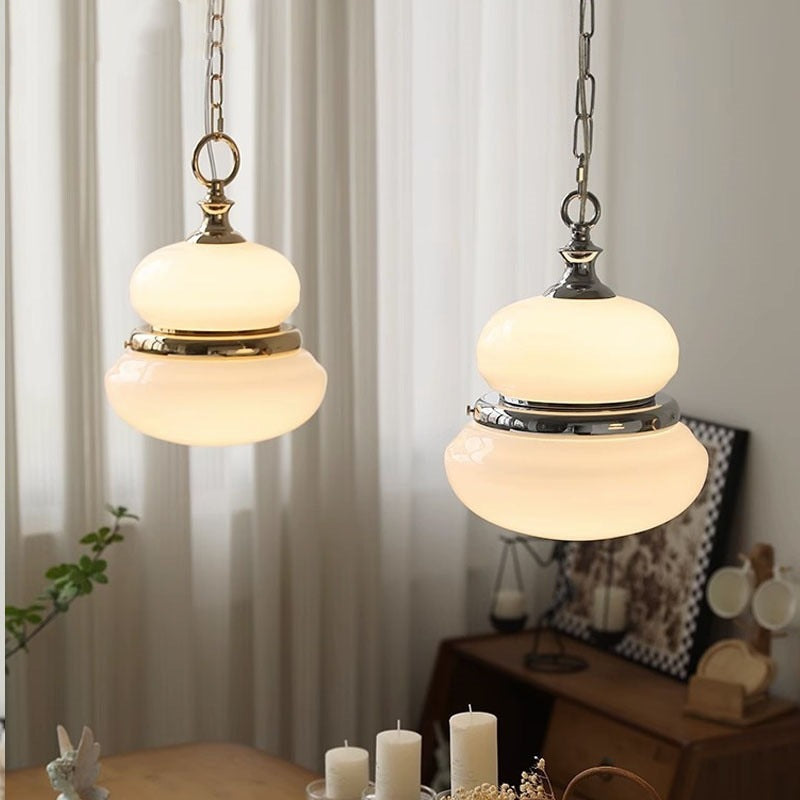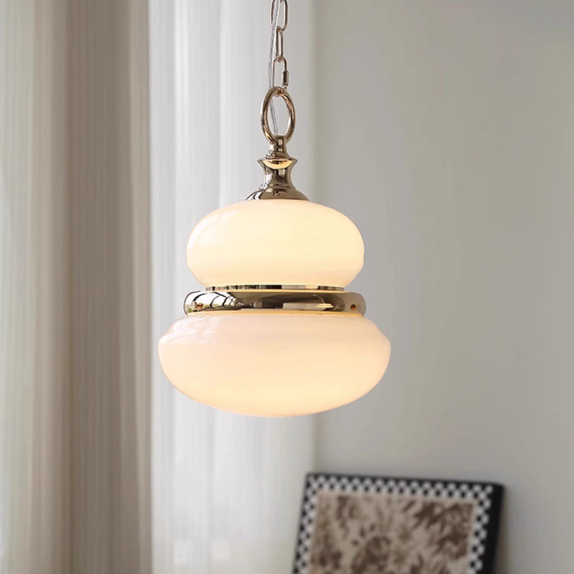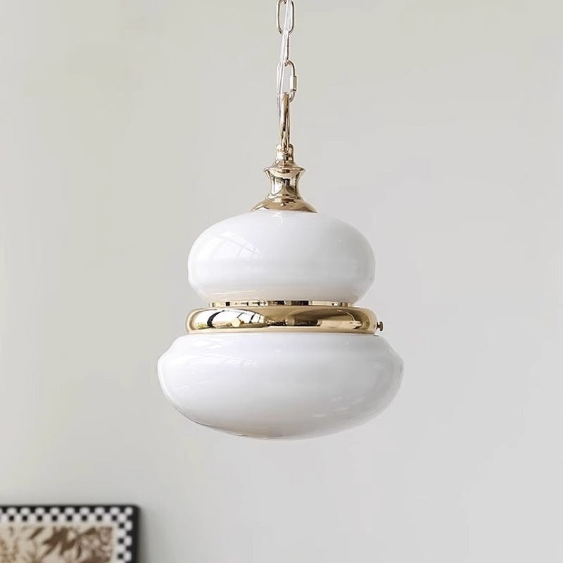 مصباح معلق فرنسي تقليدي على شكل قرع دائري مصنوع من سبائك زجاجية، مزود بمصباح واحد لغرفة المعيشة