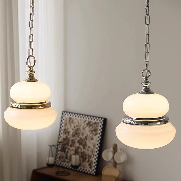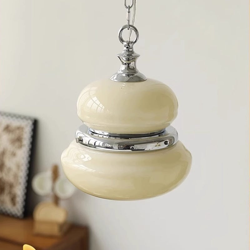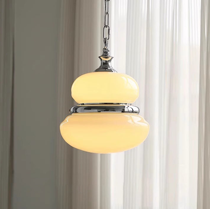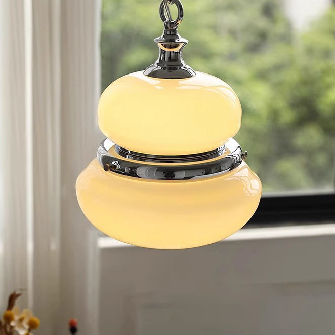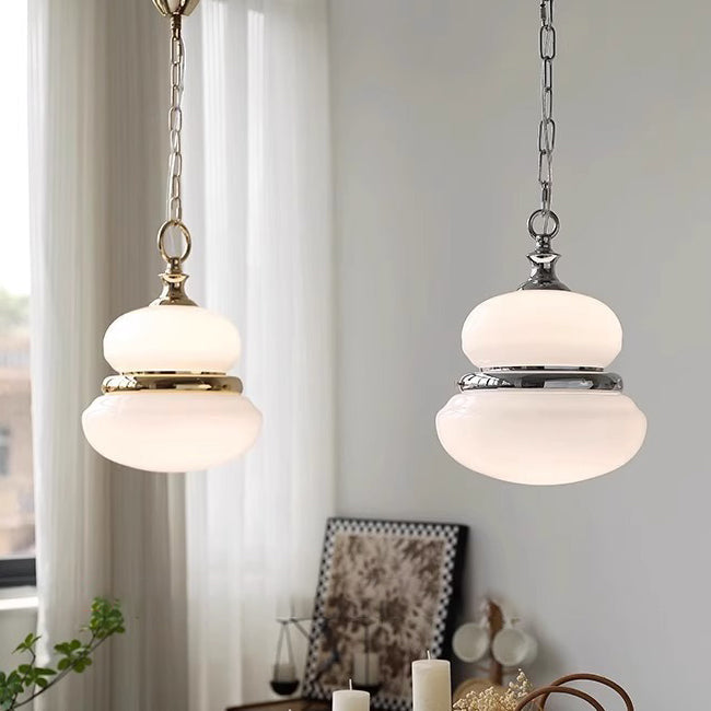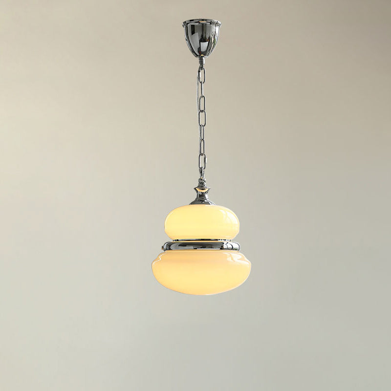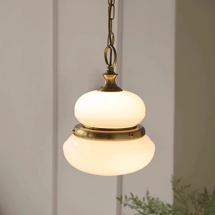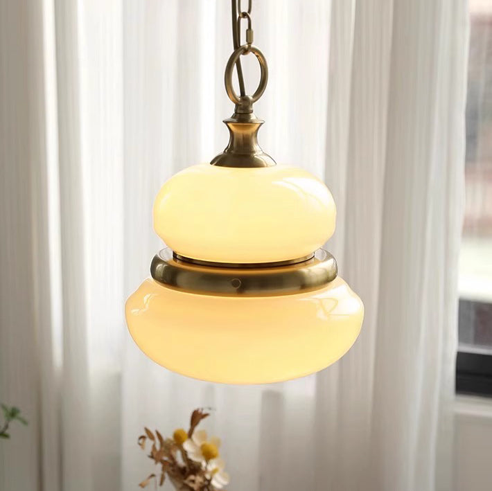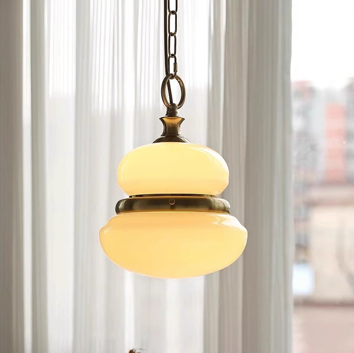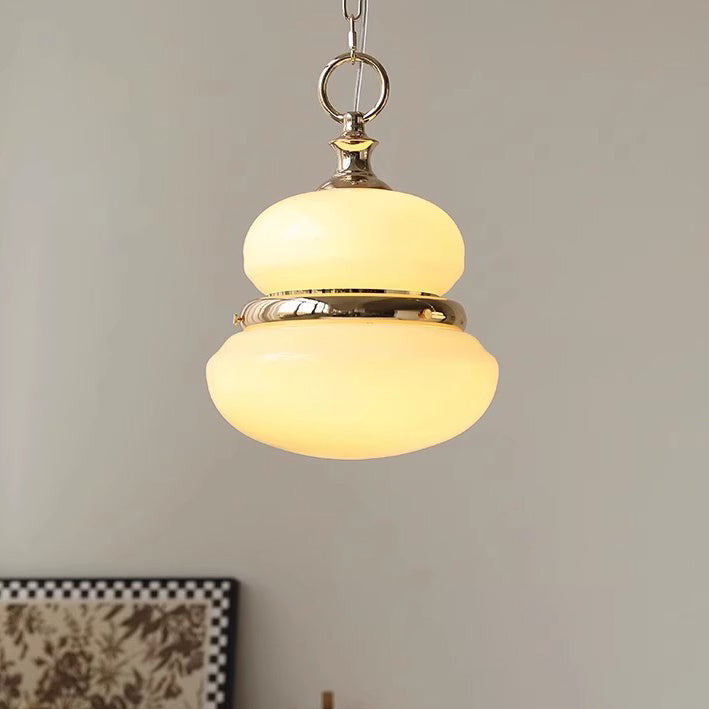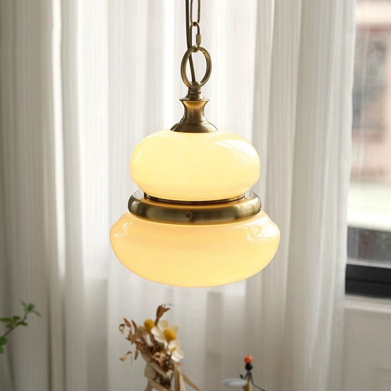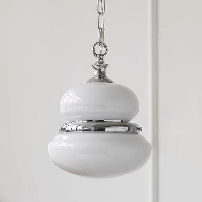 مصباح معلق فرنسي تقليدي على شكل قرع دائري مصنوع من سبائك زجاجية، مزود بمصباح واحد لغرفة المعيشة