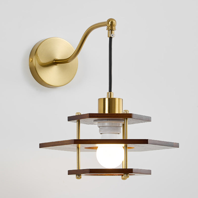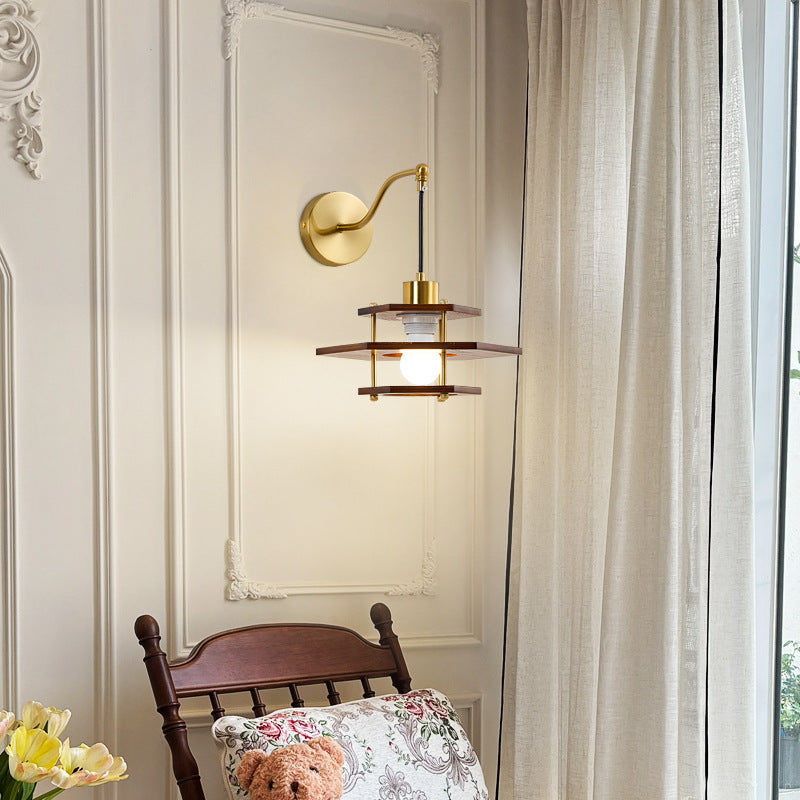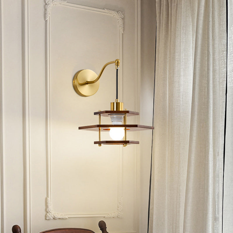 مصباح حائطي فرنسي تقليدي دائري سداسي الشكل من خشب الدردار - مصباح حائطي لغرفة المعيشة