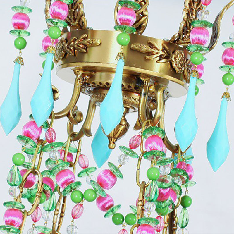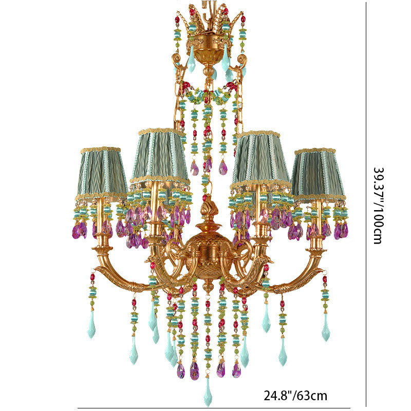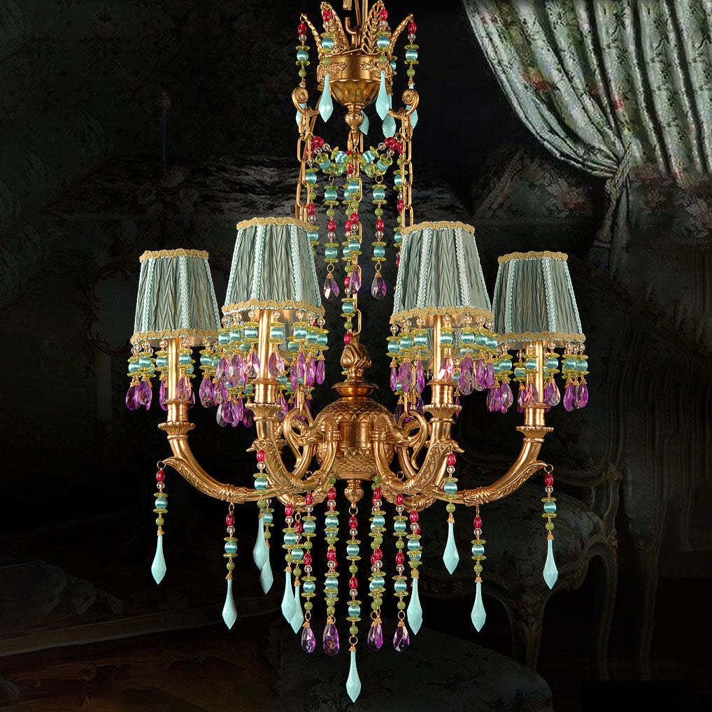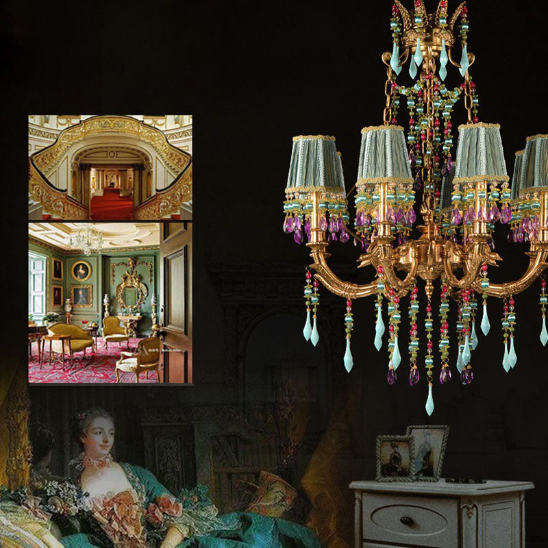 ثريا فرنسية تقليدية دائرية شبه منحرفة مصنوعة بالكامل من النحاس، 6/8 ضوء لغرفة المعيشة