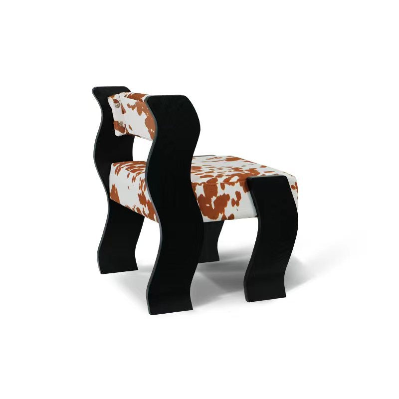 Traditional French Square Cylinder Wave Frame Fabric Willow Wood Vanity Stool Backrest Armless For Bedroom