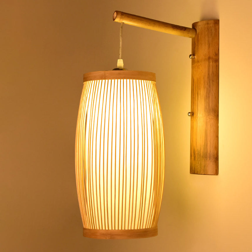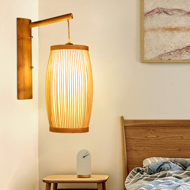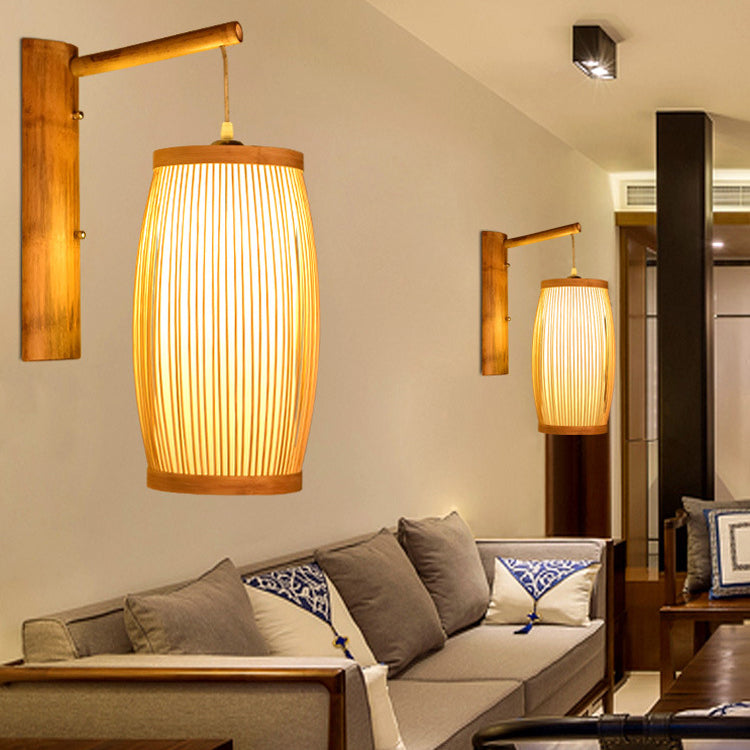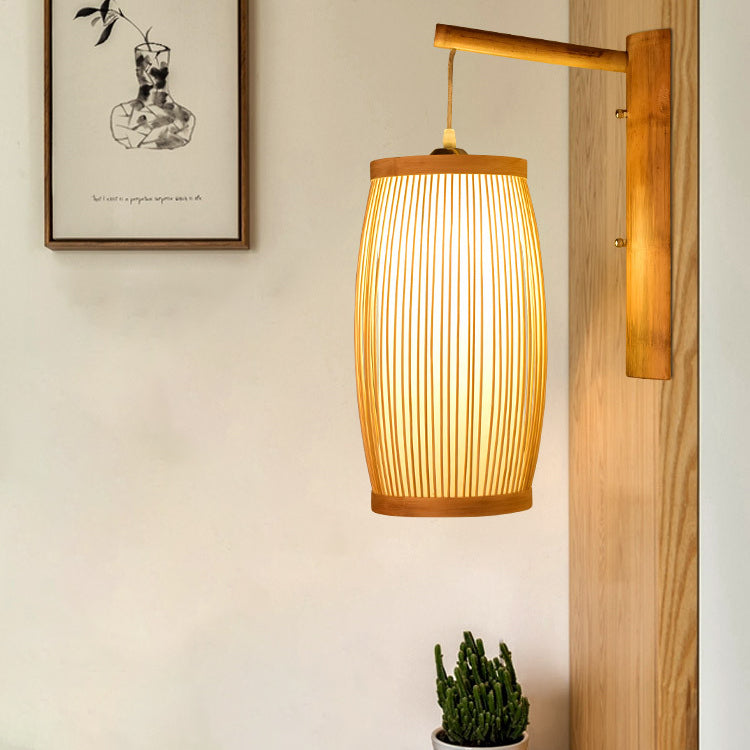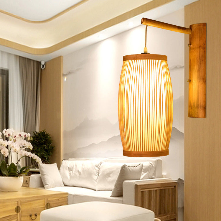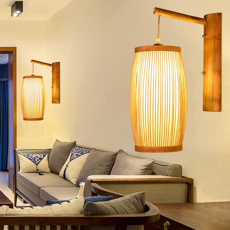 مصباح حائطي تقليدي ياباني مكعب من الخيزران، مزود بإضاءة واحدة، لغرفة المعيشة