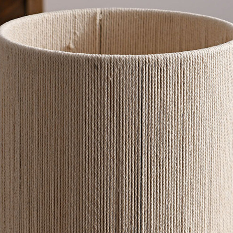 Traditional Japanese Cylinder Iron Wood Fabric 1-Light Table Lamp For Living Room