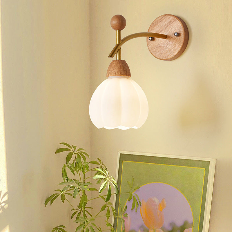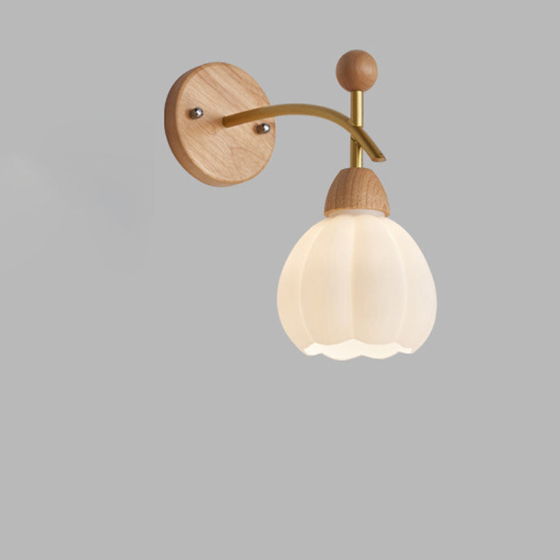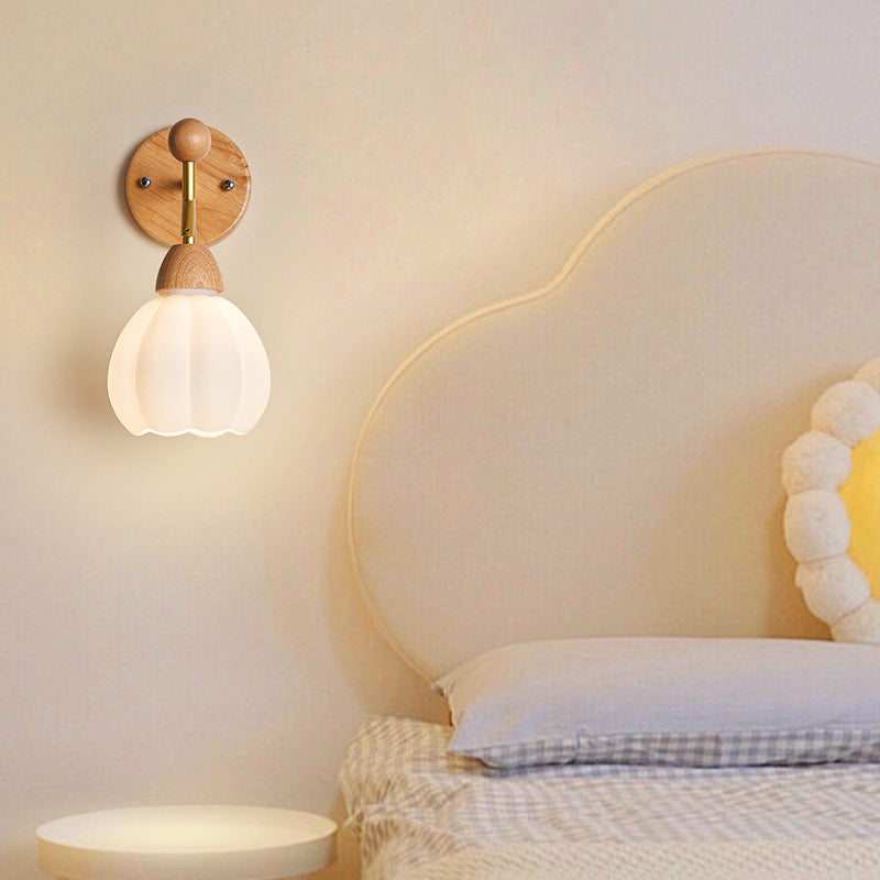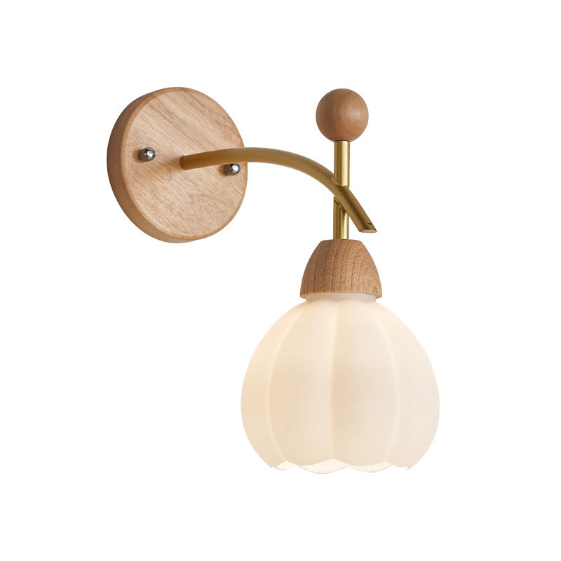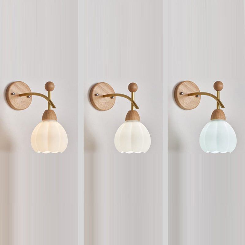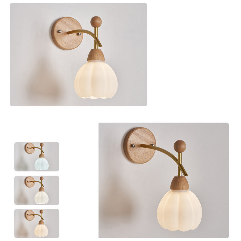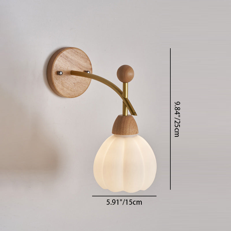 مصباح حائطي ياباني تقليدي على شكل قرع مستدير مصنوع من خشب المطاط والزجاج، مزود بإضاءة واحدة لغرفة المعيشة