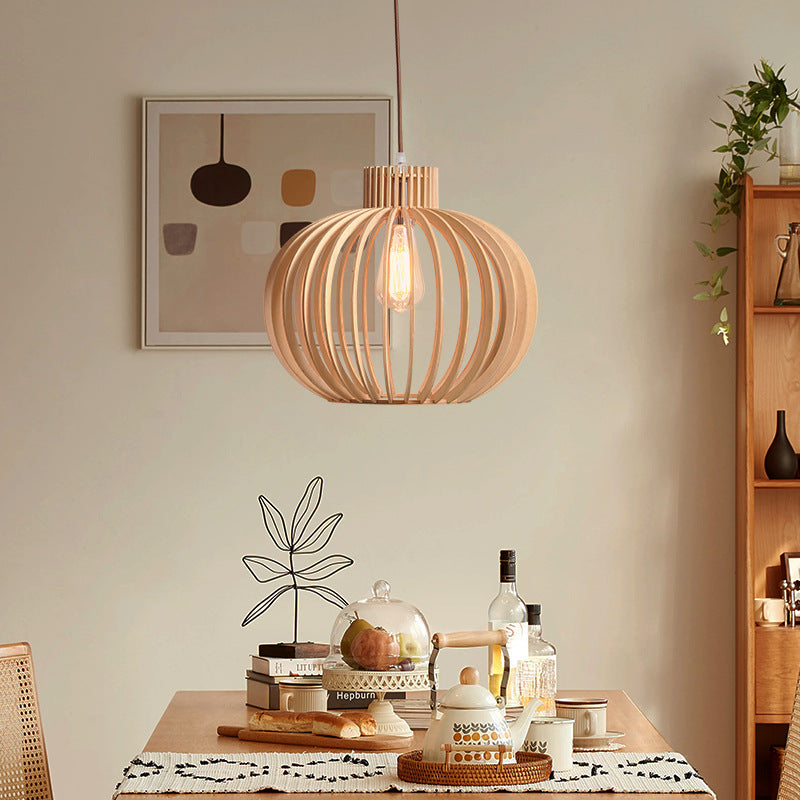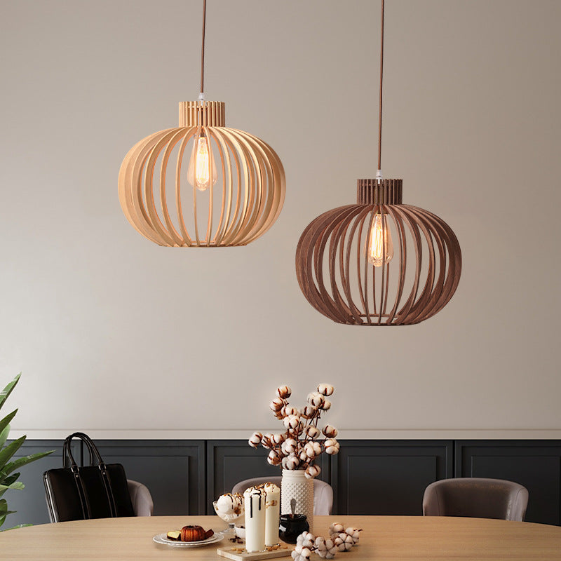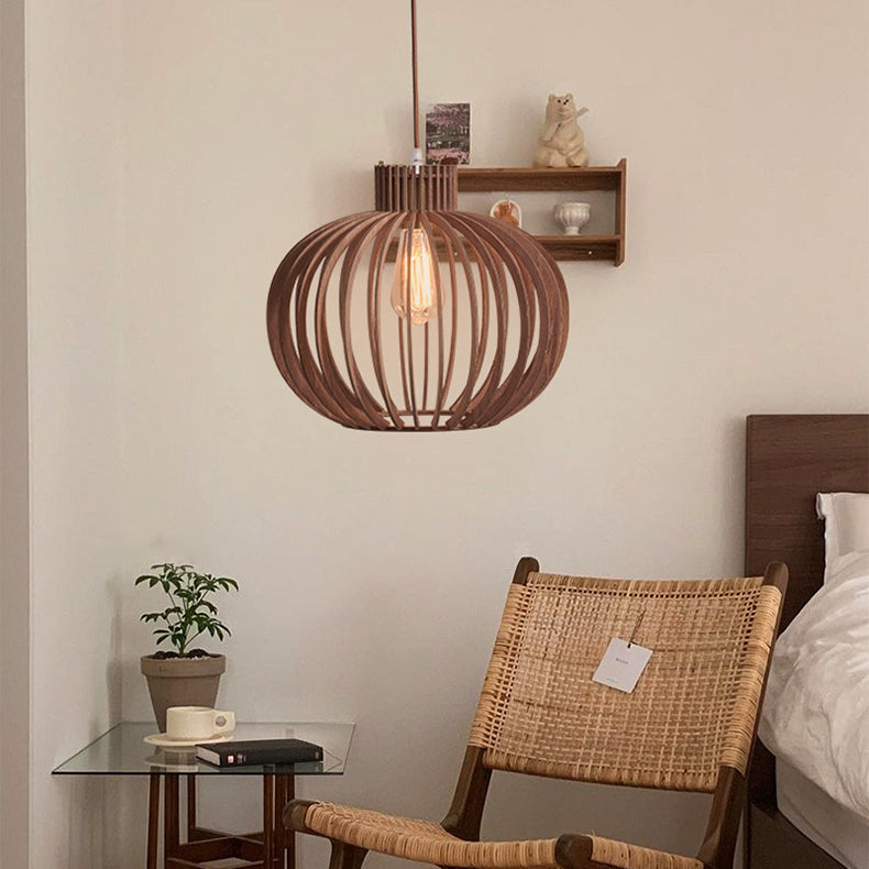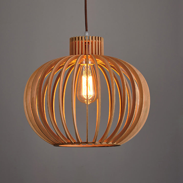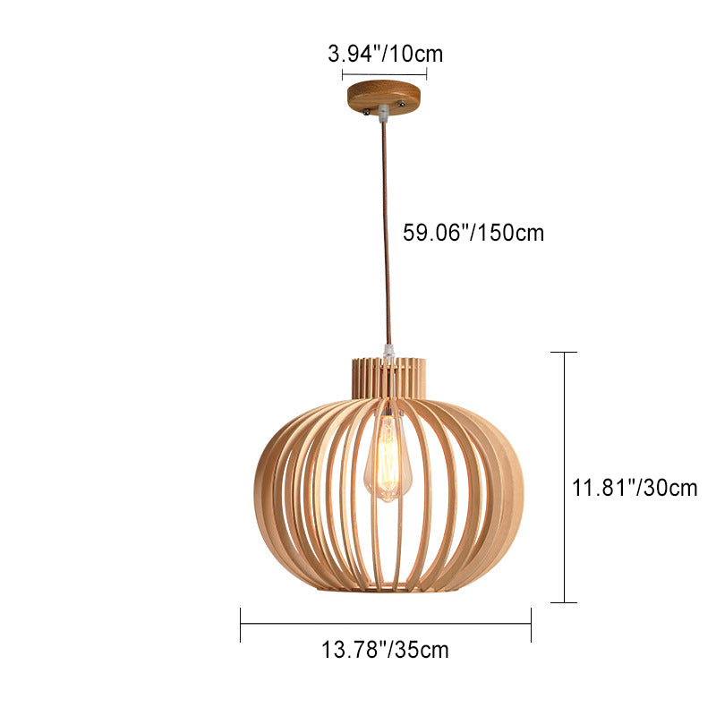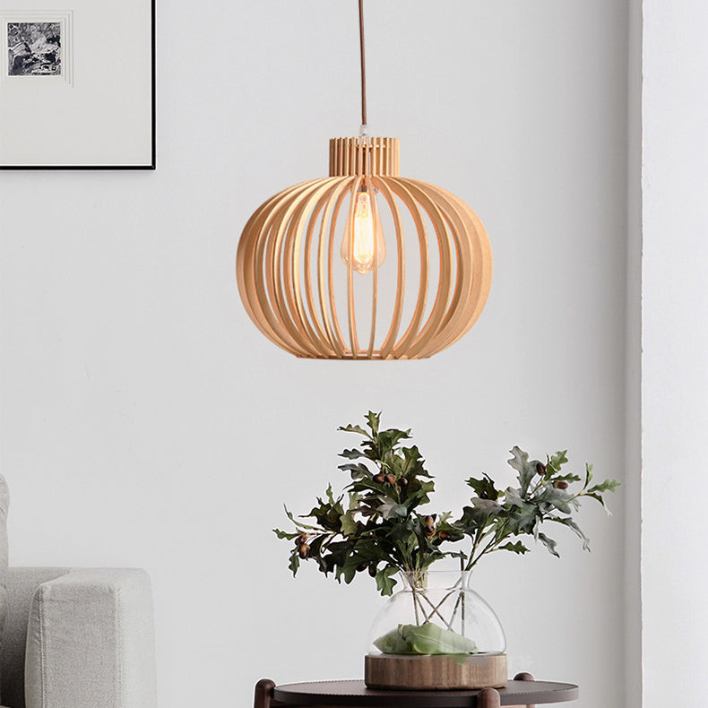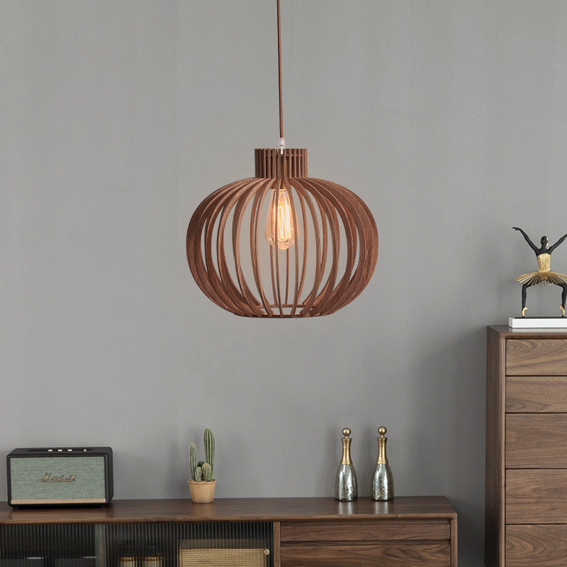 مصباح معلق دائري تقليدي ياباني على شكل قرع من الخشب الصلب، 1 مصباح لغرفة الطعام