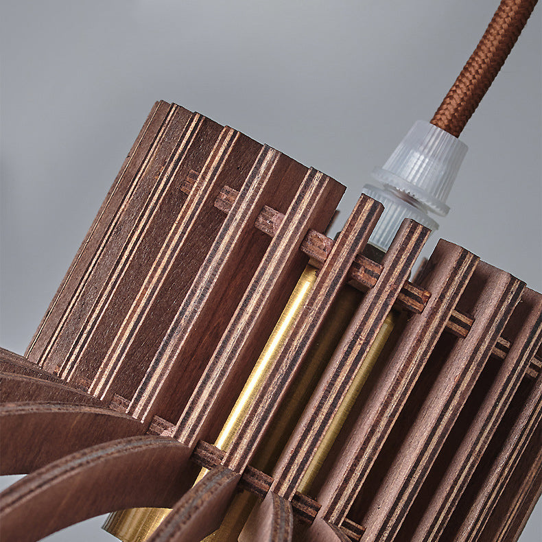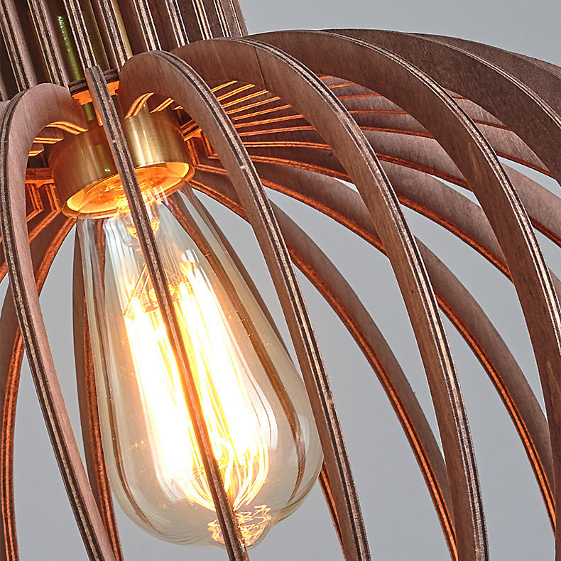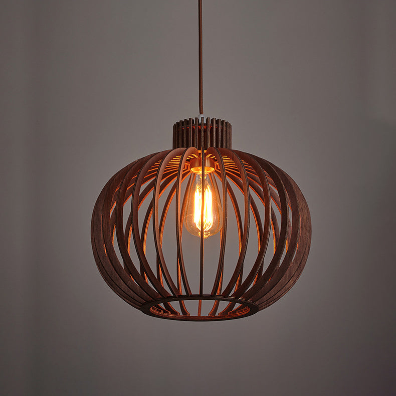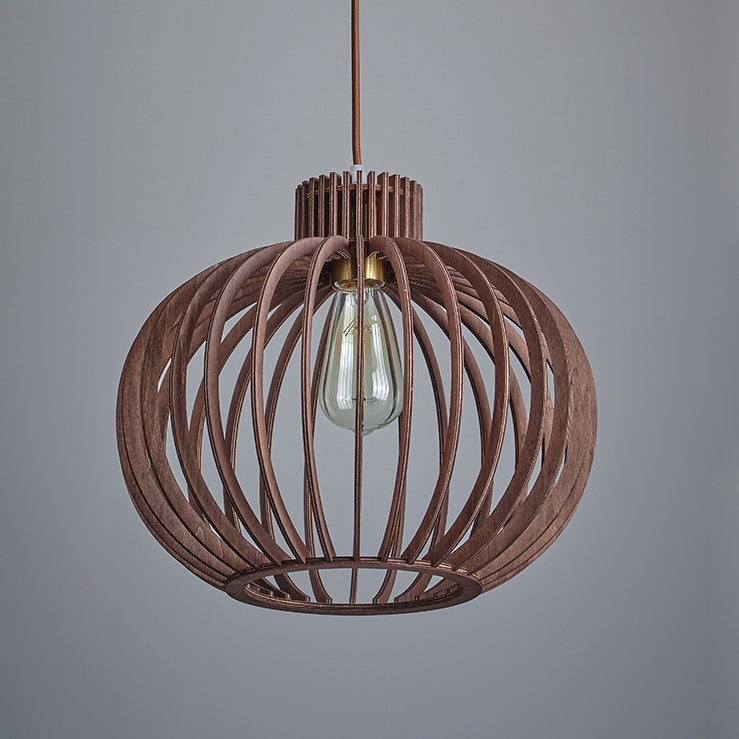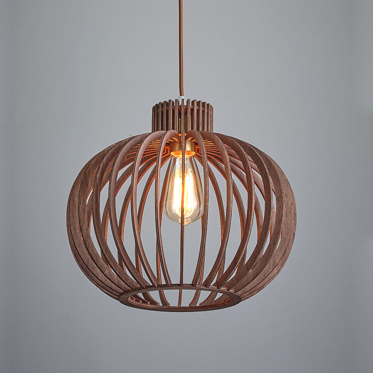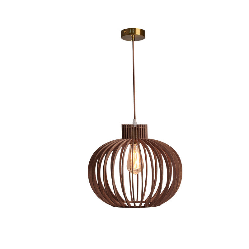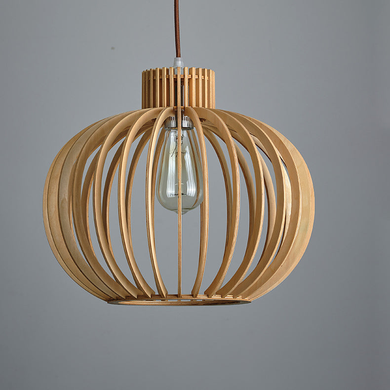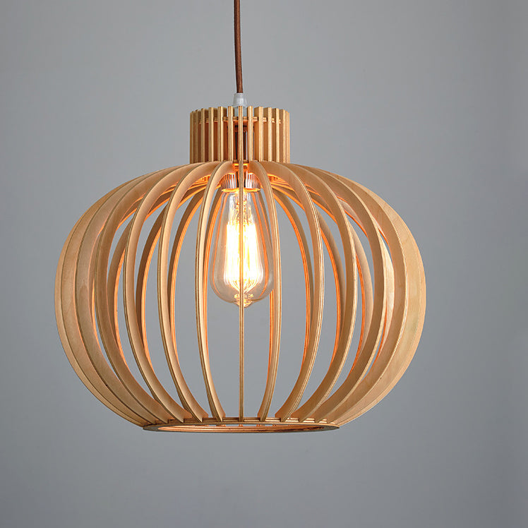 مصباح معلق دائري تقليدي ياباني على شكل قرع من الخشب الصلب، 1 مصباح لغرفة الطعام