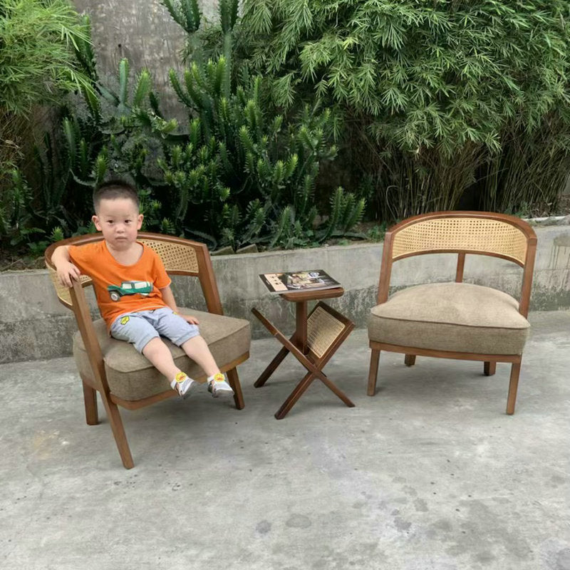Traditional Japanese Rattan & Wood Weaving Accent Chair With Backrest For Living Room And Dining Room