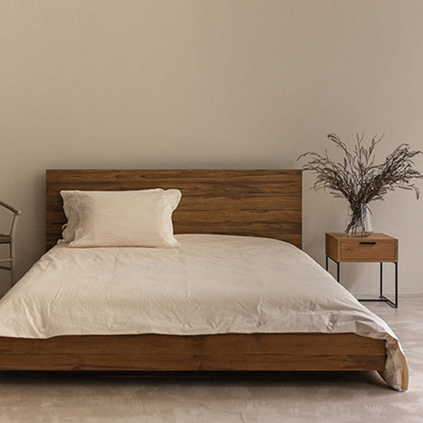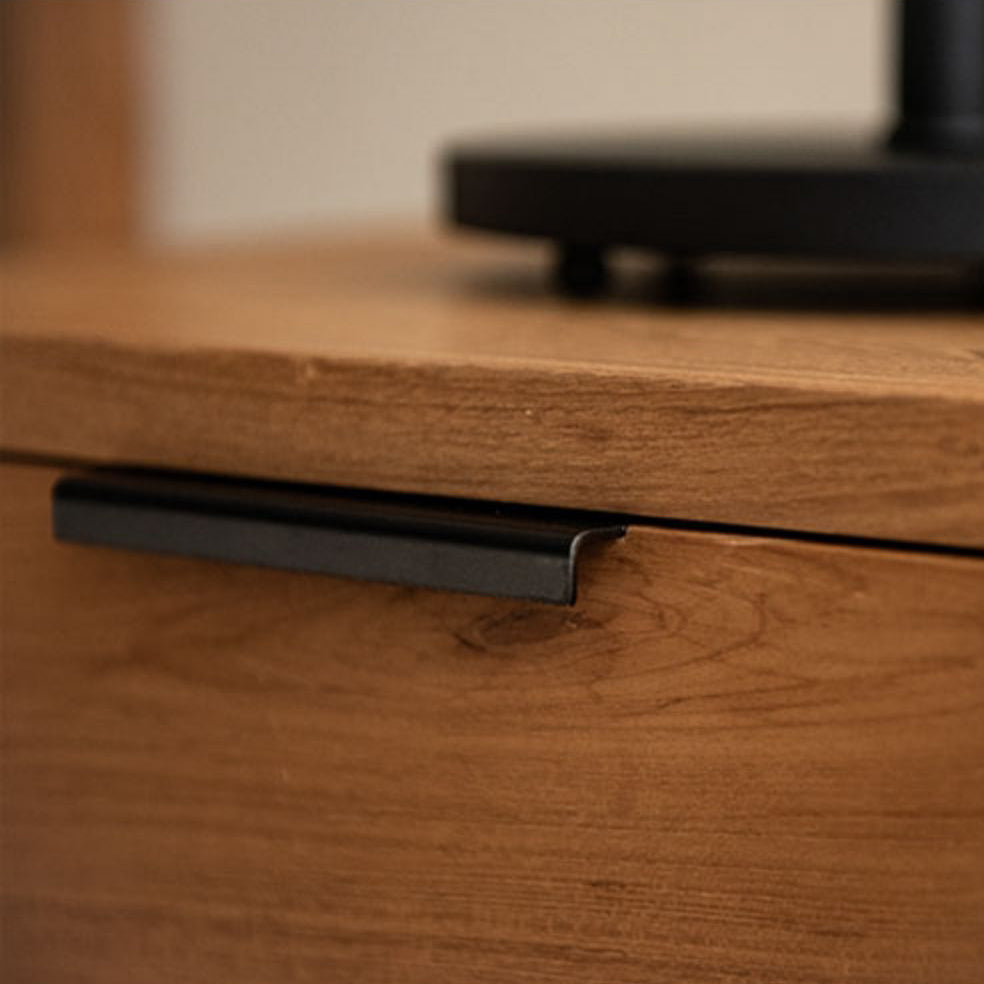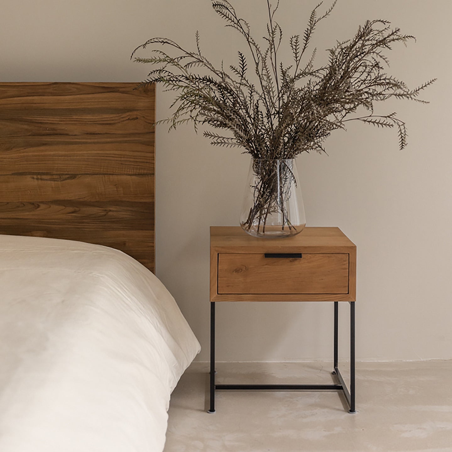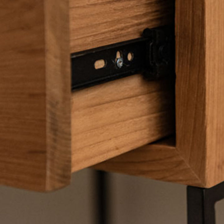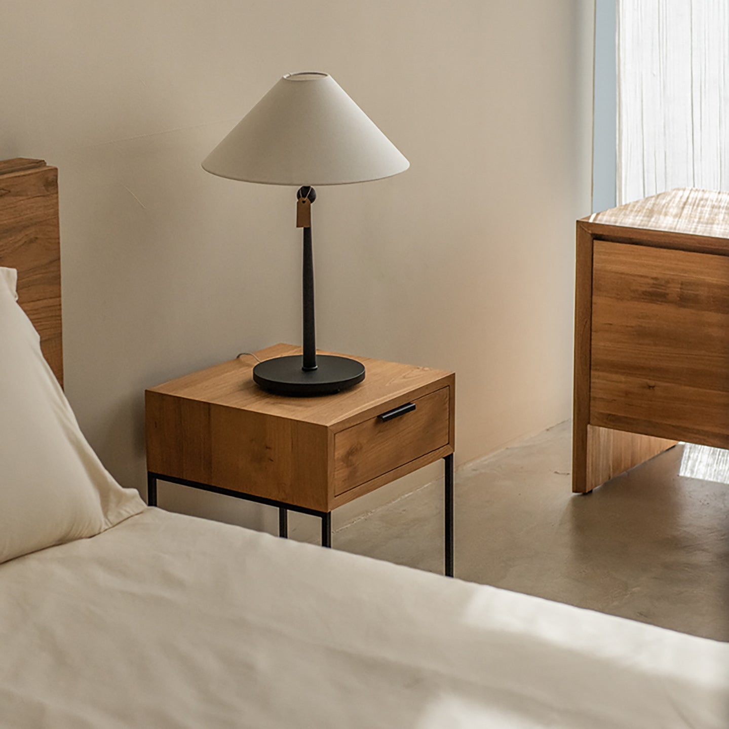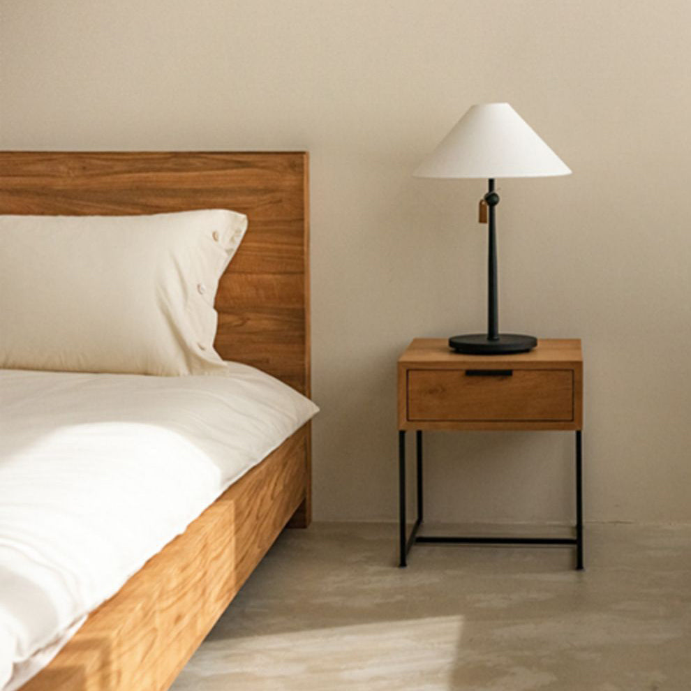 Traditional Japanese Solid Wood Iron Base Rectangular Nightstand 1-Drawer For Bedroom