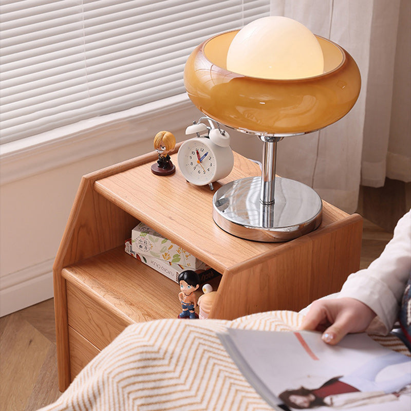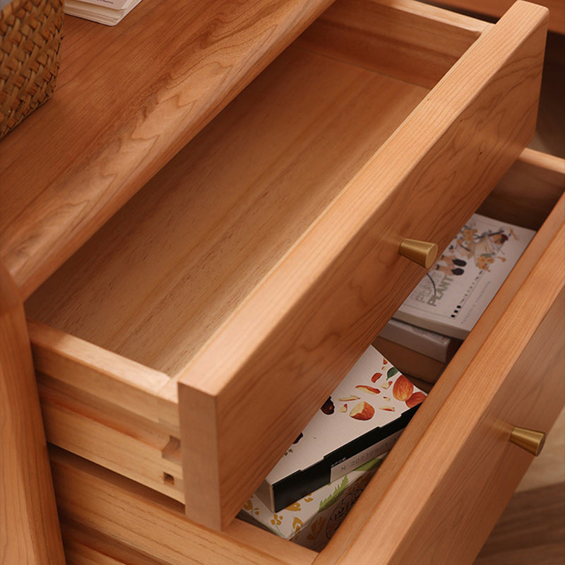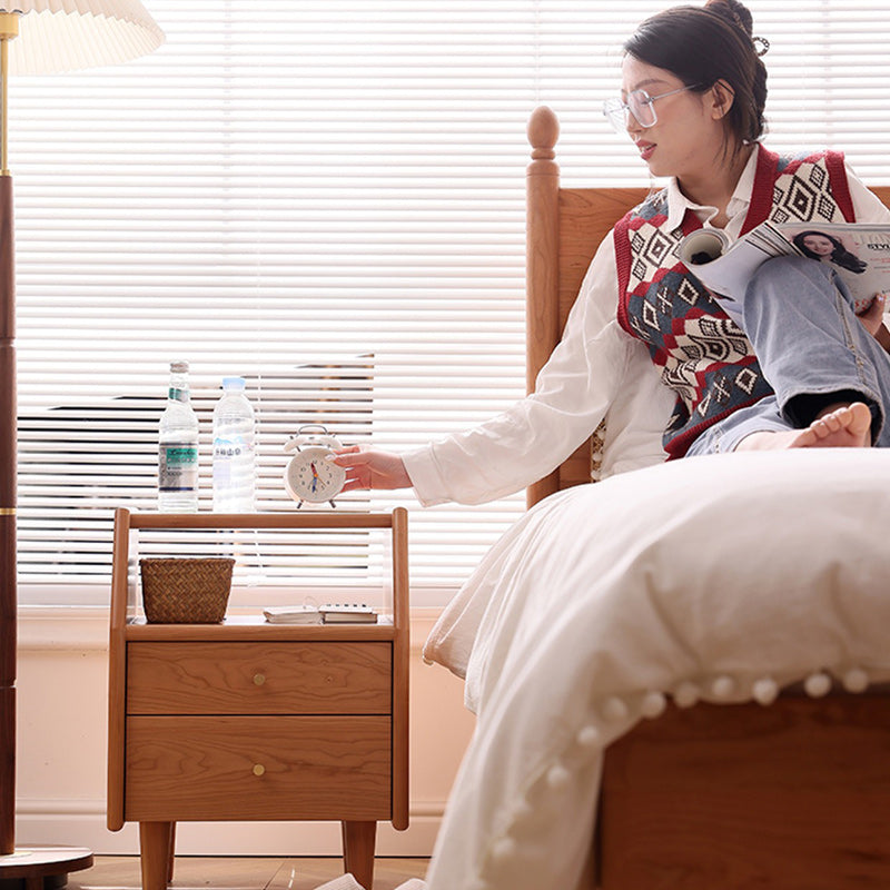 Traditional Japanese Trapezoidal Rectangular Solid Wood Nightstand 2-Tier 2-Drawer For Bedroom