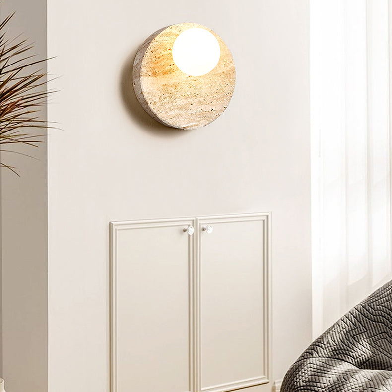 مصباح حائط دائري أصفر من وابي سابي ياباني تقليدي لغرفة النوم، مزود بإضاءة واحدة