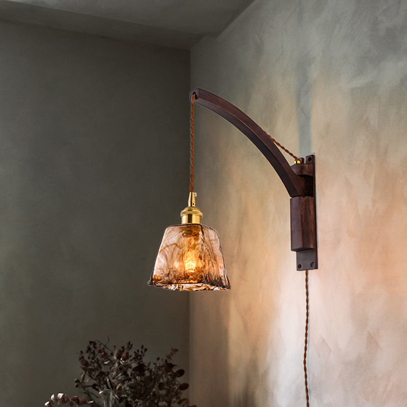 مصباح حائطي تقليدي ياباني من خشب الجوز والسيراميك، منشوري مخروطي، مزود بإضاءة واحدة، مناسب لجانب السرير