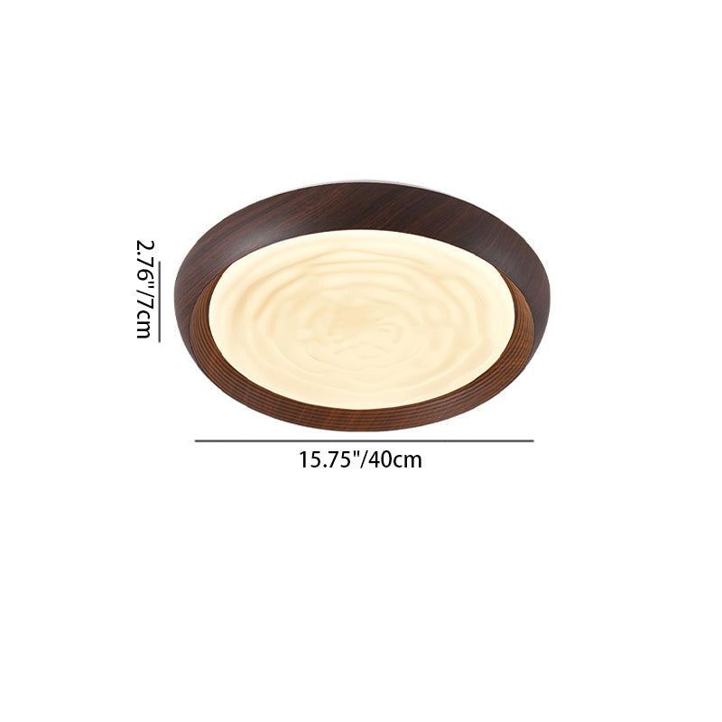 مصباح سقف LED دائري من الحديد المطاوع مصنوع من خشب الجوز الياباني التقليدي لغرفة المعيشة