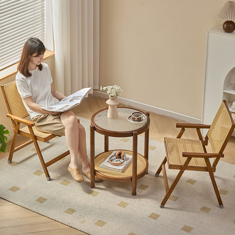 Traditional Rustic Foldable Rectangular Bamboo Polyester Resin Rattan Weaving Dining Chair Backrest Armrest For Dining Room