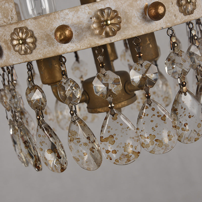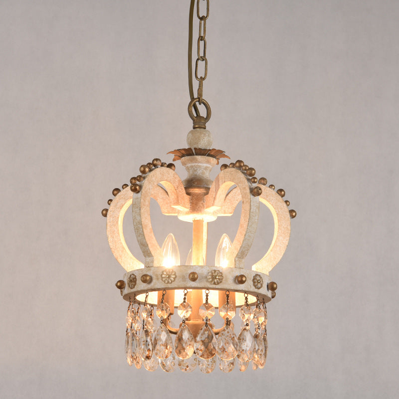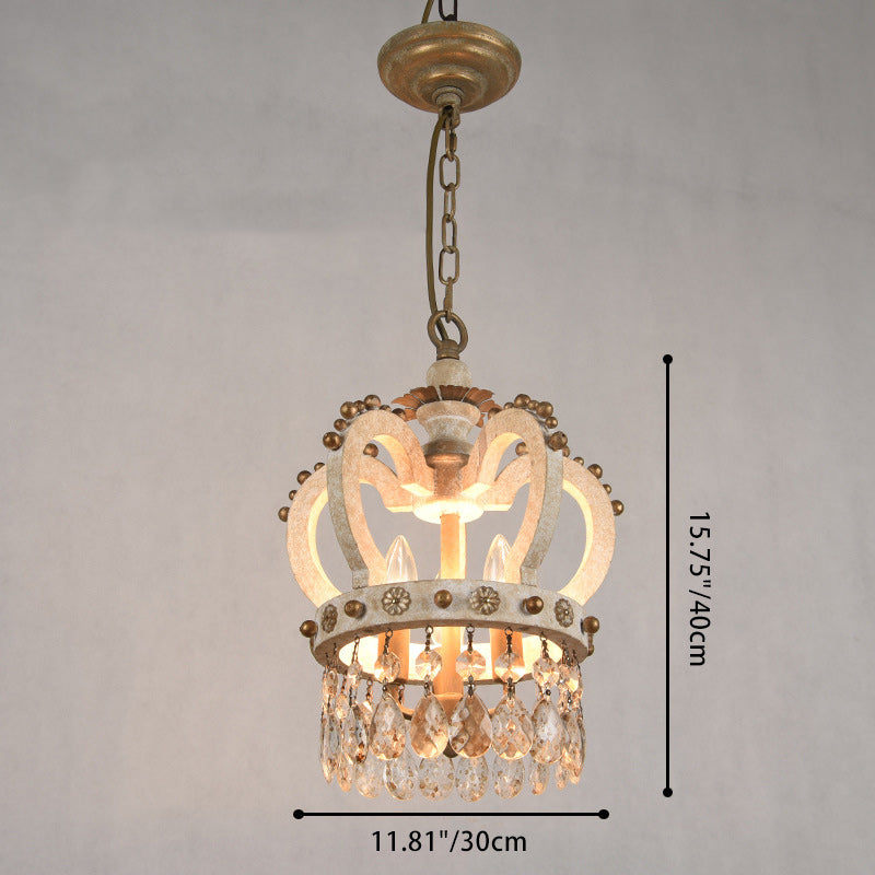 ثريات دائرية تقليدية ريفية من الخشب الصلب والحديد بتصميم تاج عتيق بثلاثة مصابيح لغرفة النوم