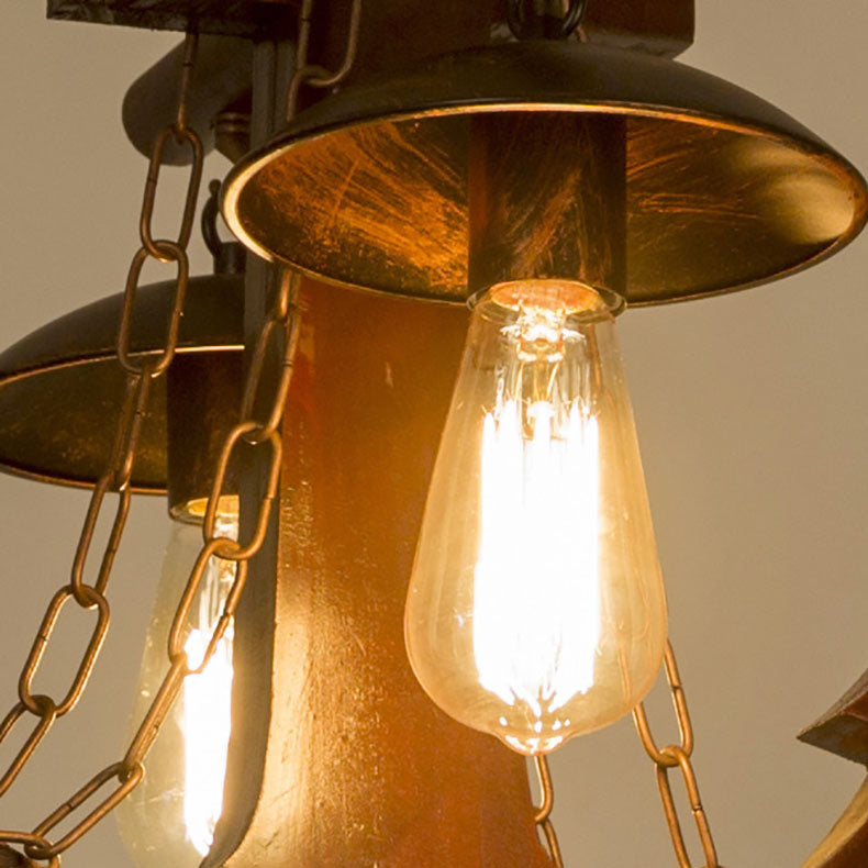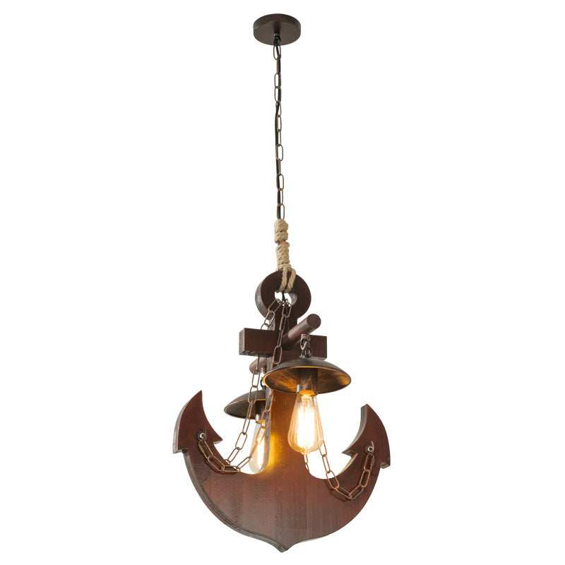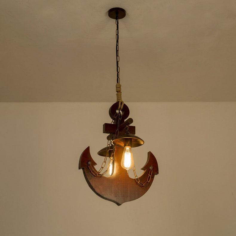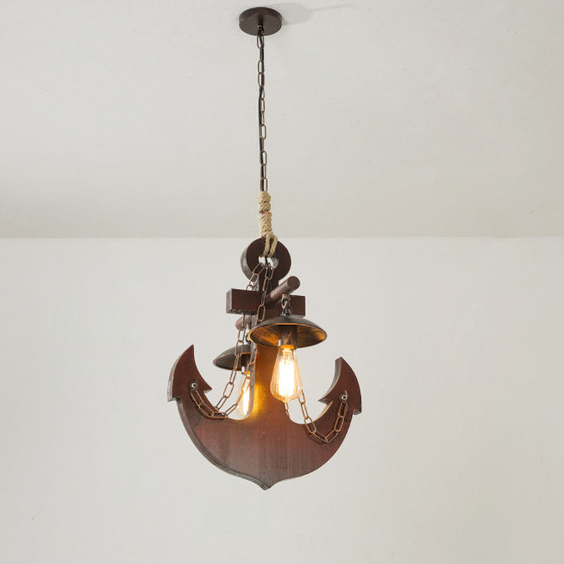 مصباح معلق تقليدي ريفي من الخشب الصلب مع دفة حديدية مكون من مصباحين لغرفة الطعام
