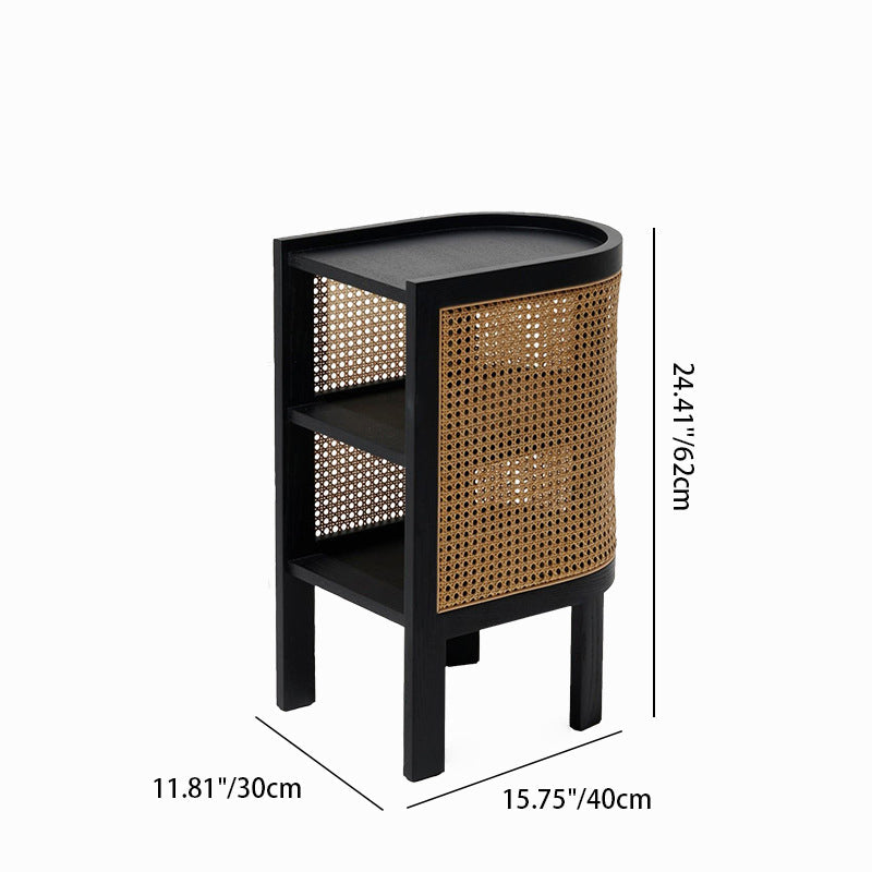 Traditional Rustic Wood Rattan Nightstand 2 - Cabinet For Bedroom