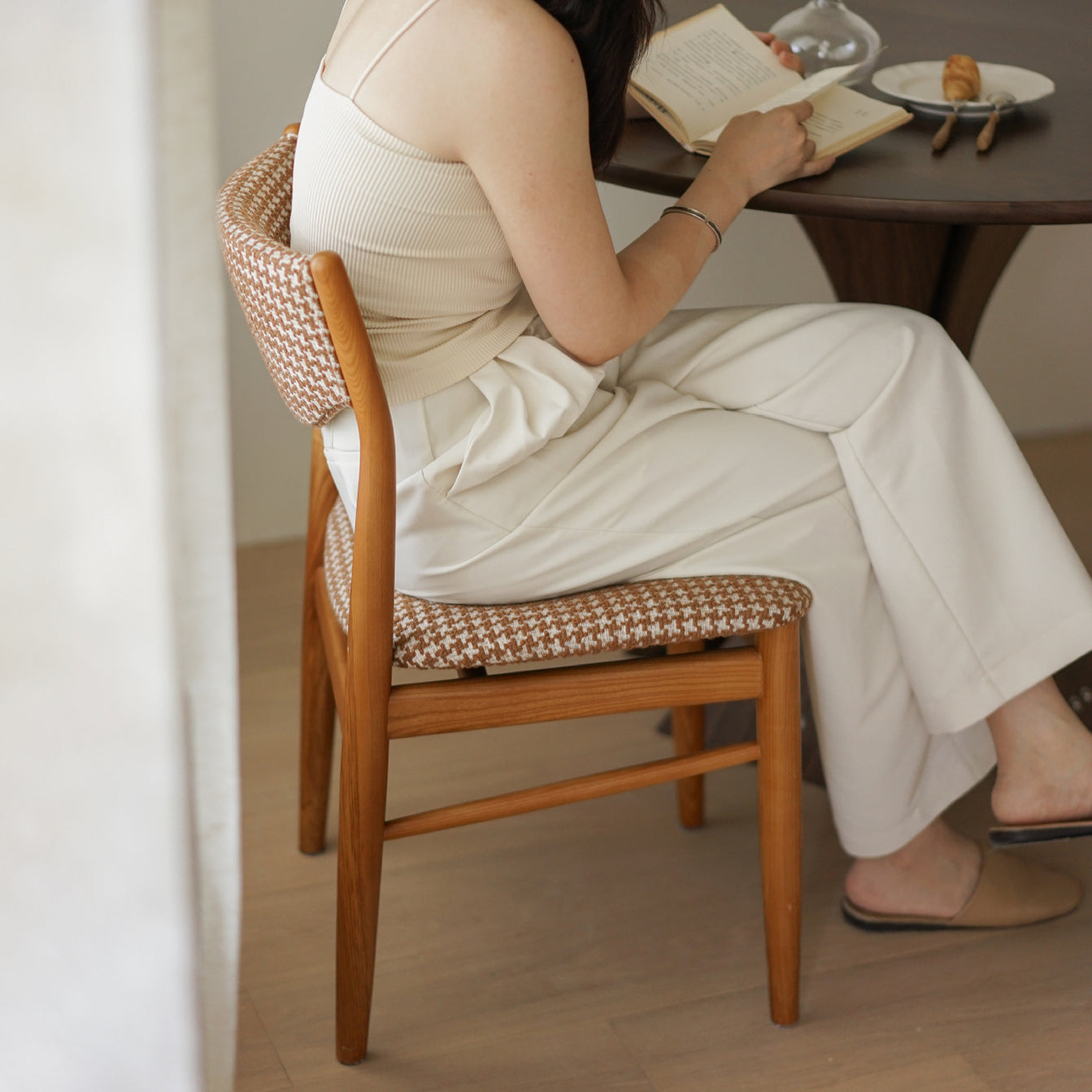 Traditional Vintage Ash Wood Multi-Ply Fabric Curved Dining Chair With Backrest For Dining Room