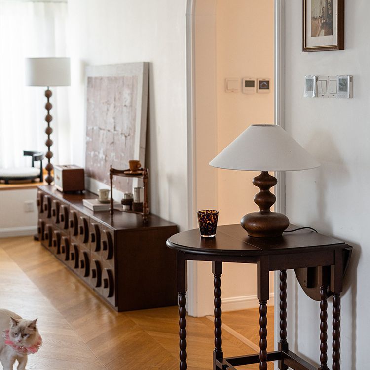 Traditional Vintage Cone Ash Wood Fabric 1-Light Table Lamp For Bedroom